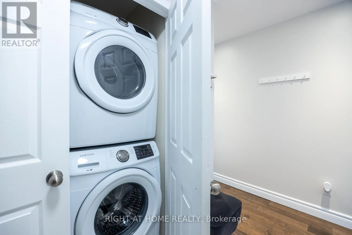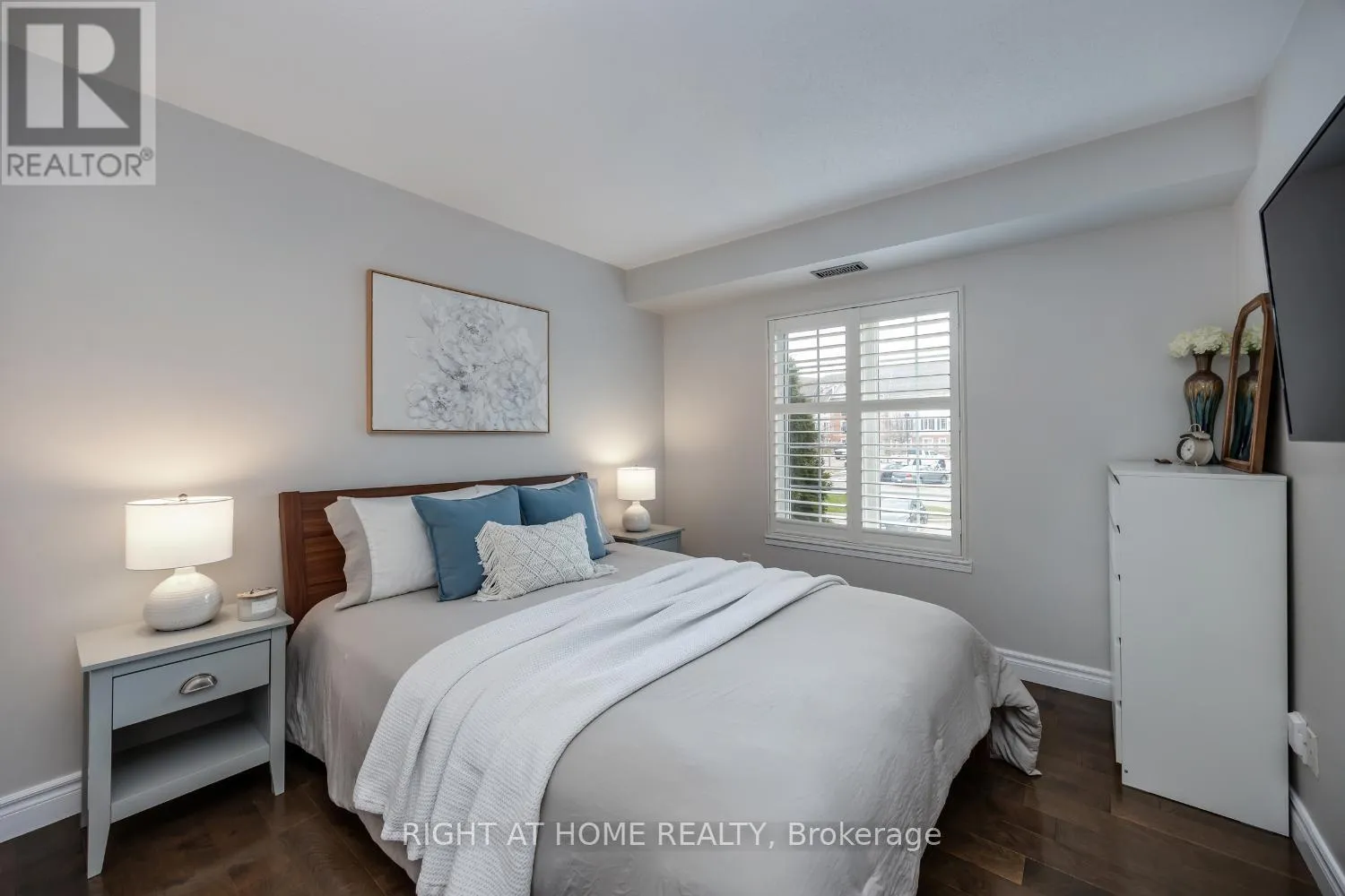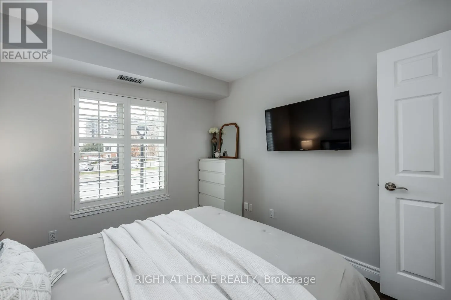 Bowmanville Ave/Aspen Springs Client RemarksWelcome to this rarely offered 2 bed 1 bath corner unit offering approximately 920 square feet of bright living space. This condo is located in one of Bowmanville's most desirable communities. It features a dining area perfect for entertaining, a bright and cozy living room and a spacious kitchen. The primary bedroom offers a relaxing retreat, while the second bedroom is perfect for a guest room, office or a future nursery. This unit includes hardwood floors, pot lights and California shutters throughout. Additional features include in suite laundry, a dedicated storage locker, and 1 parking spot with municipal parking permits available for added flexibility. The unit also includes access to a fitness centre, recreational room and visitor parking. Located just minutes from shopping, dining, and picturesque trails. The future Go train station will be within walking distance, and easy access to the 401 highway makes commuting a breeze. Don't miss the opportunity to own one of the most sought after layouts in the condo! (id:27476)
