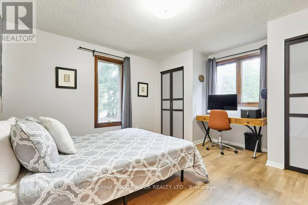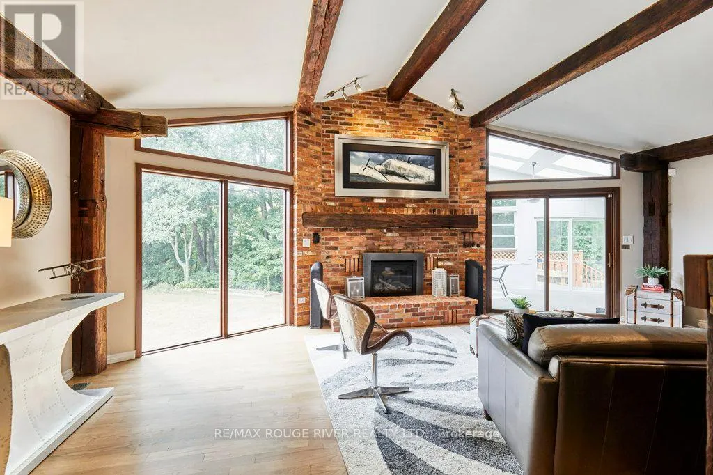 Cross Streets: King St (Hwy 2) and Townline. ** Directions: King St E to Varcoe; Varcoe north to Old Varcoe. A stunning oasis on 1.3 acres just steps from the Courtice retail & business corridor, backing on a beautiful, forested ravine. Spacious, custom built, brick bungalow with fully developed basement and almost 4500 sq ft of total living space. At the heart of the main floor is the open and expansive living room with vaulted ceilings and soaring gas fireplace, framed by oversize picture windows and the sunroom entry doors. The chef's kitchen overlooks the living room and features an impressive U-shaped island, European cabinets with granite counters, and premium appliances anchored by a JennAir 6-burner gas range. Meals are served either in the kitchen breakfast area (with its own built-in cabinets) or at the island counter; and, sometimes, in a private exquisite dining room, with room for everyone and bursting with character. A cosy family room overlooks the living room and there's also a huge pantry room adjacent to the kitchen with tons of built-in cabinets, shelves and drawers as well a contemporary upright freezer. The epic primary suite boasts a 5-piece ensuite bath, 2-sided gas fireplace and super-efficient PAX wardrobe systems. Walk out directly to the balcony, then down a few steps to the 8-seater Hydropool hot tub platform. Two more spacious bedrooms, full bath and a bright, airy sun room round out the main floor living space. The walkout basement has two sections: the south half is designed to complement the main floor space, with rec room/theatre, games room, exercise room with 3-piece bath, extra bedroom and office. The north half is a self-contained family suite with separate entrance, living room with fireplace, bedroom, kitchen, 3-piece bath and laundry. Oversize 2.5 garage with custom designer epoxy floor is nearly 600 sq ft with ample space for cars, toys and workshop or as a well-appointed man-cave. Exterior includes 10-car driveway; massive front verandah; storage building 10' by 20'; and a huge yard with gardens, walkways and tree buffers. (id:27476)