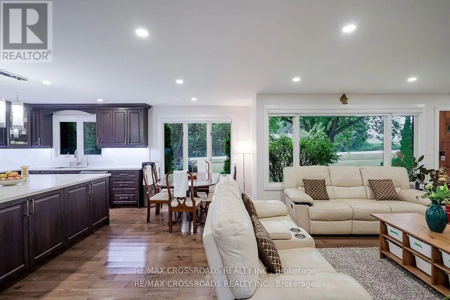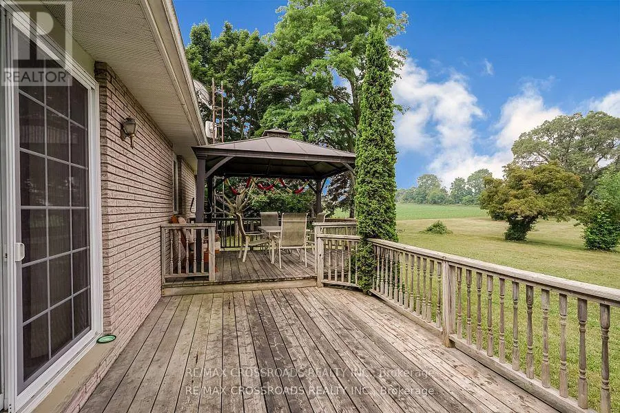 Baseline Road west and Green road Beautiful Brick Bungalow on 1.5 Acres ! Don't miss this rare opportunity to own a fully renovated (2022) brick bungalow nestled on a stunning 1.5-acre lot, complete with mature apple and pear trees, a fenced garden area, and plenty of backyard space to enjoy with family and friends.This charming home features a spacious 2-car attached garage and a bright, modern interior family-sized kitchen renovated in 2023 and includes brand-new cabinets, a massive quartz center island with added storage, and high-end stainless steel appliances , gas stove, built-in oven, 4-door fridge, built-in dishwasher all overlooking the open-concept dining and living areas. A large picture window in the living room offers stunning views of the front yard.Enjoy hardwood flooring throughout (2022), pot lights in the kitchen, living, and family rooms, and a cozy family room with a wood-burning fireplace, custom built-in showcase and a walk-out to the deck and backyard. 200 Amps upgraded electrical panel (2023).The front yard mature trees provide shade all summer long, creating a peaceful, private setting.This home offers both comfort and elegance ideal for those seeking space, nature, and modern upgrades in one perfect package (id:27476)