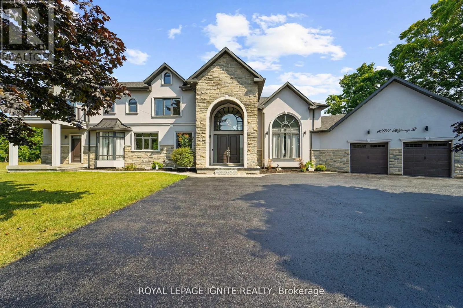 Hwy 2 / Courtice Rd Welcome to this stunning custom-built estate home, just over five years new! Over 5000 sq ft of living space. This luxurious 5 +1 bedroom, 4-bathroom residence offers exceptional design, premium finishes, and a peaceful ravine setting with conservation views. Commercial zoning as well in Courtice Secondary Plan. Step into the grand foyer with soaring 22-foot ceilings, setting the stage for the open, light-filled interior. The living room features dramatic 18-foot ceilings and a striking gas fireplace, creating a warm and elegant space to relax or entertain. A wide staircase with sleek glass railings adds to the modern aesthetic. The chef's kitchen is a showstopper, complete with a 10-foot waterfall island, gas stove, and high-end stainless steel KitchenAid appliancesideal for gourmet cooking and hosting. Upstairs, three spacious bedrooms each feature their own ensuite bathroom, offering comfort and privacy for all. The primary suite includes a large walk-in closet, a luxurious 5-piece ensuite, and breathtaking views of nature. A versatile fourth bedroom or office is conveniently located on the main floor. Newly renovated basement with separate entrance. Massive living/dining space. New stainless steel appliances. Huge bedroom with a walk-in closet and window. Step outside to enjoy a private deck and a massive backyard overlooking a tranquil creekperfect for relaxing or entertaining in a natural setting. View of the meandierng creek and mature trees from the private backyard. Located close to all amenities, including shopping, dining, schools, and places of worship. Commuters will love the easy access to Highways 401, 418, and 407, with GO Transit and Durham Region Transit right at your doorstep. Millennium Trail access. Walk to the Courtice Rec Centre with pool and Library. Don't miss this rare opportunity to live in a truly one-of-a-kind property that blends luxury living with everyday convenience! (id:27476)