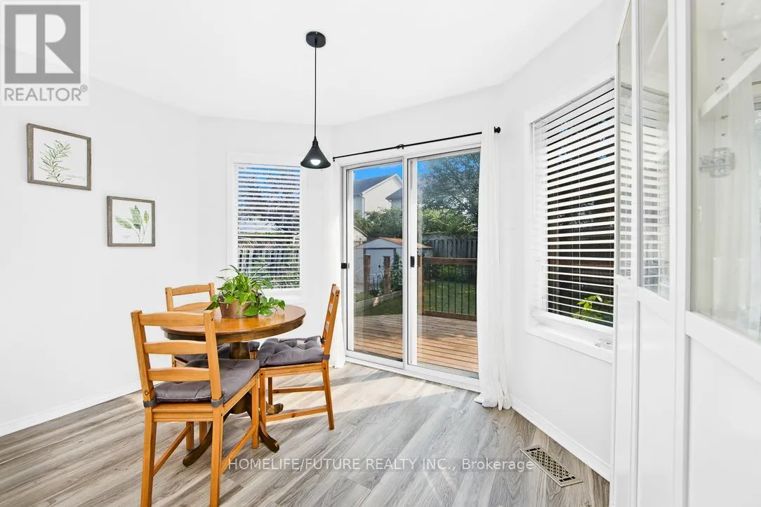 Trulls/Nash Beautiful Home Located At The End Of A Quiet Peaceful, Child-Friendly Cul-De-Sac With No Sidewalk, Backing OntoGreen Space And Trails. Features Renovated Main And Upper Bathrooms With New Vanities, Toilets, And Laminate Flooring, Plus A Brand-New Full Bathroom In The Finished Basement. The Upgraded Kitchen Includes New Laminate Floors, New Backsplash, And New Exhaust Fan, With A Walkout To An Extra-Large Deck And Vegetable Garden Oasis. Enjoy A Bright Living Room With New Hardwood Floor, A New Hardwood Staircase With Steel Railing, And A Finished Basement With A Rec Room, Bedroom With Closet, Custom Bar,Gas Fireplace, Laundry, And Lots Of Storage. Includes Water Filtration System, New Chandelier, New Garage DoorOpener, New EV Charger With Separate Panel, And Side Entrance To Garage. Offers 4-Car Parking On The Drive Way And Is Close To Schools, Daycare, Plaza, And Just 5 Minutes To Hwy 401. (id:27476)
