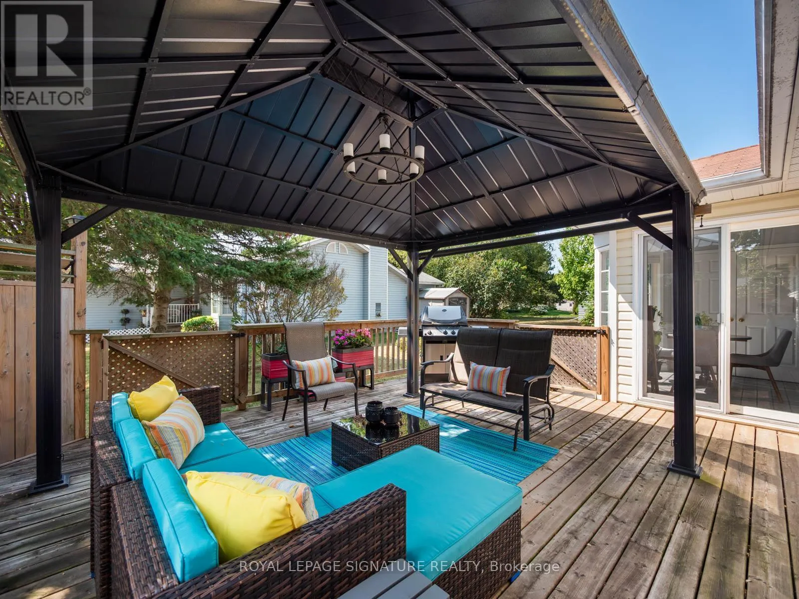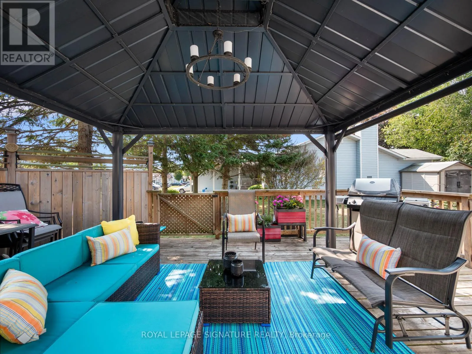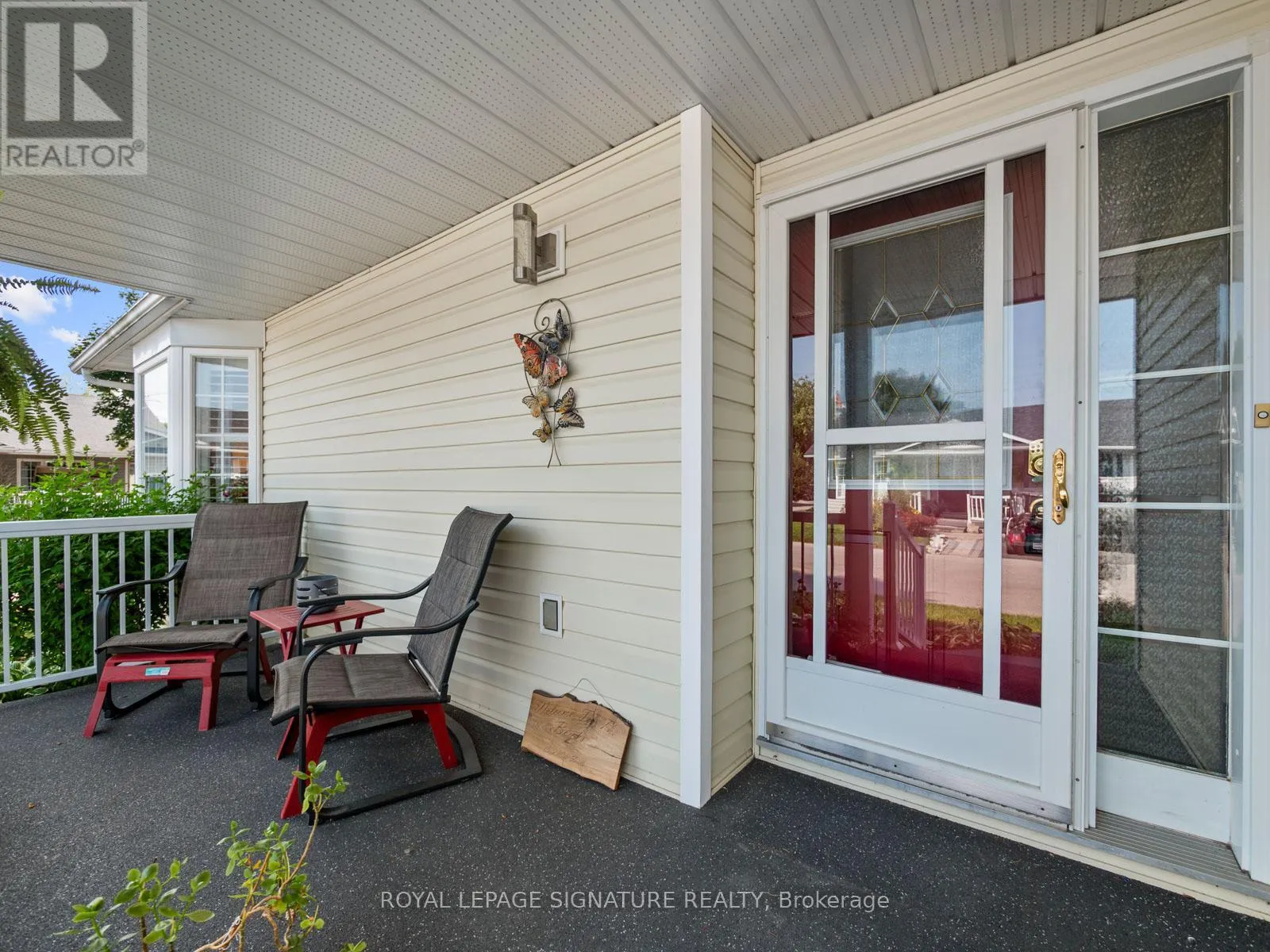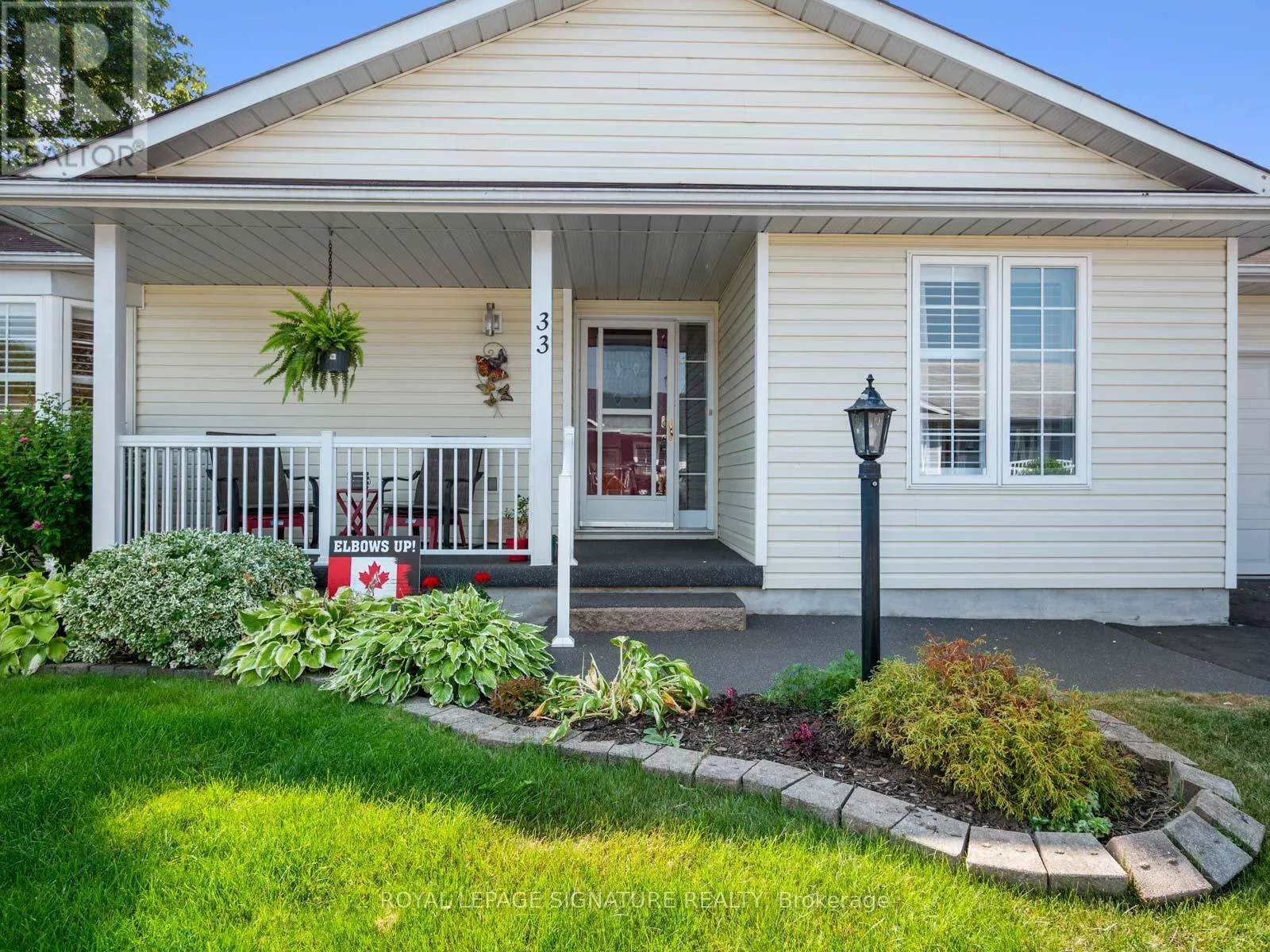 Cross Streets: Fairway / Steelhead. ** Directions: Exit at Bennett Rd at 401 and south on Bennett. Turn onto Wilmot Creek Dr and follow to Wilmot Trail. Your wait is over! At last, a spacious bungalow with a full basement, a garage and a golf cart at the sought-after Wilmot Creek Adult Lifestyle Community on the Shores of Lake Ontario! Relax into retirement and let the fun begin in one of Canada's finest land-lease communities. Your monthly maintenance fee opens the door to a wide range of amenities and social activities including a private golf course, two heated swimming pools, tennis and pickleball courts, fitness centre, theatre room, garden club, lawn bowling, shuffle board, billiards, darts, horseshoes and a dog run. If you prefer a quieter scene, explore the walking trails along the lake or build a model plane in the wood working shop and choose a good book from the well-stocked library. 33 Steelhead Lane offers the perfect blend of comfort and convenience to support your new journey at Wilmot Creek. This solid, well- maintained bungalow feature 1421 square feet of updated living space. Enjoy soaring, slanted ceilings, hardwood floors, and an open concept living and dining area that is perfect for gathering and entertaining. The updated eat-in kitchen boasts stainless steel appliances, new counters and backsplash and vinyl flooring. Walk-out to your spacious deck with a covered gazebo, ideal for relaxing with friends after a round of golf or a game of pickleball. The split-bedroom layout with two full bathrooms ensures privacy, convenience and a good night sleep for all. An extra bedroom has been created on the lower level to give overnight guests their own space. Enjoy easy access to the main floor laundry closet. The 1469 square feet partially finished basement provides plenty of space for crafts, special hobbies and all of your storage needs. The private driveway accommodates 2 cars and a golf cart! Don't miss this great opportunity to enjoy a vibrant lifestyle in a lovely, spacious home surrounded by natural beauty and just 40 minutes from Toronto! (id:27476)