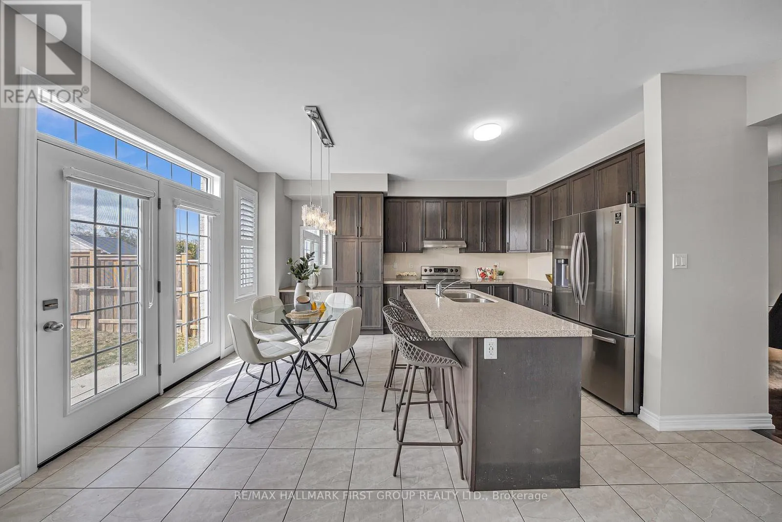 Cross Streets: Northglen Blvd /Bowmanville. ** Directions: North. Welcome to this stunning detached home, offering 2,478 square feet of beautifully designed living space in one of Bowmanville's most sought-after and fast-growing family-oriented communities. From the moment you arrive, the upgraded stone front elevation sets the tone for the elegance and attention to detail found throughout. Inside, soaring 9-foot ceilings on the main floor and rich hardwood flooring create a warm, open-concept living space perfect for families and entertaining.The spacious family room features a cozy gas fireplace, while the formal dining area and large windows fill the home with natural light. The gourmet kitchen is a chefs dream complete with granite countertops, a stylish backsplash, stainless steel appliances, and a breakfast bar, offering ample storage. Upstairs, four generously sized bedrooms provide comfort and privacy for the whole family. The backyard offers a peaceful, private setting ideal for relaxing or hosting gatherings.This home is ideally located within walking distance to soon-to-open schools, a new daycare, and outdoor recreation spaces, making it a perfect fit for growing families. Just minutes to the 407 , close to an upcoming local events venue, shopping malls, dining, and parks. Plus, with the major GO Transit train service expansion to Bowmanville on the horizon, commuting will soon be even more convenient adding incredible future value to this already exceptional property. Experience the perfect blend of luxury, comfort, and convenience in a neighbourhood designed for modern family living. (id:27476)