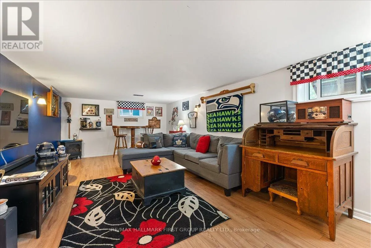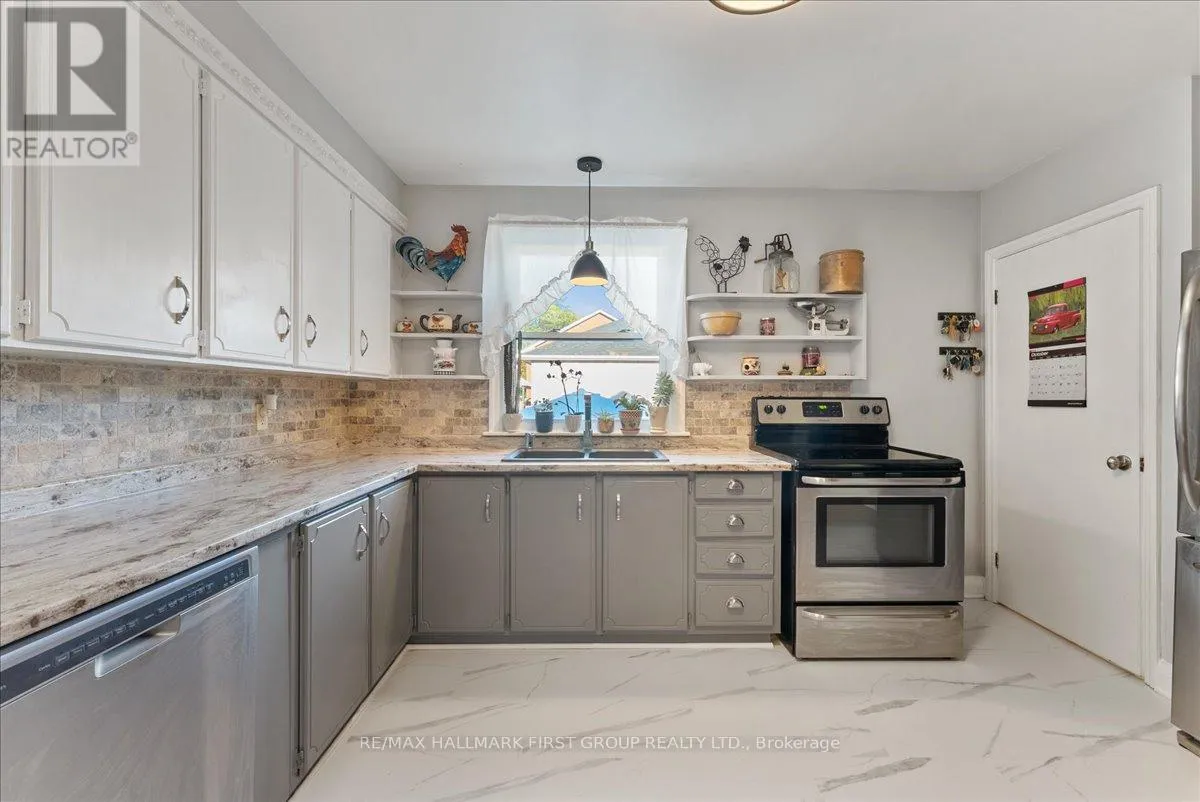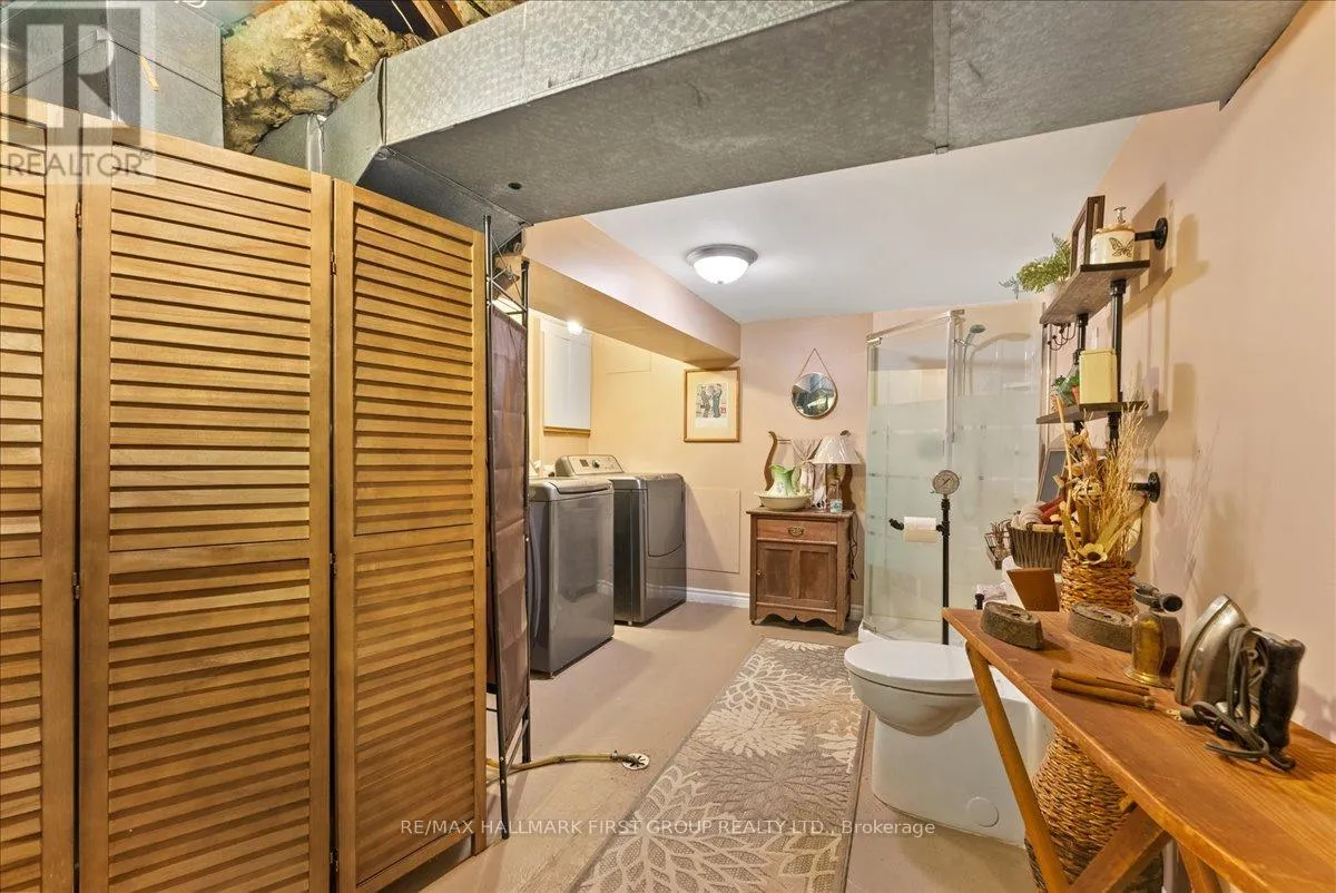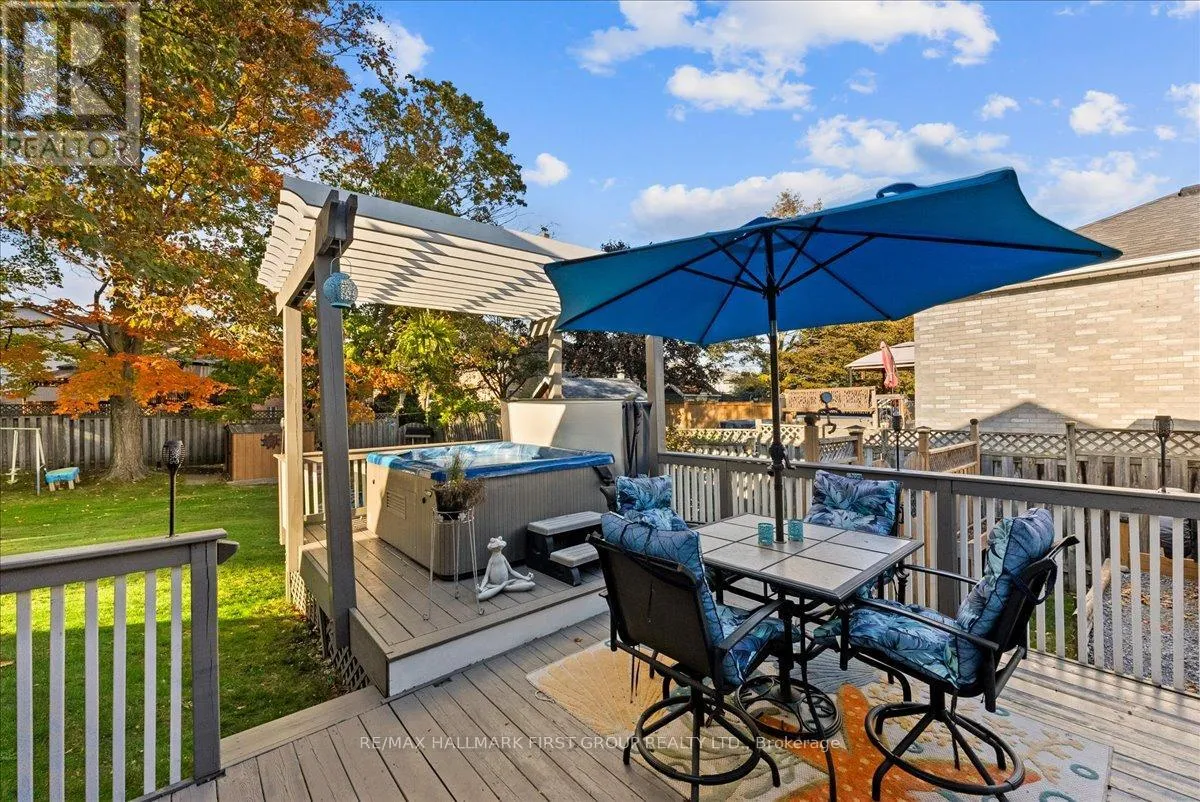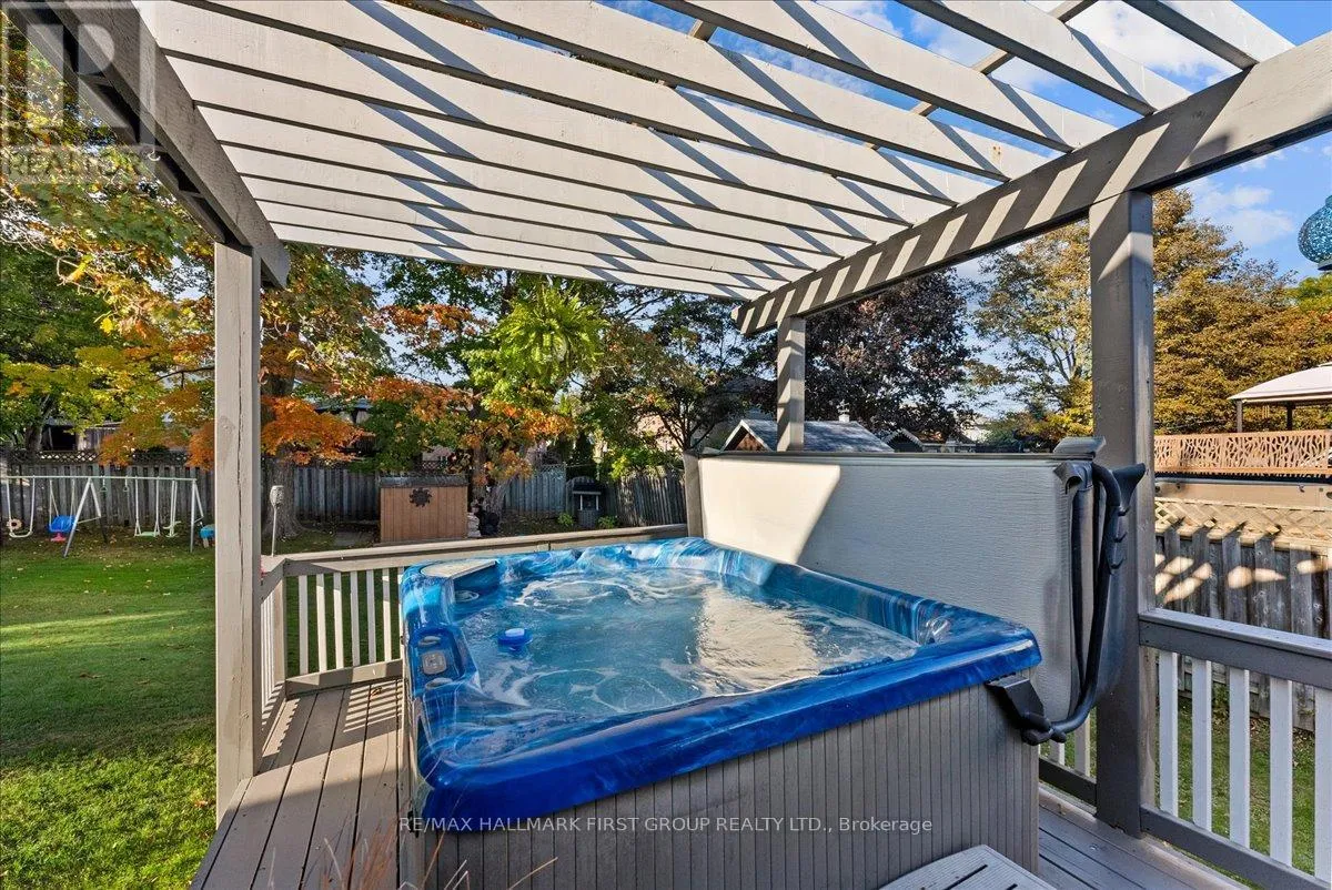Liberty St N & Concession St E This bungalow in Bowmanville sits on an impressive 75 x 130 ft lot surrounded by mature trees, offering fantastic curb appeal and a welcoming front porch to enjoy your morning coffee. With over 1,100 sq. ft. of living space, the home features fresh paint throughout, a stylishly updated kitchen, and separate living and dining rooms perfect for family gatherings. The finished basement, with its own entrance, adds versatility and includes a spacious rec room, bedroom, 3-piece bath, workshop, and plenty of storage space. Outside, you'll find a fully fenced backyard ideal for entertaining, featuring a large deck with a hot tub, a cozy fire pit area, and lots of room to relax and unwind in a private, park-like setting. (id:27476)