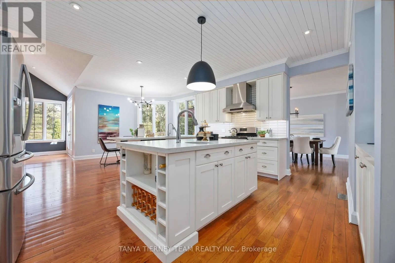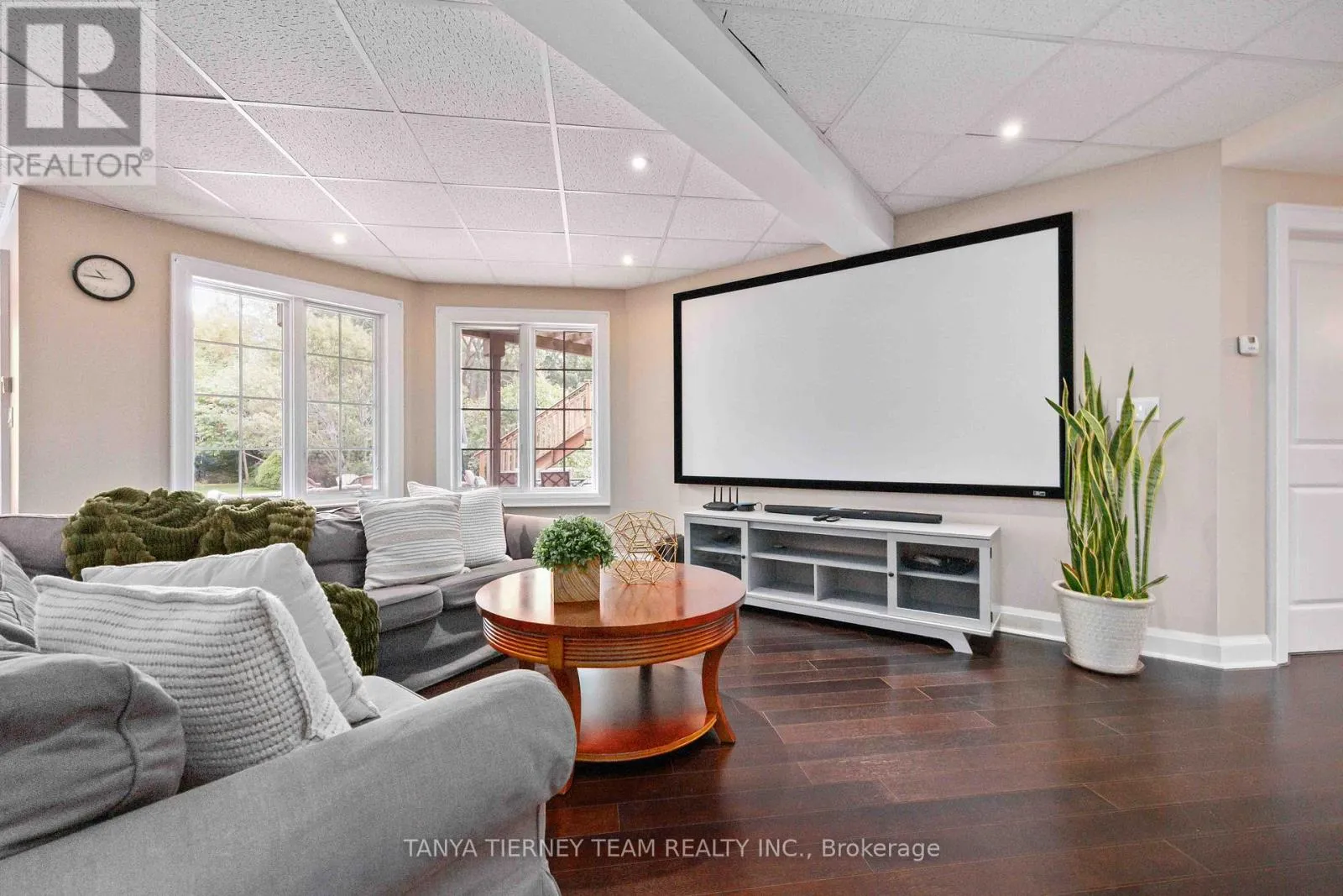 Taunton/Townline Truly one-of-a-kind, this custom 4+2 bedroom, 5-bathroom estate offers over 6,500 sq ft of luxurious living space on a spectacular 245-ft deep treed ravine lot. Designed with multi-generational living in mind, this home features a spacious open-concept layout, a fully finished walkout basement with separate entrance, and flexible living areas ideal for extended family or in-law accommodation.The gourmet kitchen is the heart of the home, complete with quartz countertops, oversized island, walk-in pantry, built-in coffee bar, and breakfast area overlooking a private backyard retreat. The upper level includes 4 large bedrooms and a media room, while the basement offers 2 additional bedrooms, a large rec room, office, spa-like bathroom, and cozy in-floor hydronic heating-perfect for independent living with comfort and privacy.Step outside to your own resort-style oasis: an elevated deck with ravine views, covered walkout patio, in-ground pool, jacuzzi hot tub, built-in fire pit, gas BBQ hookup, and a handcrafted wood-burning pizza oven. Whether entertaining or unwinding, this backyard has it all.An attached 882 sq ft 3-car garage with heated workshop, garden door access, and ample parking adds function to elegance. Located minutes from Hwy 407 and steps to top schools, parks, big box stores, Cineplex, and more, this exceptional home blends space, style, and multi-generational living in one of Clarington's most desirable settings! (id:27476)