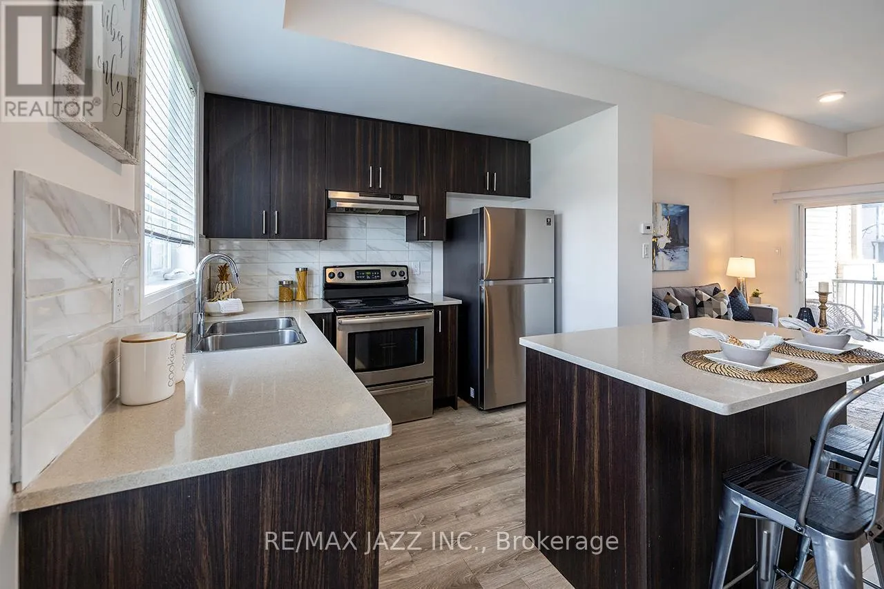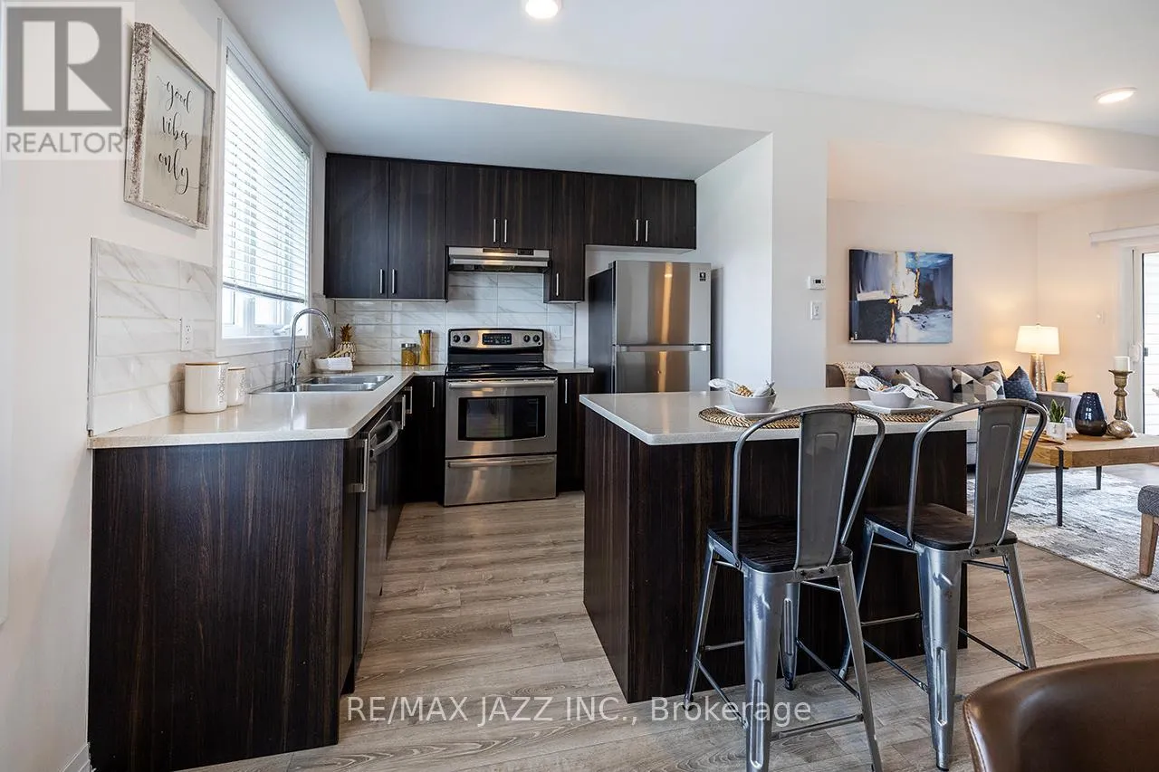 Bowmanville Ave & Concession 3 Better than new! The beautifully upgraded "Honeycrisp" model offers 1568 square feet of finished living space. This stunning executive Town-Home is still covered by the Tarion Warranty. It includes 3+1 bedrooms and 4 bathrooms, along with a gorgeous ground floor den/bedroom area that is perfect for a home office or recreation room. This fully upgraded home features laminate flooring throughout, a solid oak staircase with wrought iron spindles, indoor garage access, added convenience of front and rear entrances. The main floor boasts 9-foot ceilings and a lovely open concept design with numerous windows that allow for ample natural light. The large eat-in kitchen is equipped with a center island, quartz countertops, a custom backsplash, and stainless steel appliances. Additional highlights include a spacious covered patio, pot lighting, upgraded window coverings, central air conditioning with a full HRV system, energy-efficient tankless water on demand. This home truly has it all! The upper level contains 3 full bedrooms, with the primary bedroom featuring a full ensuite bath and a walk-in closet. It is simply immaculate and ready for you to move in. Dont hesitate on this one! Its located in an excellent family-friendly area, close to all amenities: schools, parks, shopping, and highways 407/401, among many others. Check out the HD video - its a perfect 10! (id:27476)