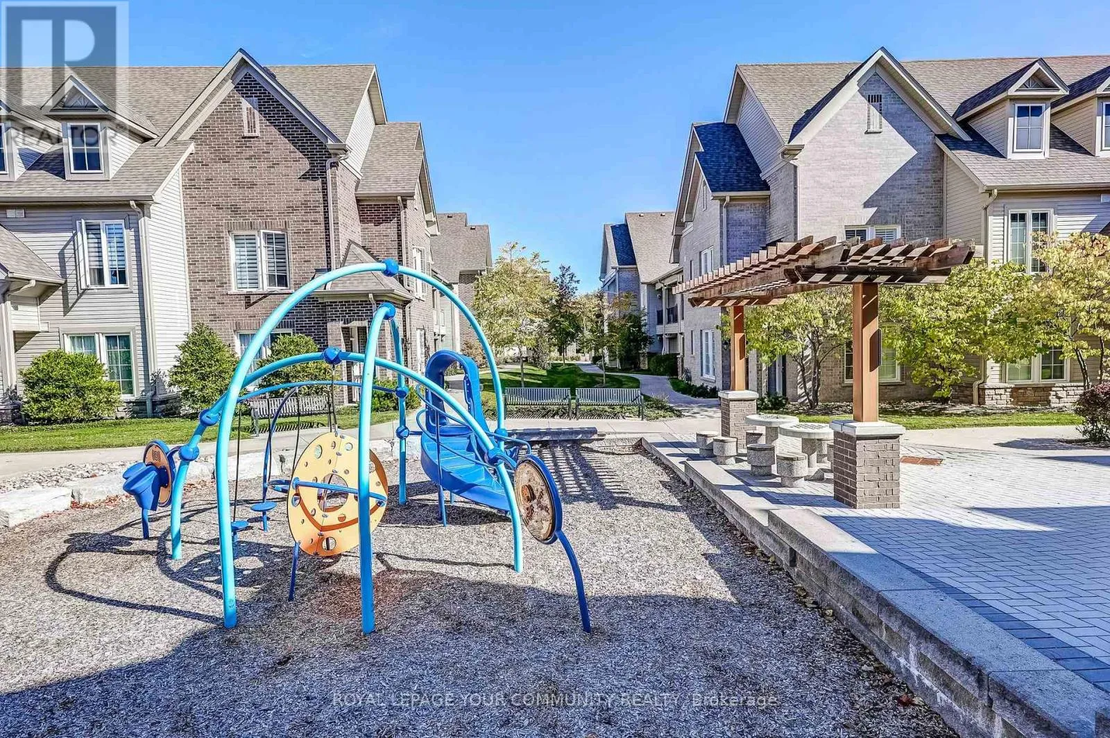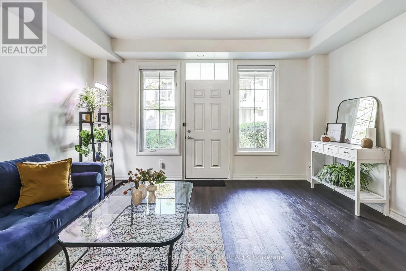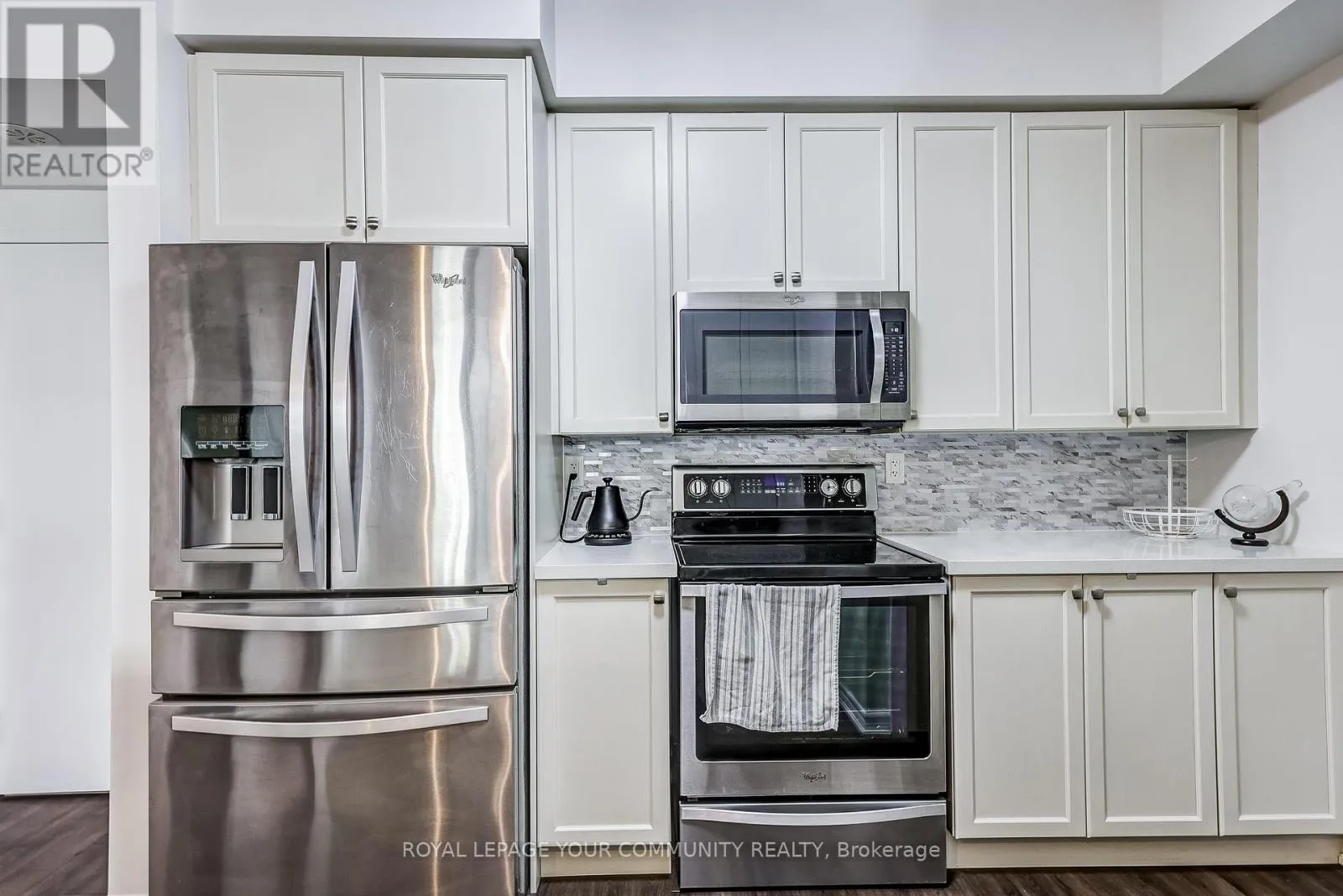 Bloor St / Townline Rd S Step into homeownership with this incredible condo townhouse - the perfect first home in a vibrant neighbourhood close to shops, parks, and all your daily essentials. This bright, modern, and freshly painted 1-bedroom, 1-bathroom unit offers over 800 square feet of stylish living space, with vinyl flooring throughout and soaring 9-foot ceilings that create an open, airy feel. Enjoy your morning coffee or unwind in the evening on your private porch - your own peaceful outdoor retreat. The sleek kitchen features quartz countertops, extended cabinetry, stainless steel appliances, and a breakfast bar which is ideal for cooking, casual dining, or entertaining guests. The sun-filled primary bedroom offers generous space and a large walk-in closet to keep everything organized, with an oversized semi-ensuite bathroom. Located on the ground floor, this unit offers comfort and convenience, including in-suite laundry and a private garage with direct access to the unit making daily life seamless. The community also features outdoor seating areas, a park, visitor parking, office space, a gym, and a recreation room with a full kitchen. Move-in ready and designed for easy living, this home is the perfect place to start your homeownership journey. Come see it today and imagine yourself living here! (id:27476)