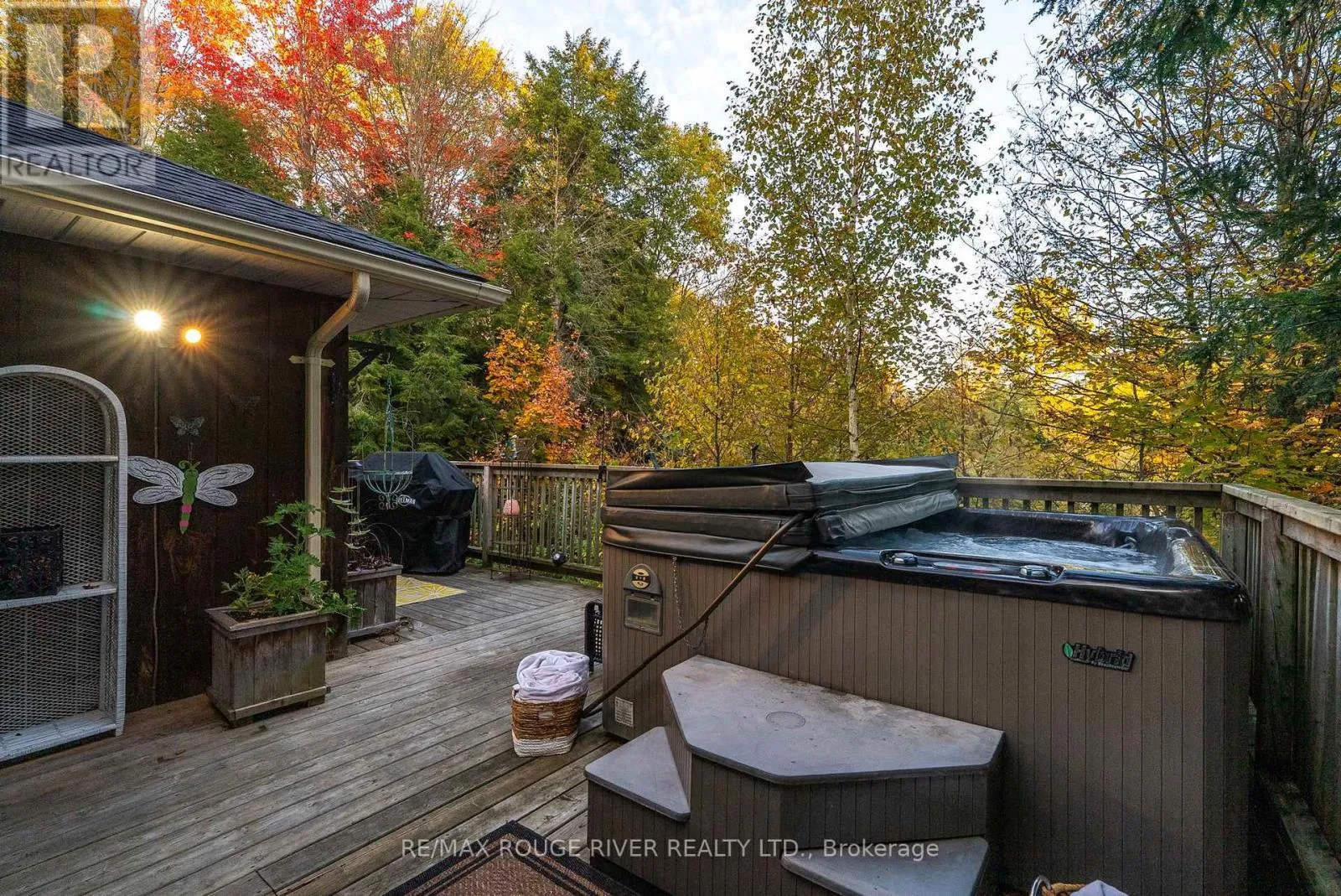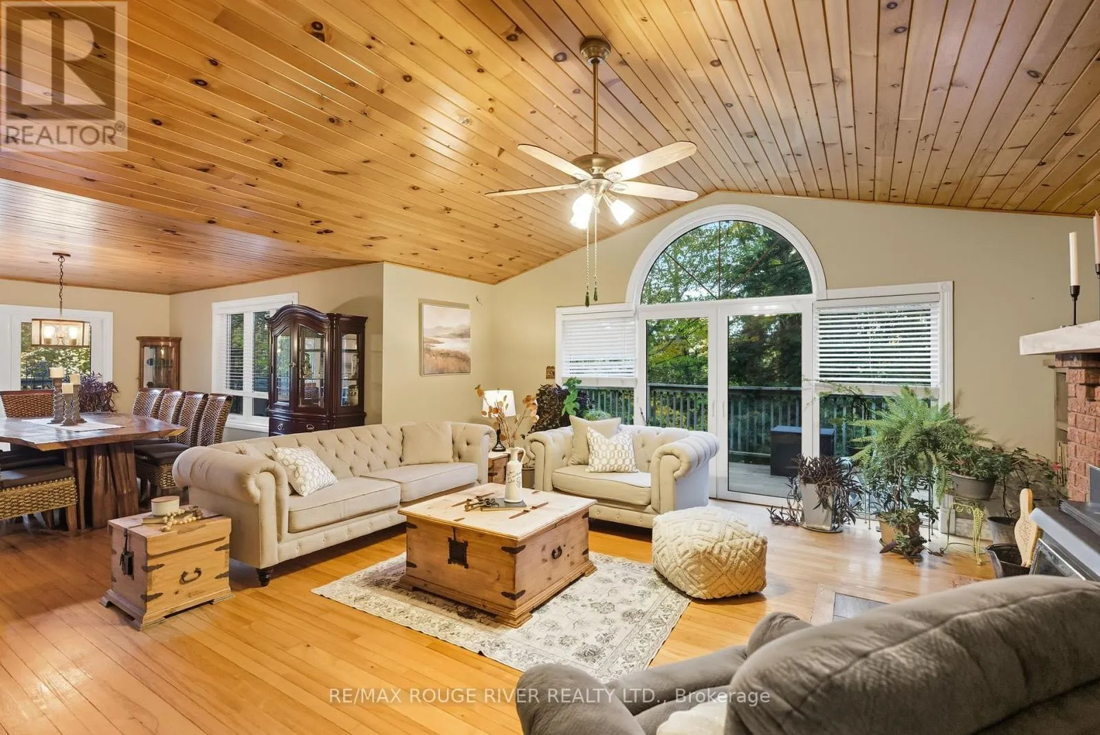 Cross Streets: Ganaraska/Reg. Rd. 9. ** Directions: Between Langstaff/Shiloh Rd and Soper Rd. Welcome to your own private 4.69-acre hobby farm retreat! This custom-built bungalow offers an exceptional lifestyle surrounded by mature trees and breathtaking ravine views, an enchanting woodland setting that feels like a true getaway while still close to modern amenities. Step inside through the grand double door entryway to discover an open-concept layout showcasing rich hardwood floors, vaulted pine ceilings, and wall-to-wall windows that flood the home with natural light. The stunning great room features a floor-to-ceiling brick fireplace and a walkout to a large wraparound deck with a hot tub, overlooking total privacy and serene natural beauty. The formal dining room also opens to the deck, creating the perfect flow for indoor-outdoor entertaining. The massive eat-in kitchen is a chef's dream, boasting custom cabinetry, a wall pantry, stainless steel appliances, and pot lights, with a bright breakfast area framed by large windows and scenic views. The primary bedroom offers a semi-ensuite bath, walk-in closet, and warm hardwood flooring, while the second bedroom provides ample space and sunlight. The lower level extends the living space with a bright family room, additional bedrooms, a full bathroom and a walkout to a wraparound patio, ideal for guests or multi-generational living. Equipped with a UV water treatment system, ensuring clean, safe water. Outside, discover a nature lover's paradise, walking trails, a maple syrup sugar shack with 40 maple trees, a fenced dog run, and a massive garden ready for your green thumb. You'll find apple, pear, and cherry trees, strawberries, raspberries, and wine grapes, and perennials that return year after year, attracting local wildlife and offering an ever-changing landscape through the seasons. Whether you're relaxing in the hot tub, making your own maple syrup, or simply soaking in the peaceful sounds of nature, this idyllic hobby farm delivers the perfect blend of comfort, character, and countryside charm! (id:27476)