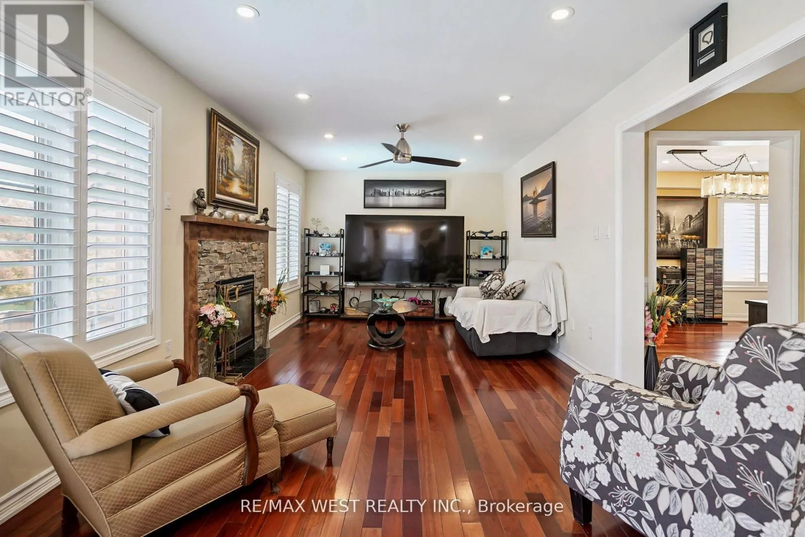 Baseline/Green Stunning dual-family detached home on a sun-filled corner lot at 196 Millburn, ideally located close to parks, schools, shopping, and transit. Perfect for multi-generational living or investors, this home features over $150,000 in renovations completed in 2021 for the legal walkout basement apartment, creating a bright, fully self-contained unit with its own kitchen, bedroom, bath, and laundry ideal for extended family or rental income. The main level showcases a modern kitchen with quartz counters, stainless steel appliances, hardwood floors, gas fireplace, and convenient laundry with access to the double garage. Upstairs, the spacious primary retreat offers a walk-in closet and spa-like ensuite, with additional bedrooms featuring hardwood throughout. Finished with California shutters and pot lights, this home blends elegance, comfort, and flexibility in one exceptional package. (id:27476)