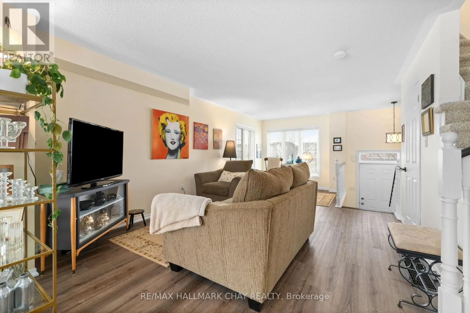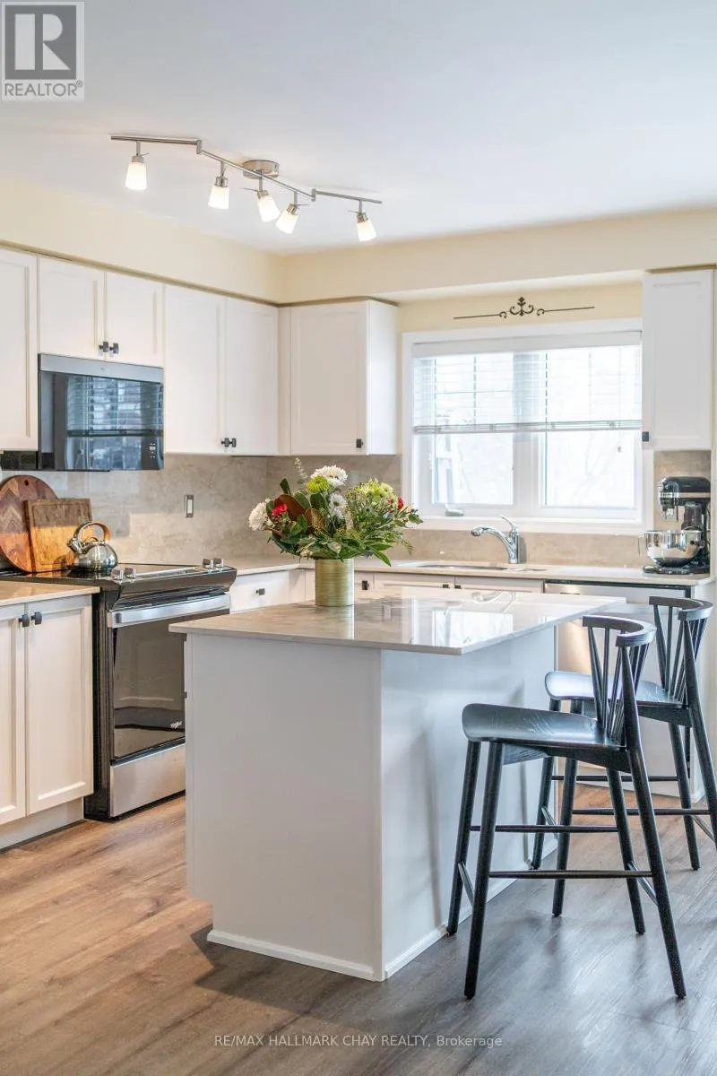 Longworth and Liberty St N Fully renovated, stylish, and move-in ready, this 3-bedroom, 2-bath end-unit townhome features a professionally finished basement with luxury vinyl flooring, custom 3-piece bath, and separate laundry. The main floor showcases luxury laminate, a refreshed kitchen with premium Dekton countertops, modern backsplash, and all appliances included. Upstairs, enjoy a fully updated bathroom with walk-in shower, upgraded vanity, and crown moulding. Relax on your private balcony, with a single-car garage, driveway parking, and visitor spots. Low condo fees cover water, common area: lawn care, snow removal, and exterior security monitoring. Nest thermostat and owned electric hot water tank add modern convenience. Located in a fantastic neighbourhood with all the conveniences and walkability score. Walking distance to schools, parks, shopping, and quick access to Highway 401. Immediate possession available - turn-key, upgraded, and ready for you to get settled and move in whatever your lifestyle needs! (id:27476)