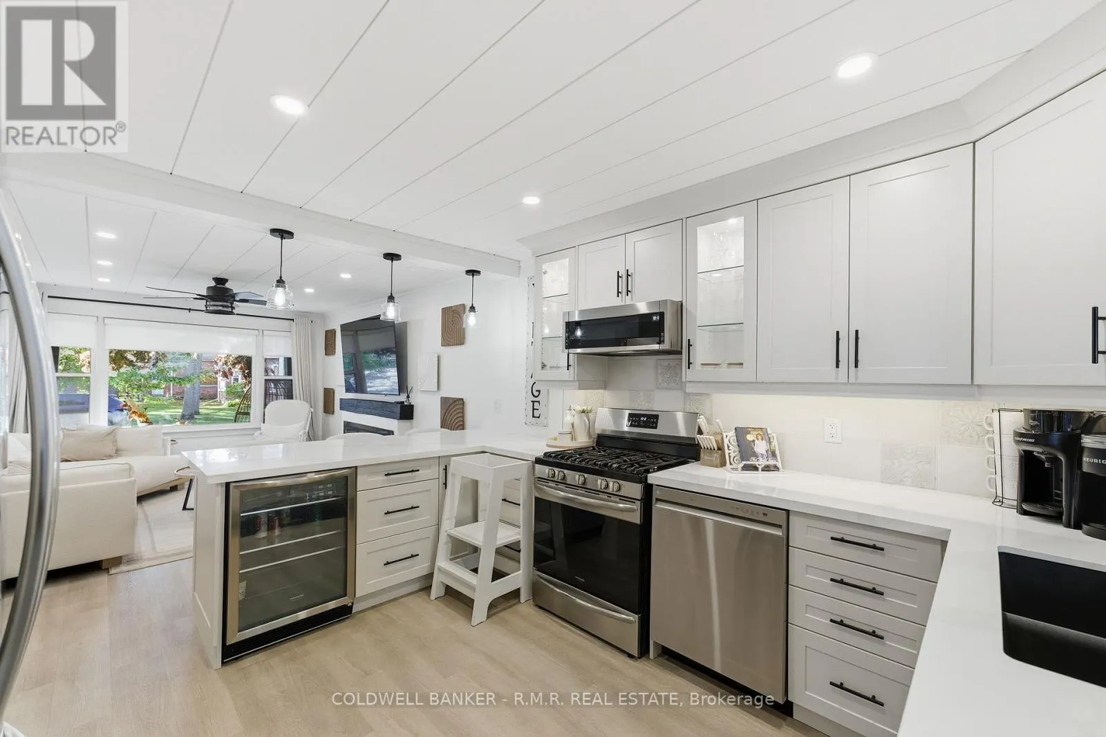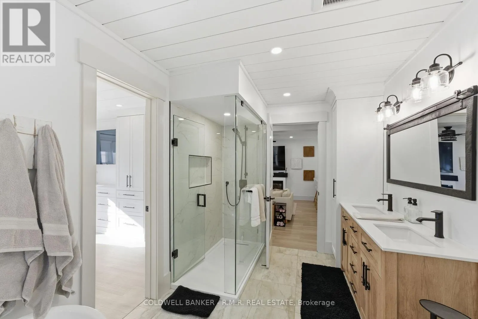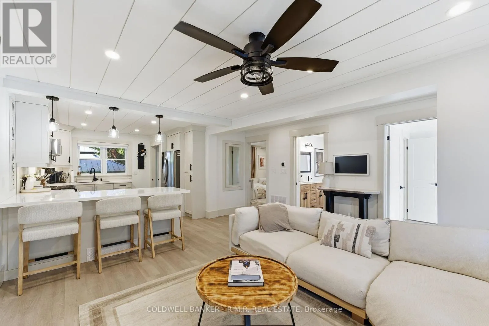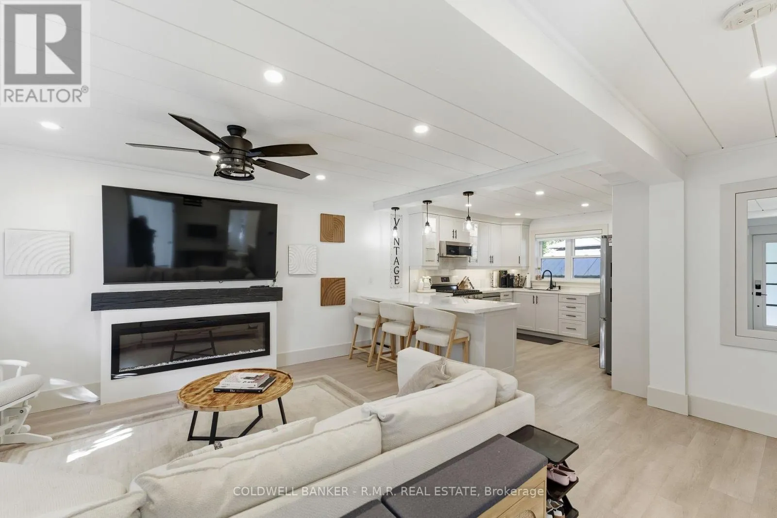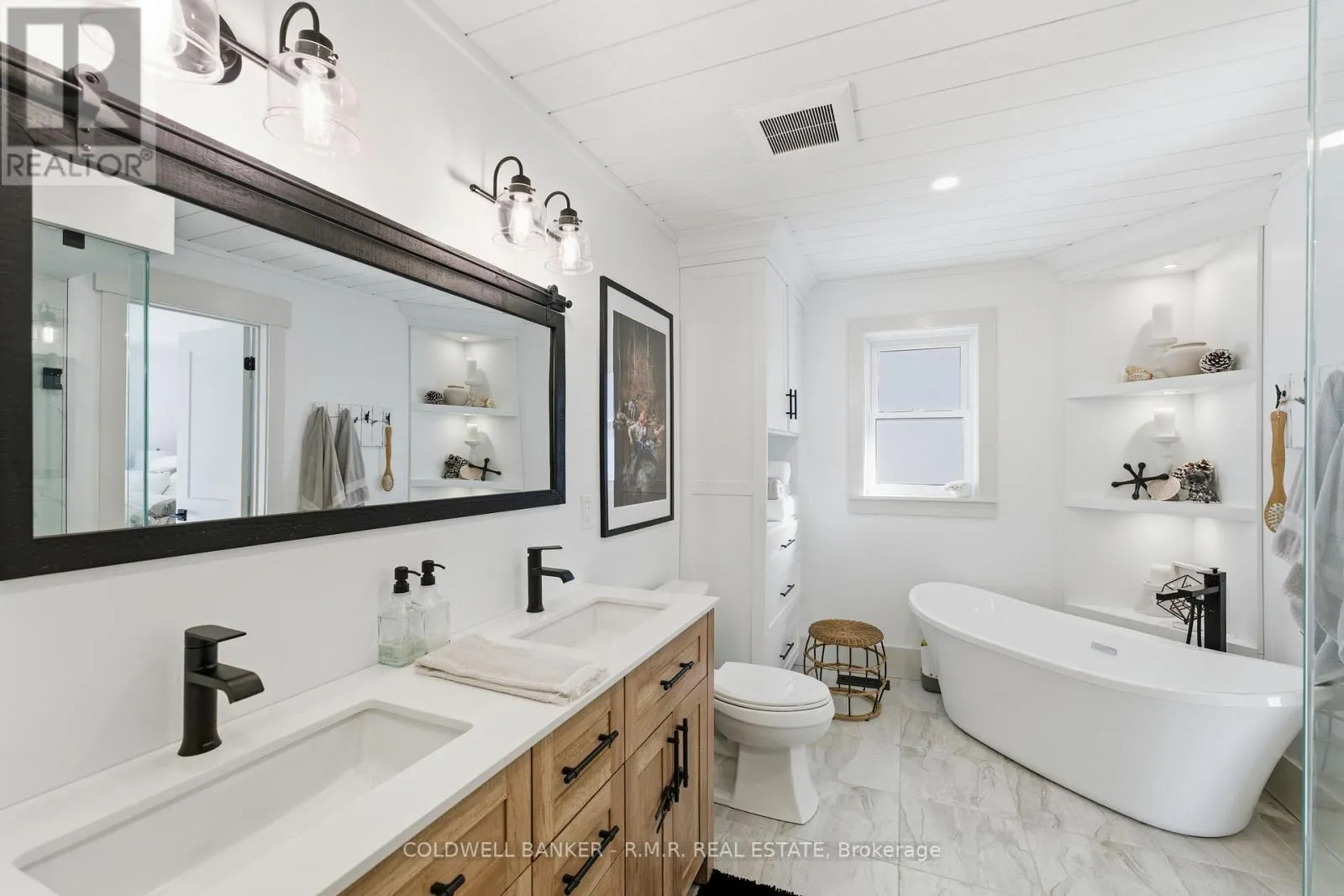 Main St. And Centreview Beautifully updated detached brick bungalow on a quiet, highly sought-after street in Orono! This charming 2+1 bedroom, 2 full bathroom home has been loved from top to bottom, offering stylish modern finishes and thoughtful upgrades throughout. Featuring a bright white kitchen with quartz countertops, stainless steel appliances (including a gas range and bar fridge), and stunning shiplap ceilings across the main floor. Enjoy custom built-in cabinetry in the primary bedroom and bath. Main washroom features a luxurious feel with a soaker tub and separate glass-enclosed walk-in shower. A cozy living room with fireplace and open concept living space The lower level boasts a bedroom, full laundry room, full washroom, large family room, lots of storage and a separate entrance, perfect for an in-law suite or to use as additional living space. Step outside to a beautifully maintained, fully fenced backyard complete with gazebo, and take advantage of the detached double car garage and private driveway offering parking for up to five vehicles. Located within walking distance to the Orono Fairgrounds and just minutes from shopping, schools, and highways - this home truly has it all! (id:27476)
