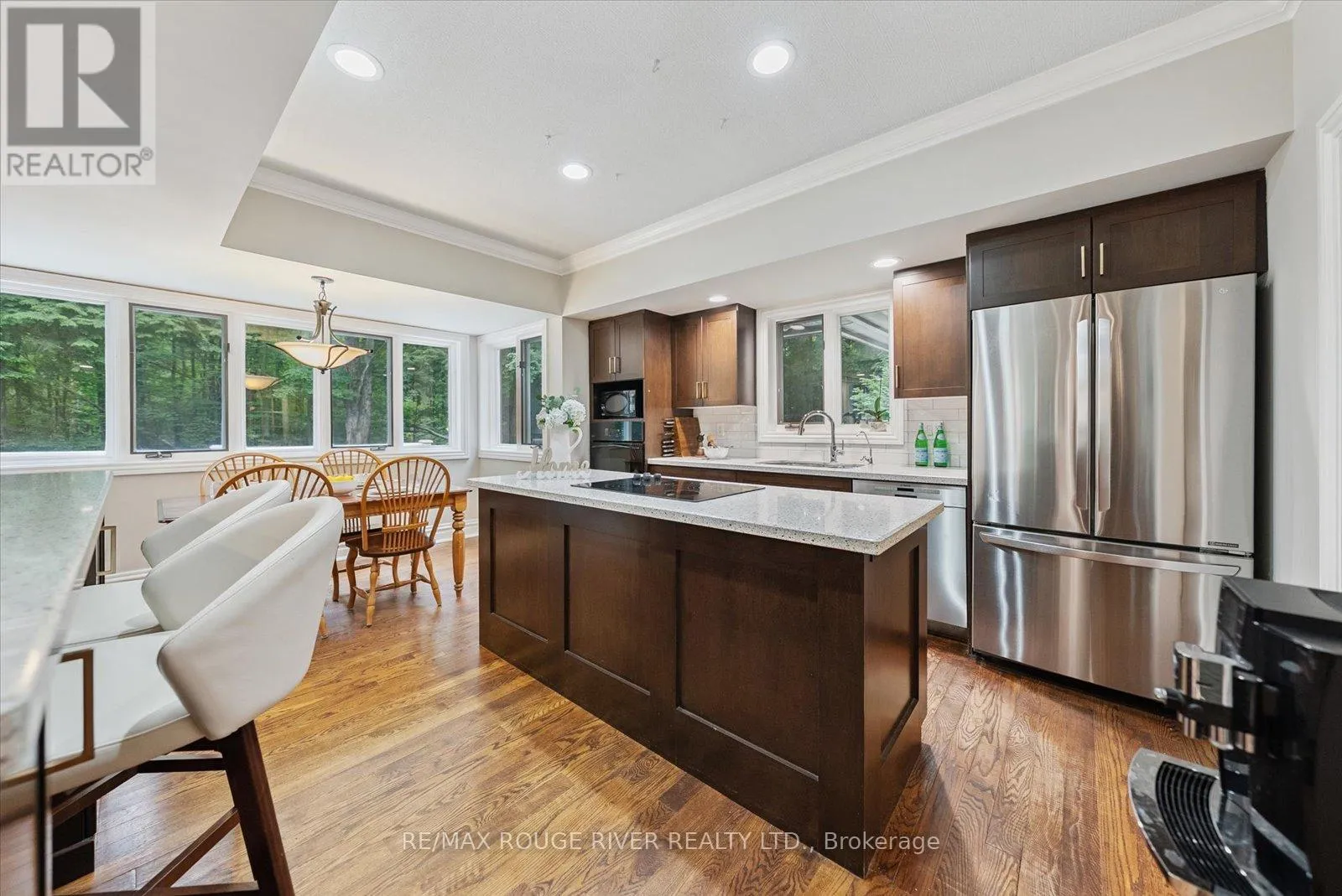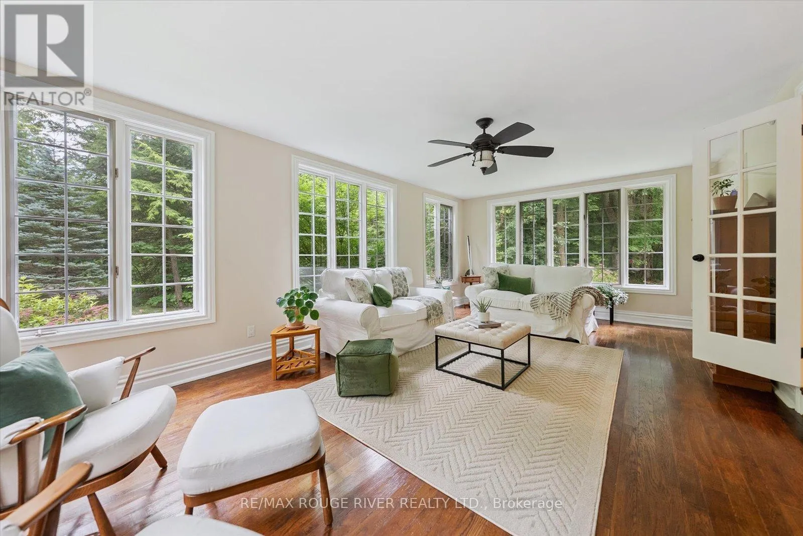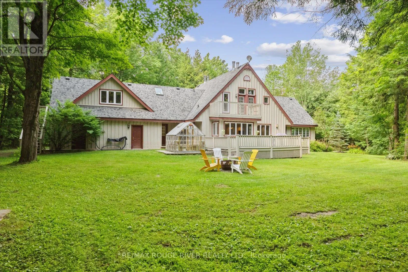 Ganaraska Rd/Shiloh An exciting opportunity to own a custom-built, energy-efficient home nestled on a secluded 11-acre lot. This property offers the perfect blend of privacy, comfort, and sustainability, surrounded by mature trees. Inside, you'll find a beautifully updated kitchen with a walkout to a spacious deck, perfect for entertaining or enjoying quiet mornings surrounded by nature. The home's timeless character is enhanced by hardwood floors throughout, crown moldings, French pocket doors, and upgraded trim. You can also cozy up beside several of the home's fireplaces. One of the standout features? A show-stopping primary bathroom that brings luxury and relaxation to a whole new level. This home also features many custom-built-ins, an LED pot lighting system, and a versatile heated loft above the garage with a bathroom. This space is currently used as a home office, but it could easily be transformed into a studio or guest suite. Additional features include a geothermal furnace, offering highly efficient, eco-friendly heating and cooling with significantly reduced utility costs year-round. The property also includes 1.3 km of groomed trails that wind through the woods, perfect for soaking in the natural beauty that surrounds you. And if you've ever dreamed of tapping your own trees, this property offers the opportunity to harvest your own maple syrup, with an average yield of about 45 litres per year. This is a rare opportunity to own a peaceful, energy-conscious home while still having easy access to modern comforts. (id:27476)