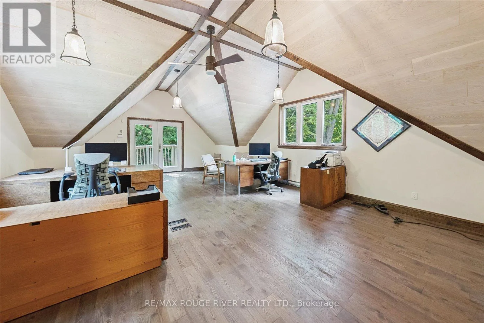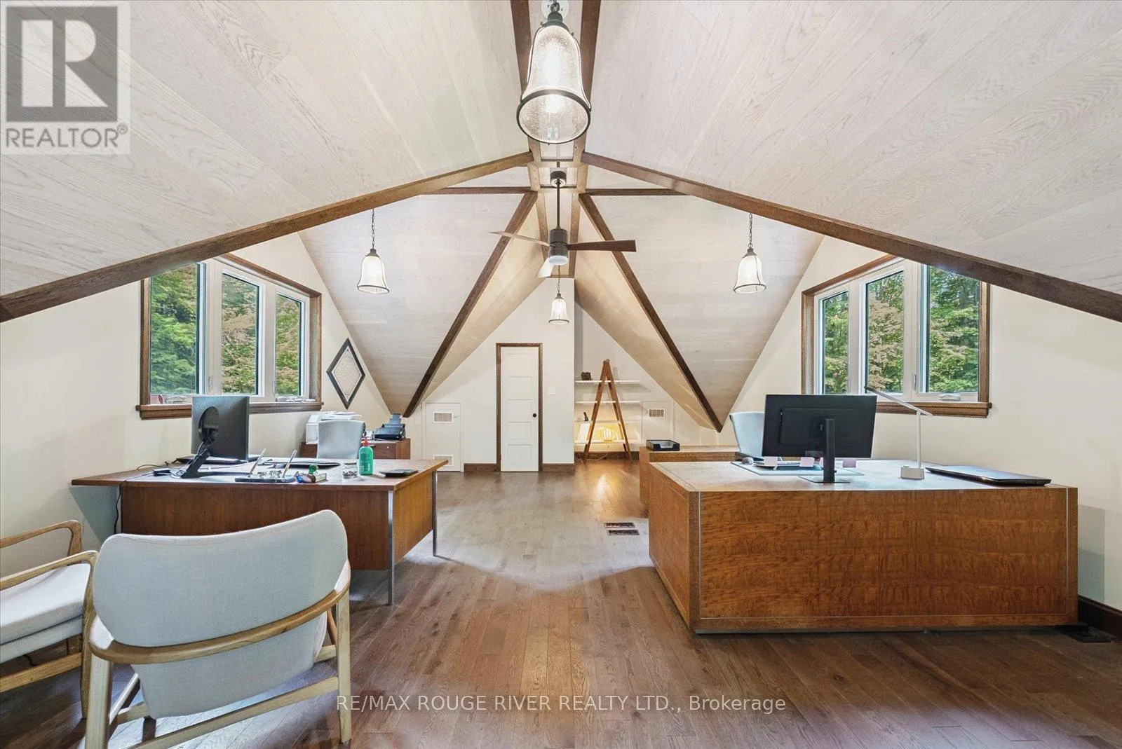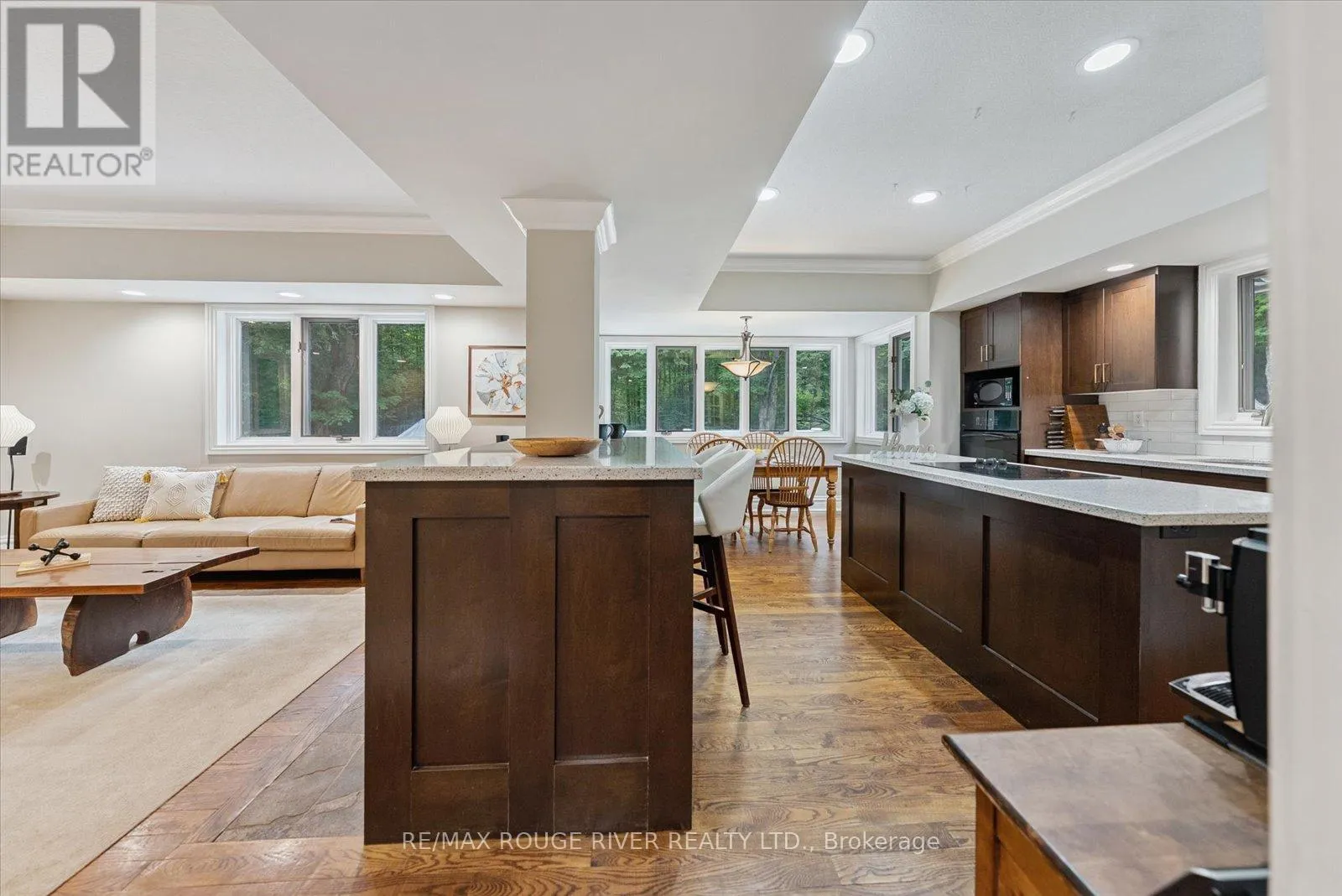 Ganaraska Rd/Shiloh An exciting opportunity to own a custom-built, energy-efficient home nestled on a secluded 11-acre lot. This property offers the perfect blend of privacy, comfort, and sustainability, surrounded by mature trees. Inside, you'll find a beautifully updated kitchen with a walkout to a spacious deck, perfect for entertaining or enjoying quiet mornings surrounded by nature. The home's timeless character is enhanced by hardwood floors throughout, crown moldings, French pocket doors, and upgraded trim. You can also cozy up beside several of the home's fireplaces. One of the standout features? A show-stopping primary bathroom that brings luxury and relaxation to a whole new level. This home also features many custom-built-ins, an LED pot lighting system, and a versatile heated loft above the garage with a bathroom. This space is currently used as a home office, but it could easily be transformed into a studio or guest suite. Additional features include a geothermal furnace, offering highly efficient, eco-friendly heating and cooling with significantly reduced utility costs year-round. The property also includes 1.3 km of groomed trails that wind through the woods, perfect for soaking in the natural beauty that surrounds you. And if you've ever dreamed of tapping your own trees, this property offers the opportunity to harvest your own maple syrup, with an average yield of about 45 litres per year. This is a rare opportunity to own a peaceful, energy-conscious home while still having easy access to modern comforts. (id:27476)