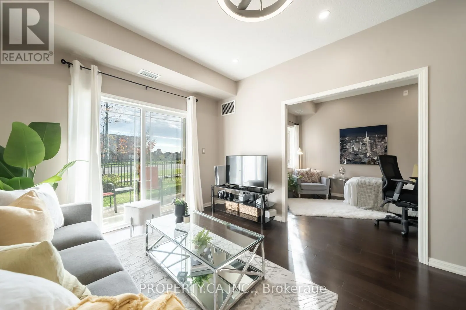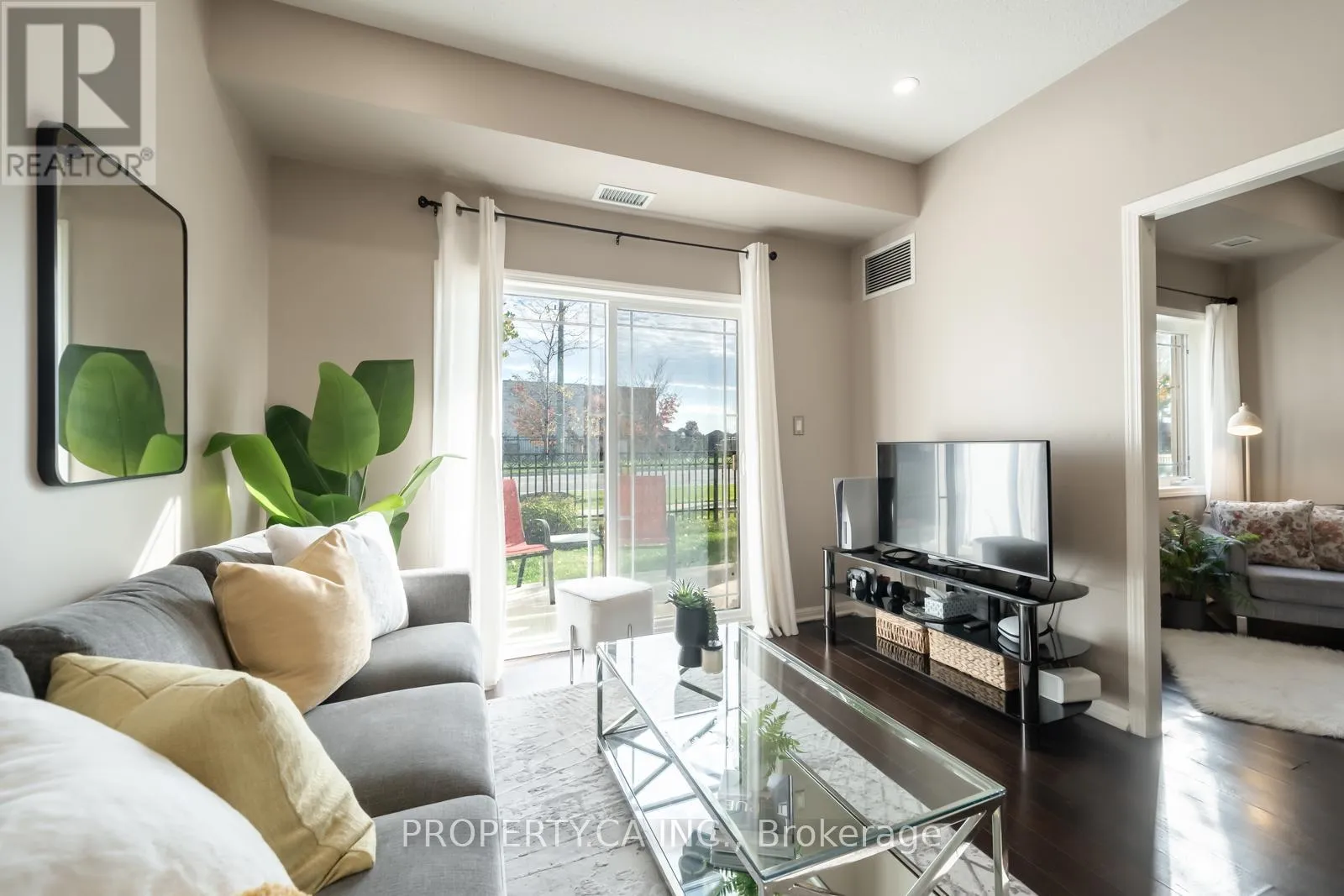 Green Rd /Mcbride Ave This rarely offered 1-bedroom + massive den suite blends comfort, versatility, and sunlight in one perfect package. With east-facing exposure and large windows throughout, this bright, airy home is filled with natural light from morning to afternoon. The oversized den features windows and ample space, making it ideal for a home office - or easily converted into a full second bedroom. Enjoy almost 800 sqft of space that encapsulates 9-ft ceilings, upgraded light fixtures, and pot lights with dimmers. The modern kitchen boasts granite countertops, a breakfast bar, pantry, and stainless steel appliances, overlooking a spacious living area with a walk-out to your private east-facing patio - perfect for morning coffee or convenient outdoor access for pet owners. The primary bedroom offers laminate floors and a large walk-in closet. Building amenities include a fitness centre, party/meeting room, and visitor parking. Located in the sought-after Aspen Springs community, close to schools, parks, shopping, the recreation centre, and downtown Bowmanville, with quick access to Hwy 401 and the GO Bus. Move-in ready and perfect for first-time buyers, downsizers, or investors! (id:27476)