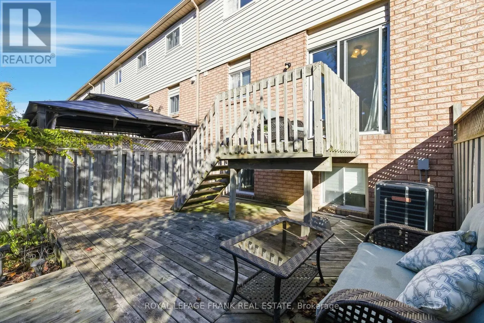 Trulls Rd & HWY 2 Welcome to this beautifully maintained 3-storey townhouse, ideally located in a quiet and convenient Courtice neighbourhood. Offering 2 bedrooms, 2 bathrooms, and a thoughtful layout, this home perfectly blends comfort and functionality. The main living area has a warm and inviting atmosphere, with a living room, dining room, kitchen, and walkout to your private two-tiered deck- ideal for relaxing or entertaining. The kitchen provides plenty of storage and counter space, while the upper level includes two spacious bedrooms and a well-appointed 4-piece bathroom. Additional highlights include an attached garage, parking for 3 vehicles (1 in garage, 1 in driveway, and 1 owned space across the boulevard), and proximity to highways, schools, parks, and shopping-everything you need is just minutes away. This is a wonderful opportunity to lease a move-in-ready home in a sought-after area of Courtice. (id:27476)
