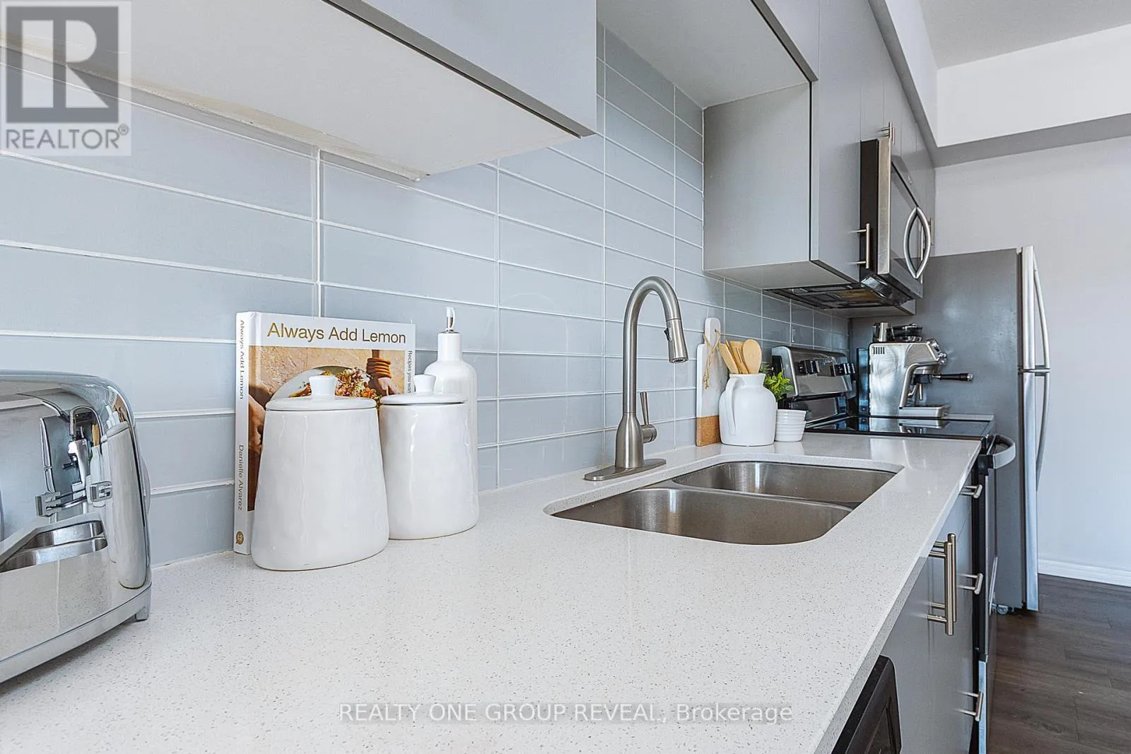 Cross Streets: Liberty St. N & Longworth Ave. ** Directions: From Hwy 401, take Exit 424 (Bowmanville/Hwy 2) and head north on Liberty St N. Continue past Longworth Ave the building is on the west side, just north of Longworth. Top-Floor Treasure at Madison Lane! Whether you're a first-time buyer, downsizer, or savvy investor, this 1-bedroom, 1-bath condo checks all the boxes. Bright and airy, this top-floor unit features thoughtful upgrades and modern finishes throughout, including quartz countertops, a custom kitchen island with a pots & pans drawer, a stylish backsplash, stainless steel appliances, and in-unit laundry. Working from home? The built-in desk makes it easy. Move-in ready and effortlessly chic, this isn't just a condo it's a lifestyle. Bonus Offer: Seller will cover three months of maintenance fees!!! (id:27476)