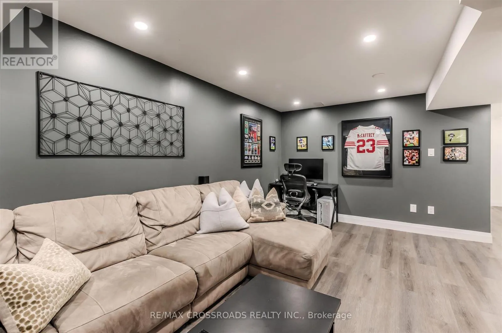 Cross Streets: Nash Road & Courtice Rd. ** Directions: Courtice To Nash. Perfectly positioned on a tranquil court in one of Courtice's most loved neighbourhoods. A beautifully finished freehold end-unit townhome offering effortless, move-in-ready living. Bright & open concept main floor features powder room, combined living & dining area with newer laminate flooring & luxury vinyl throughout, upgraded lighting, and freshly painted. Large bright Windows throughout the home letting loads of Natural Light in a sun-filled renovated kitchen, perfect for family gatherings. Kitchen reno (2022) includes modern backsplash, new oven range, built-in micro/hood vent, built-in dishwasher & large double sink. Enjoy entertaining with ease, walk out to an oversized yard & large patio. Enjoy a private, beautifully landscaped backyard oasis ready for your finishing touches. The upper level offers three thoughtfully designed bedrooms, highlighted by a spacious and light-filled primary retreat with laminate floors, double closet, a semi-ensuite bath, and chic updated lighting. The second level is entirely carpet-free, showcasing sleek, newer laminate flooring throughout. Large open concept finished basement, newer laminate flooring, pot-lights, and plenty of storage space. Located in a prime neighbourhood of Courtice, with beautiful views of the pond, close to top-rated schools, beautiful parks, the community centre, and every amenity you could need. Enjoy quick and easy access to Hwy 401, 418, 407, and public transit. This immaculately maintained home is truly move-in ready-professionally updated for both style and comfort. Don't miss this rare, family-friendly home in a highly desirable neighbourhood - a true turnkey opportunity, perfect for first-time buyers! (id:27476)