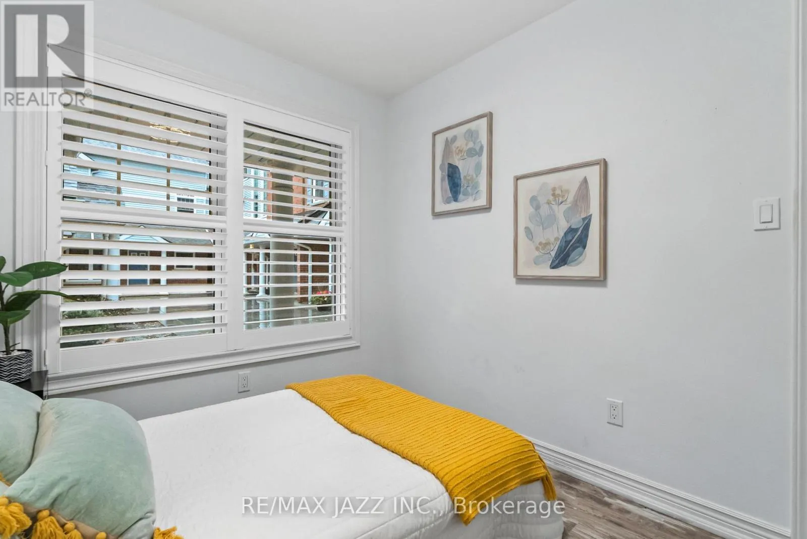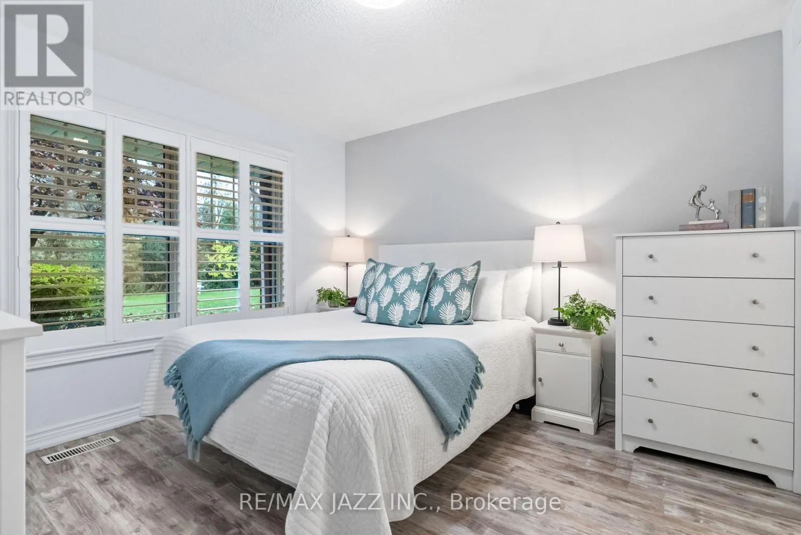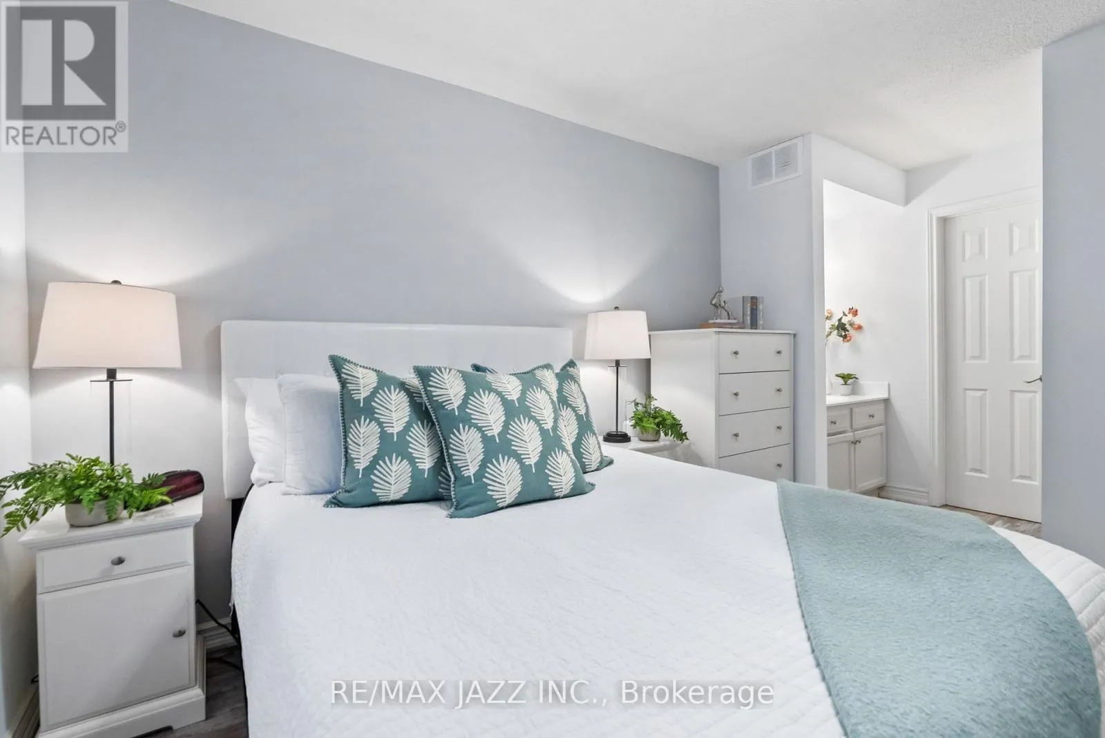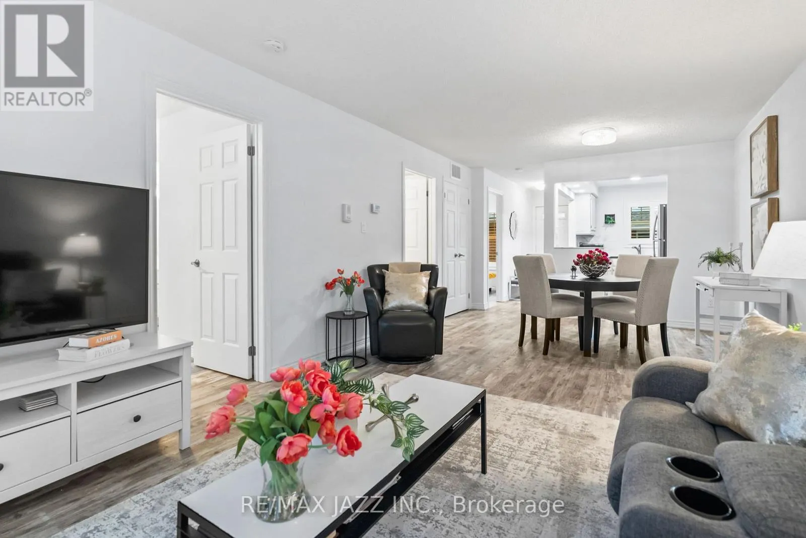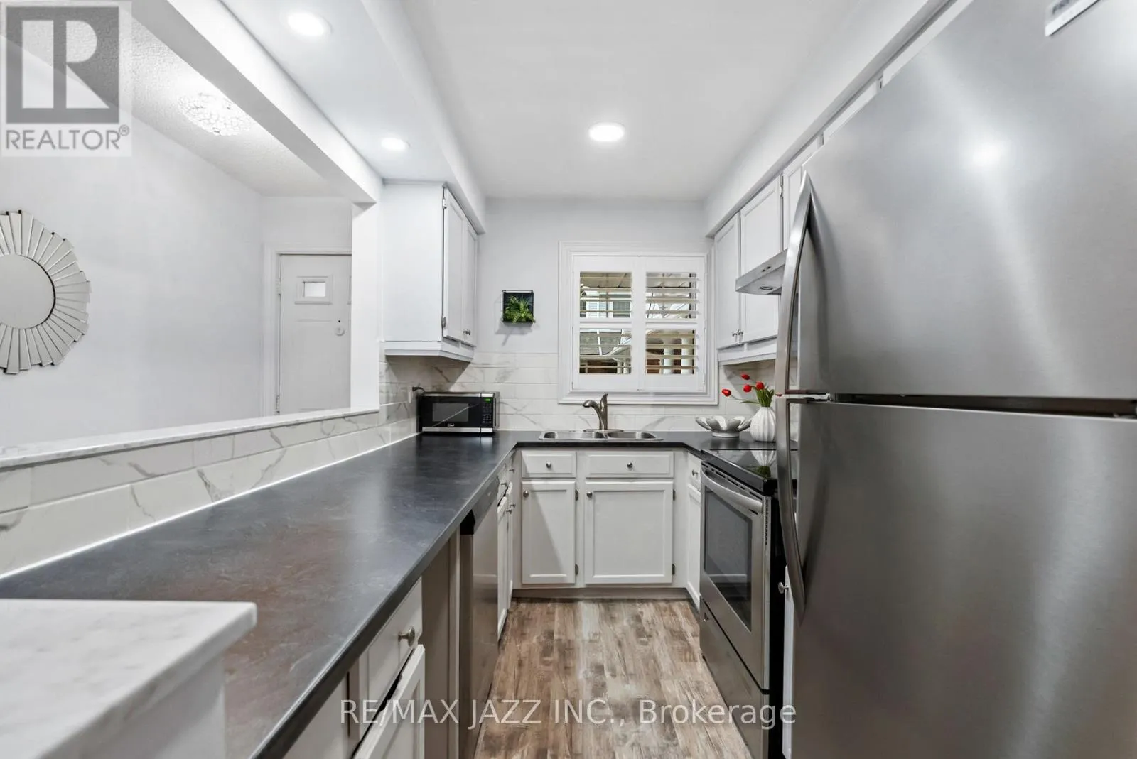 Cross Streets: Nash & Trulls Rd. ** Directions: South of Nash Rd. Welcome home to this charming, sun-filled one-level condo townhouse tucked within a beautifully landscaped 11-acre community - offering rare breathing room, mature green space, and a peaceful, uncrowded setting. Thoughtfully updated, this inviting home features a modern galley kitchen with sleek stainless-steel appliances and ample counter space for easy meal prep. The bright open-concept living and dining area creates warm flow and connection - perfect for relaxing or entertaining. The primary bedroom, overlooking a serene Black Creek ravine, offers a walk-in closet, a stylish vanity nook, and private access to the bathroom. A versatile second bedroom makes an ideal guest/child room, den, or home office. Step directly from your living room onto your private patio overlooking tranquil green space - no rear neighbours, just quiet nature and room to breathe. Enjoy a low-maintenance lifestyle, ideal for downsizers, first-time buyers, or those seeking comfort and simplicity without giving up privacy and greenery. Parking and locker included. A rare blend of convenience, space, and serenity - welcome to easy living. (id:27476)