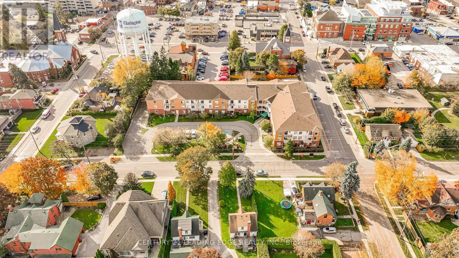 Temperance St and Wellington St Home steps away from Historic Downtown Bowmanville! An Affordable starter home or for someone downsizing! This super-sized one-bedroom condo is perfectly positioned in a prime location, offering private underground parking, a good-sized locker on the lower level- both owned for added security and peace of mind. Inside, the spacious living room features a cozy fireplace and a walkout balcony to enjoy that morning cup of coffee! The primary bedroom boasts a large walk in closet and a 4 piece master ensuite, while the kitchen is fully equipped with all the essentials and a washer & dryer. Freshly painted and some new flooring. There is also a party/meeting room perfect for holding events. Move in ready and One not to Miss! (id:27476)