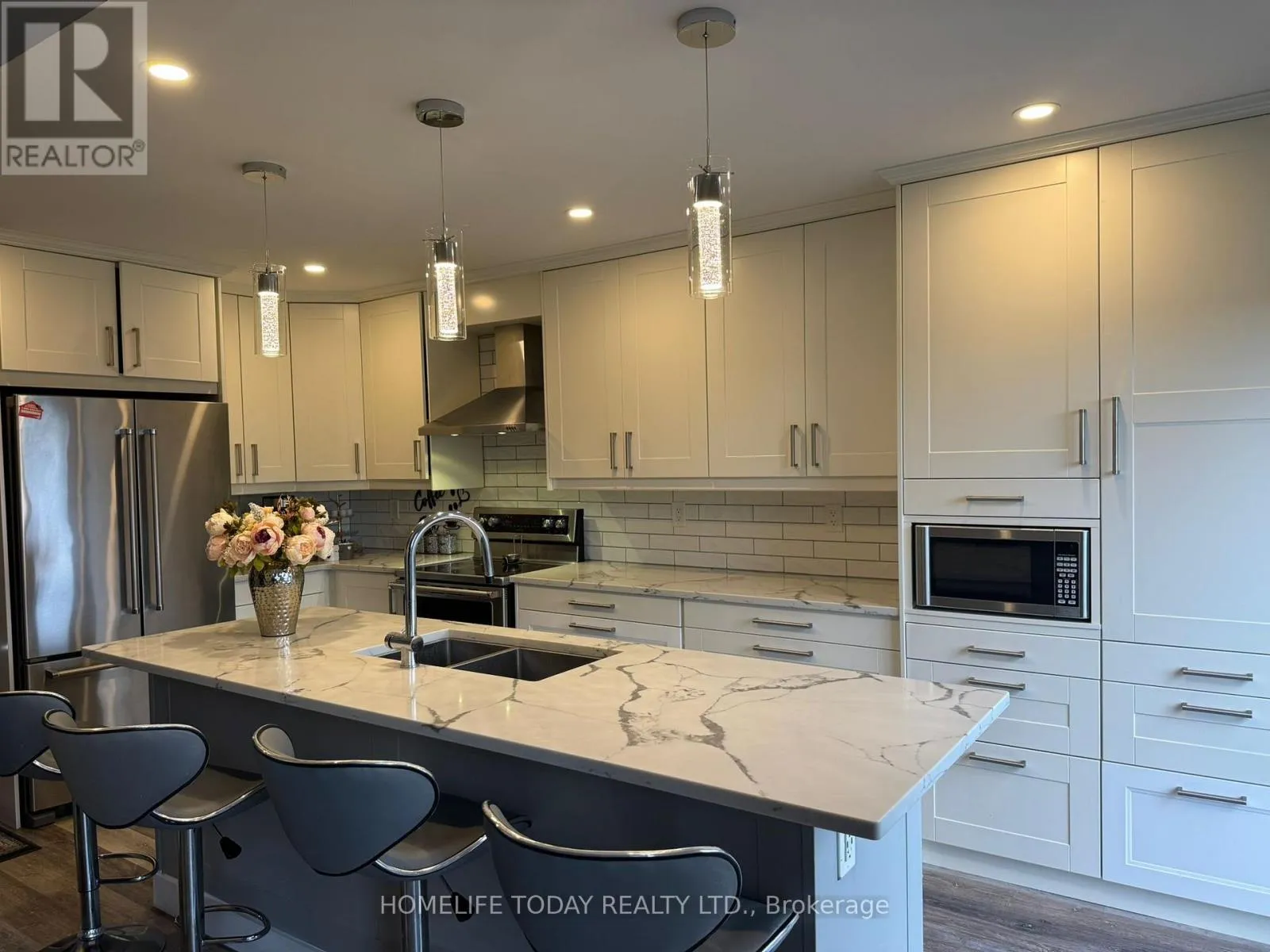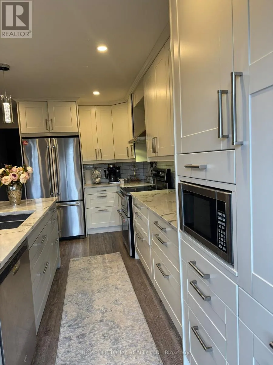 Cross Streets: Bowmanville Ave & Hartwell Ave. ** Directions: . Exquisite 3 Bdrm Home Upgraded Throughout Backing Onto Field. W/ No Neighbours Behind. Featuring Open Concept Custom Kitchen Overlooking Dining & Separate Living Rm. Renovated Kitchen W/New Cabinetry ,Pots & Pans Drawers, Quartz Counters, Island/Breakfast Bar, Backsplash, Under Cabinet Lighting & S/S Appliances. W/O To Private Fully Fenced Yard. High Quality Laminate Flooring Throughout Incl. Bdrms & Stairs. Massive Master Bdrm W/Updated Ensuite & W/I Closet. (id:27476)