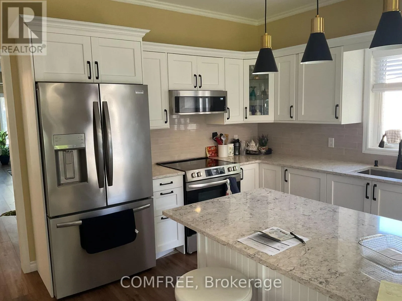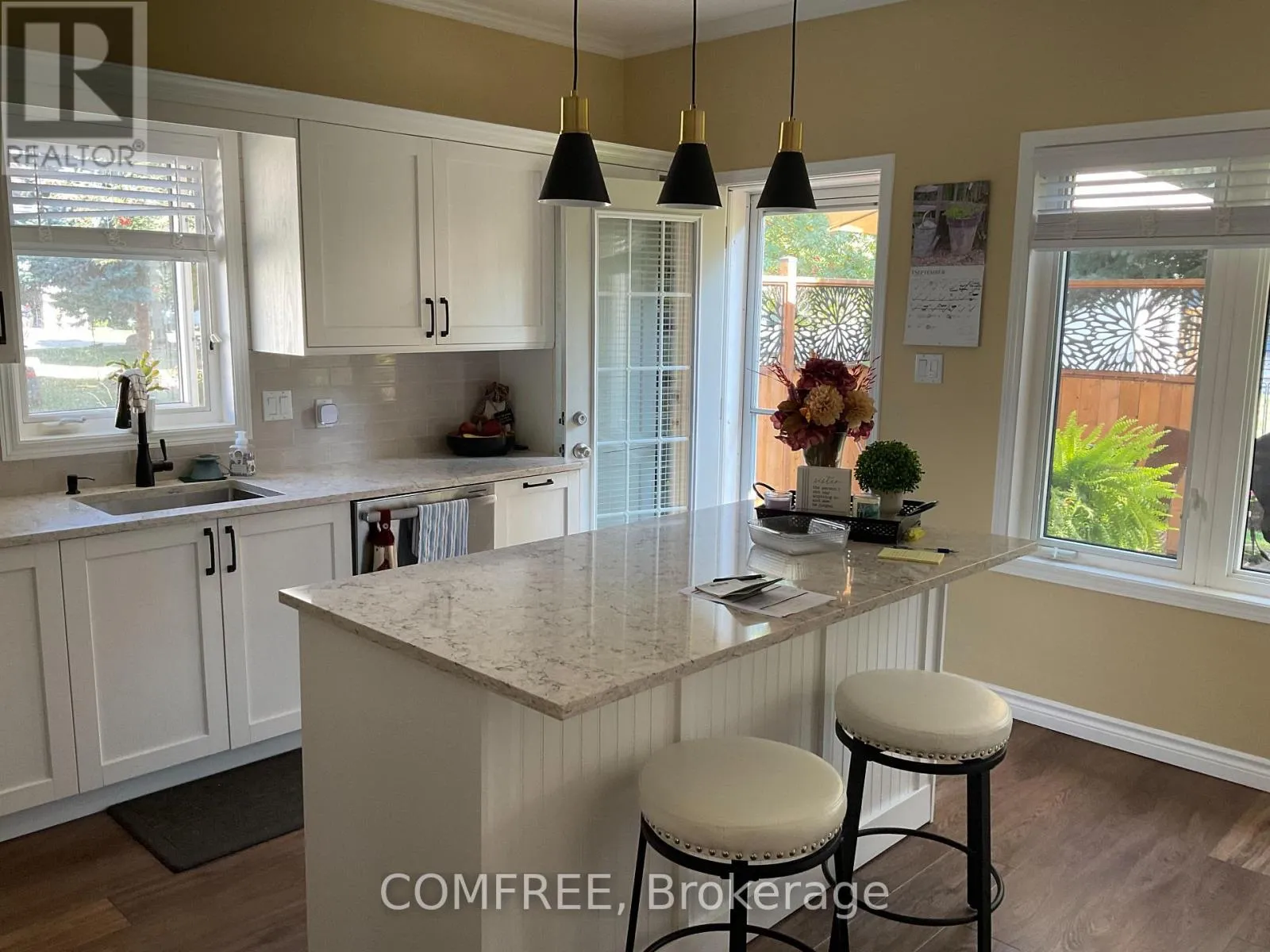 Cross Streets: Bennett Road and 401. ** Directions: Wilmot Trail & Niagara Trail. Completely renovated 2 bedroom 2 bathroom bungalow in an Adult lifestyle Community. Upgraded kitchen with large island and coffee station with quartz countertops. 5 new appliances. House is heated with in floor heating with large on demand water system. 2 updated bathrooms with new vanities and fixtures. Complete landscaping with interlock back and front, extensive gardens. Backyard is private and has large pergola with interlock patio over looking the gardens. Large garden shed which also holds golf cart. Single car garage with lots of storage. Maintenance fee includes water, snow removal and full use of facilities which include golf, tennis, pickle ball, horse shoes 2 pools, shuffle board , pool tables, darts, hot tubs, sauna, exercise room, entertainment every month, Pharmacy in club house as well as hair salon. Be as busy as you want. (id:27476)