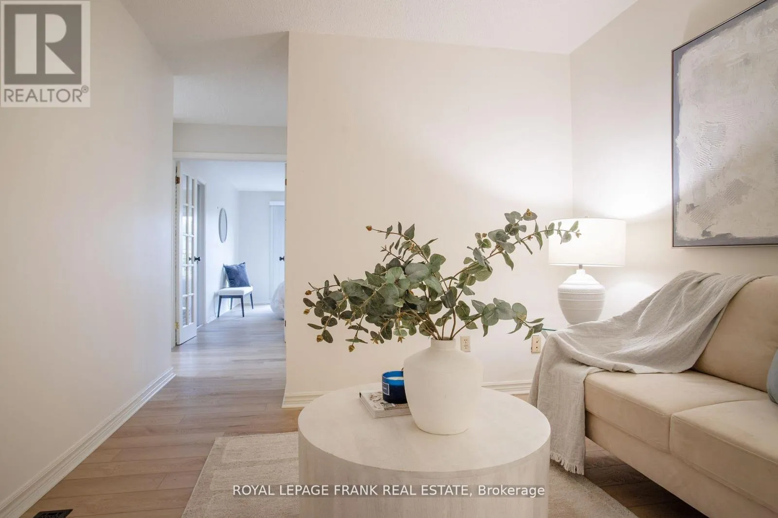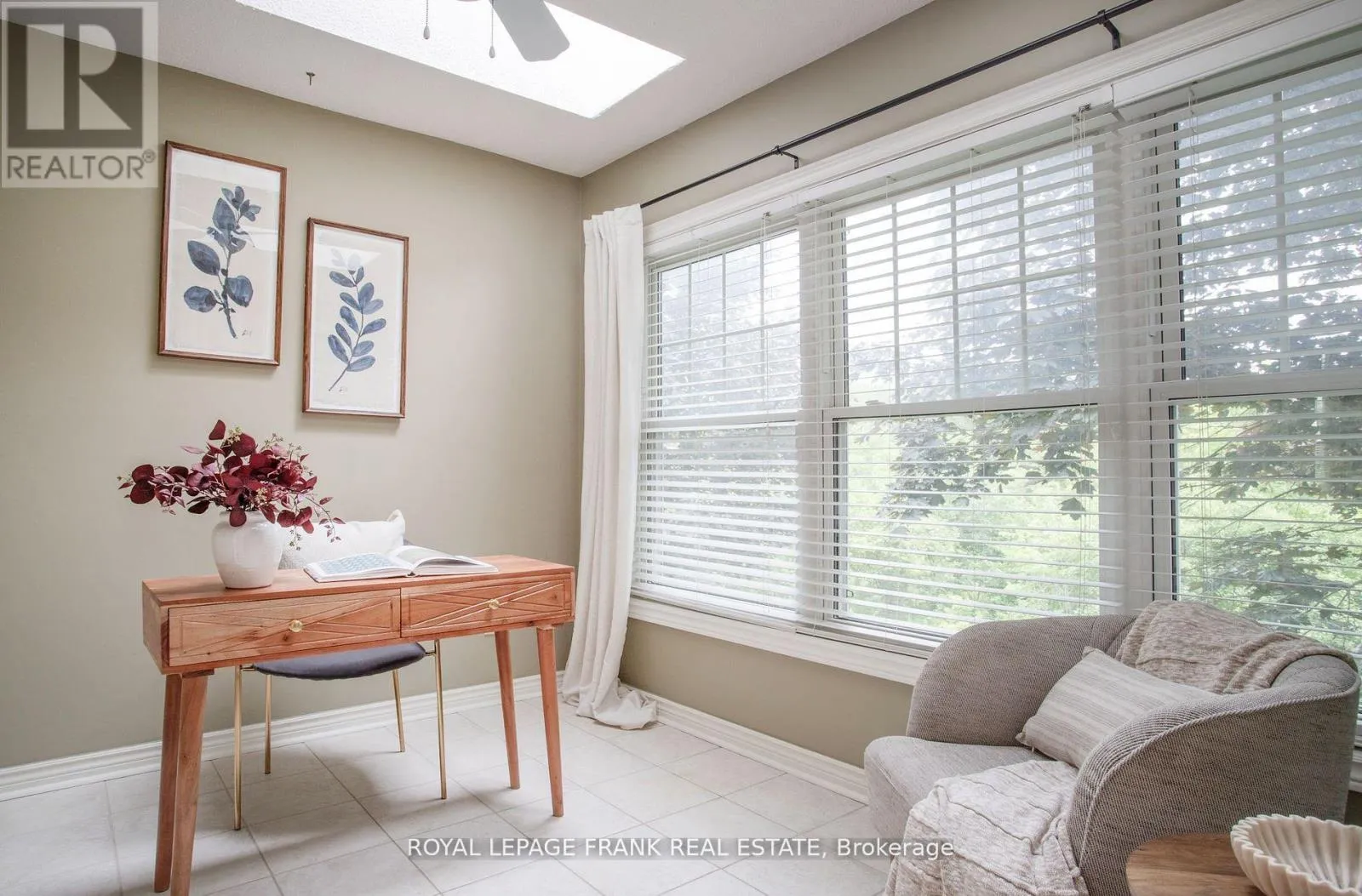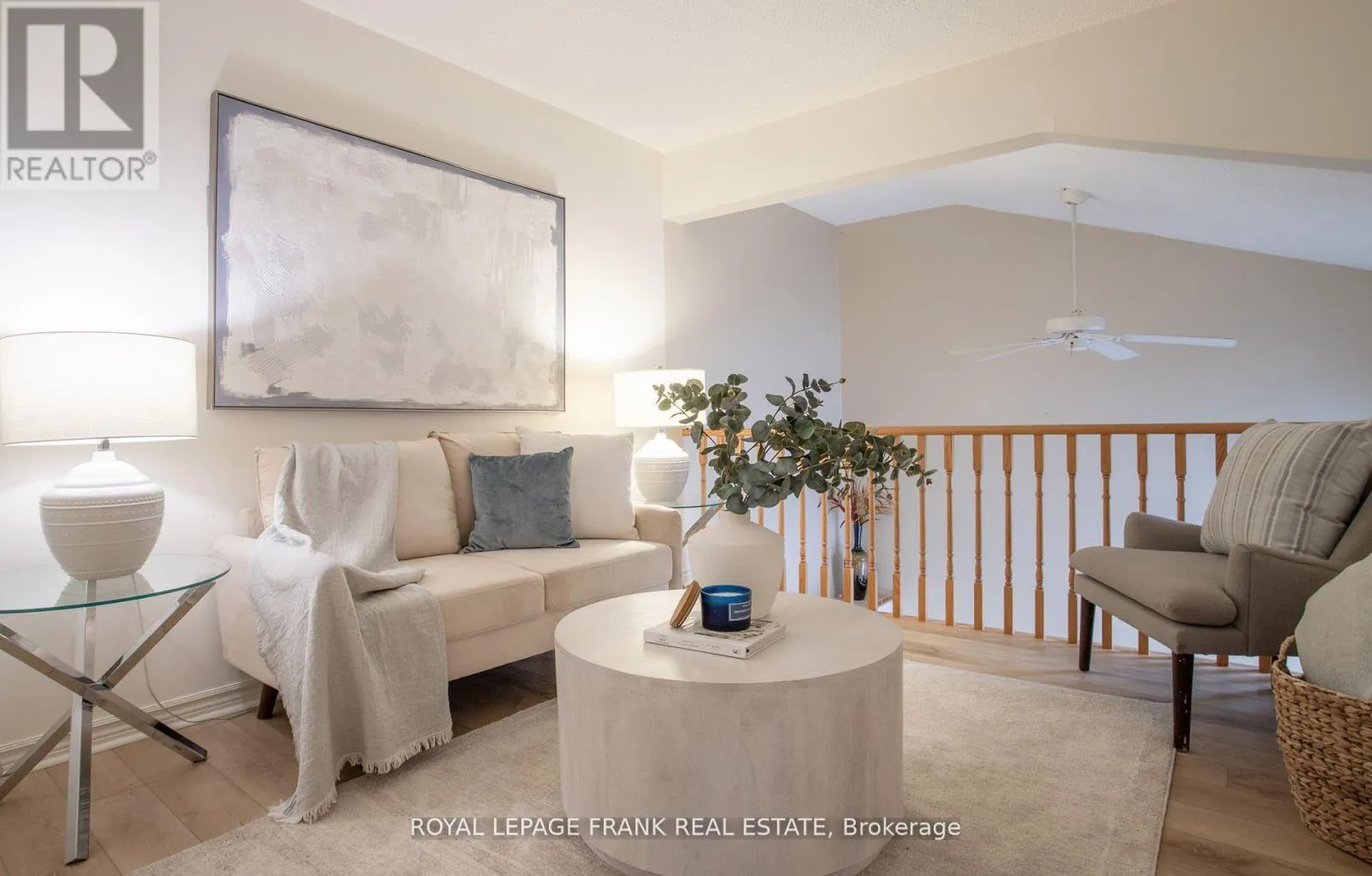Nash Rd and Trulls Rd Welcome to the largest and most desirable unit in Parkwood Village. A spacious 1,790 Sq Ft, two storey condo townhouse offering unmatched privacy and tranquility. With no neighbours above and a premium location backing onto mature trees and greenspace, this home is truly unique. Inside, enjoy a well-maintained layout that blends classic charm with modern comfort. Updates include new second floor flooring and a newer furnace. The primary bedroom features a juliette balcony, a large walk-in closet, and a 4-piece ensuite with jacuzzi-style tub and walk-in shower. A loft space overlooking the kitchen is perfect for a home office or cozy family room. An additional spacious bedroom and convenient in-suite laundry complete the upper level. Excellent parking and access to scenic nature trails and tennis courts round out this peaceful, park-like setting. A rare opportunity to own the most spacious and private unit in this sought-after community - comfort, style, and serenity await. (id:27476)