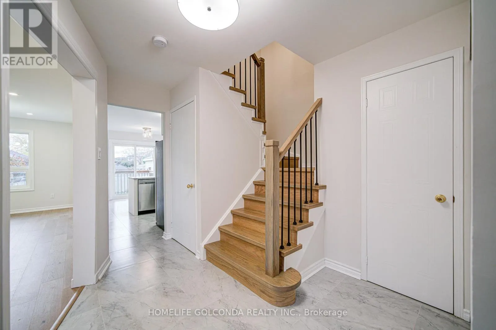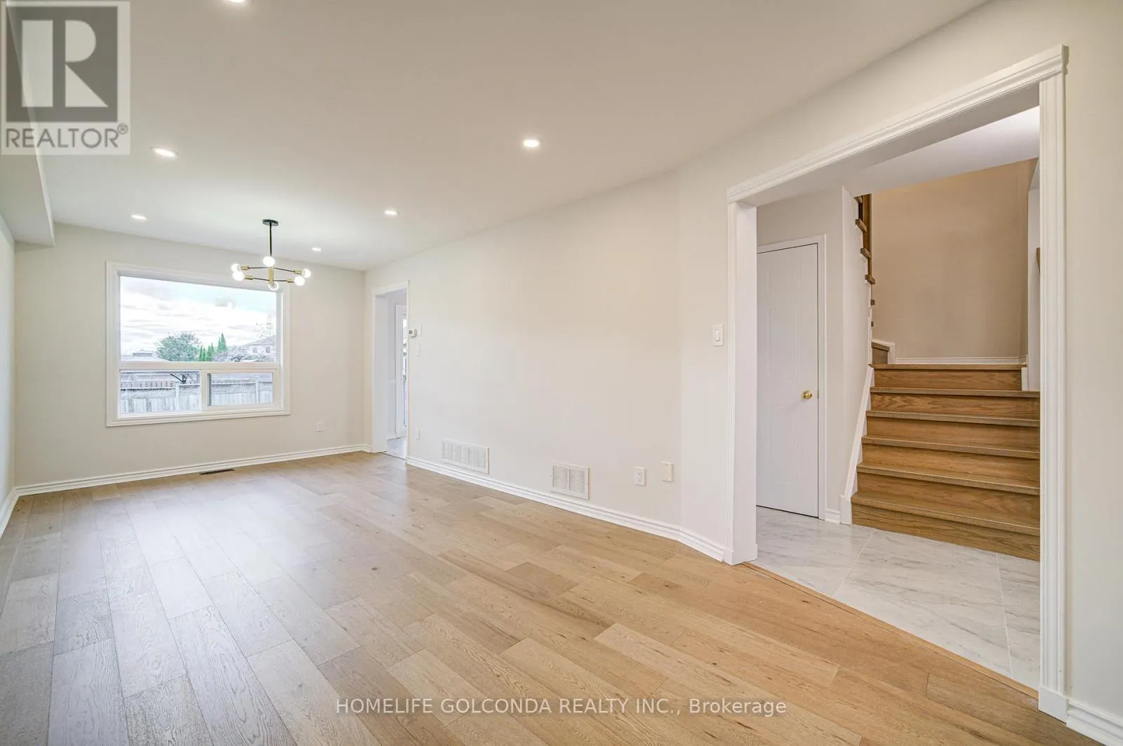 Longworth & Laurel Wood This stunningly newly renovated 2-story, 3-bedroom home has been completely transformed with modern finishes and attention to detail! The main and second floors feature brand new engineered hardwood flooring and a beautifully finished staircase. The living room and basement boast pot lights, complemented by all-new light fixtures with energy-efficient LED bulbs throughout. The kitchen has been refreshed with painted cabinets and opens to a spacious eat-in area, highlighted by large porcelain tiles from the entry to the kitchen. Both bathrooms feature engineered stone countertop vanities, a new 3-piece bath, and stylish porcelain tiles in the powder room. Smooth ceilings and fresh paint throughout the main and second floors create a bright, airy feel. Step outside to a newly built wooden deck and lush backyard with fresh sod, perfect for entertaining. Additional upgrades include a new interlock pathway to the front entry and a freshly painted asphalt driveway. Located in a great neighborhood close to schools and shopping, this move-in ready home combines modern elegance with thoughtful functionality. ** This is a linked property.** (id:27476)