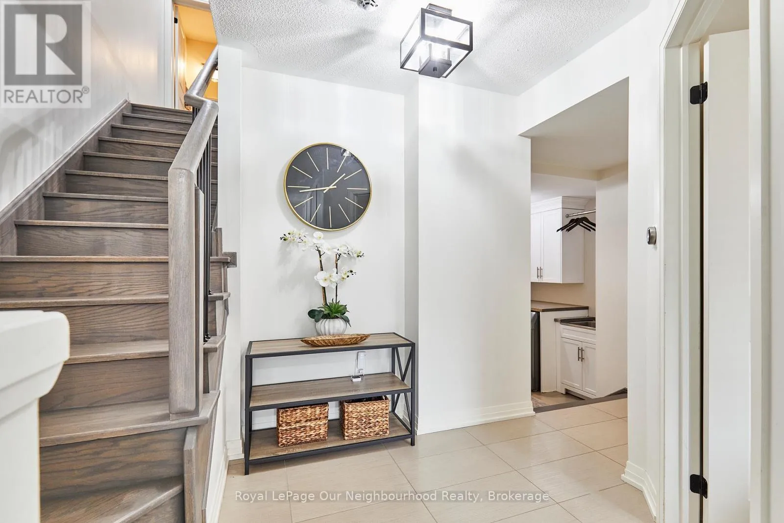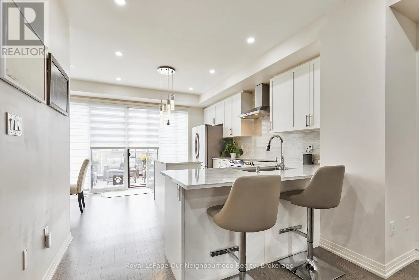 Cross Streets: Green Rd & Clarington Blvd. ** Directions: Hwy 2, South on Green Rd , East onto Clarington Blvd. Welcome to 28 Clarington Blvd, a truly stunning 4 bedroom, 4 bathroom townhouse! 9ft ceilings & large windows throughout create the utmost spacious feeling & allow natural light to fill the home. Upgraded oak staircases! Beautiful hardwood floors are found on the 2nd and 3rd levels, as well as in the 4th bedroom, located on the main level. As you enter the 2nd level, you are met with an open concept, modern vibe. The very spacious living room and dining room, include an electric fireplace, a walkout to the balcony, wainscoting & dimmable pot lights. The gourmet kitchen includes stainless steel appliances, a modern backsplash, quartz countertops, which include a breakfast bar, soft closing drawers as well as a large island & dimmable pot lights. Floor to ceiling windows and large sliding doors lead you to one of your beautiful, spacious terraces from the kitchen/breakfast area. Truly a fabulous space for entertaining or simply relaxing. The terrace also includes a gas hookup for your BBQ. On the 3rd level, you will find your primary bedroom, which includes a 3 piece ensuite with a quartz countertop and a walk-in shower. The room also includes a walk-in closet with custom inserts and a walk-out to your private balcony. Bedrooms 2 & 3 have large windows & custom closet inserts. Take a walk up to the 4th level, where you will find another lovely terrace! So many options to create your outdoor spaces! The main, entry level of the home includes a 4th bedroom, a 3 piece washroom with a quartz counter and the laundry room. The walkout to the 1.5 car garage is also accessible on this level as is the entry to the unfinished basement which has lots of storage space! Additional features of the home include a 200 amp service, Zonesmart climate control, a tankless water heater & garage door opener. Be sure to open each door leading to the various terraces/balconies as you tour the property! POTL fee $107.31/month (id:27476)