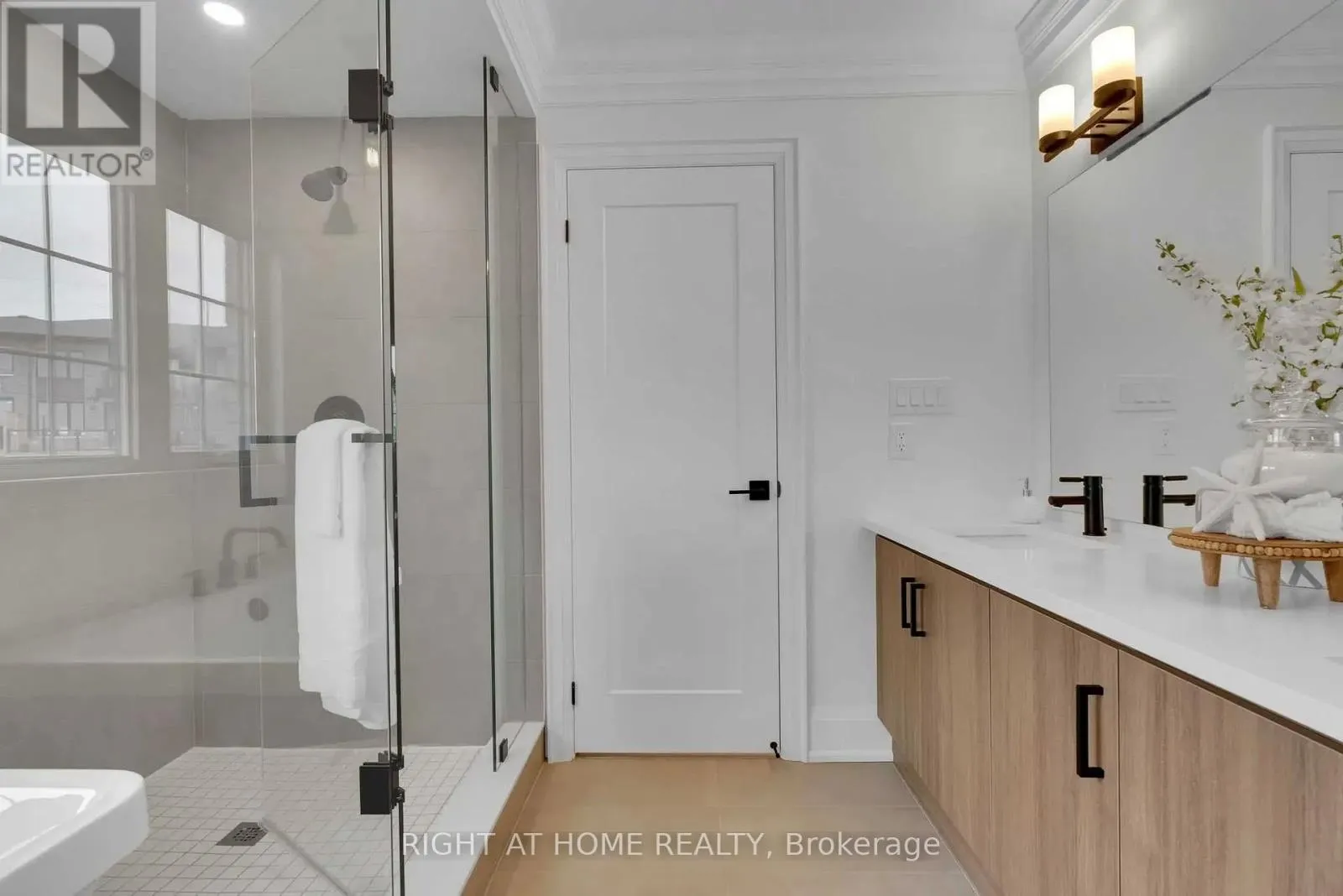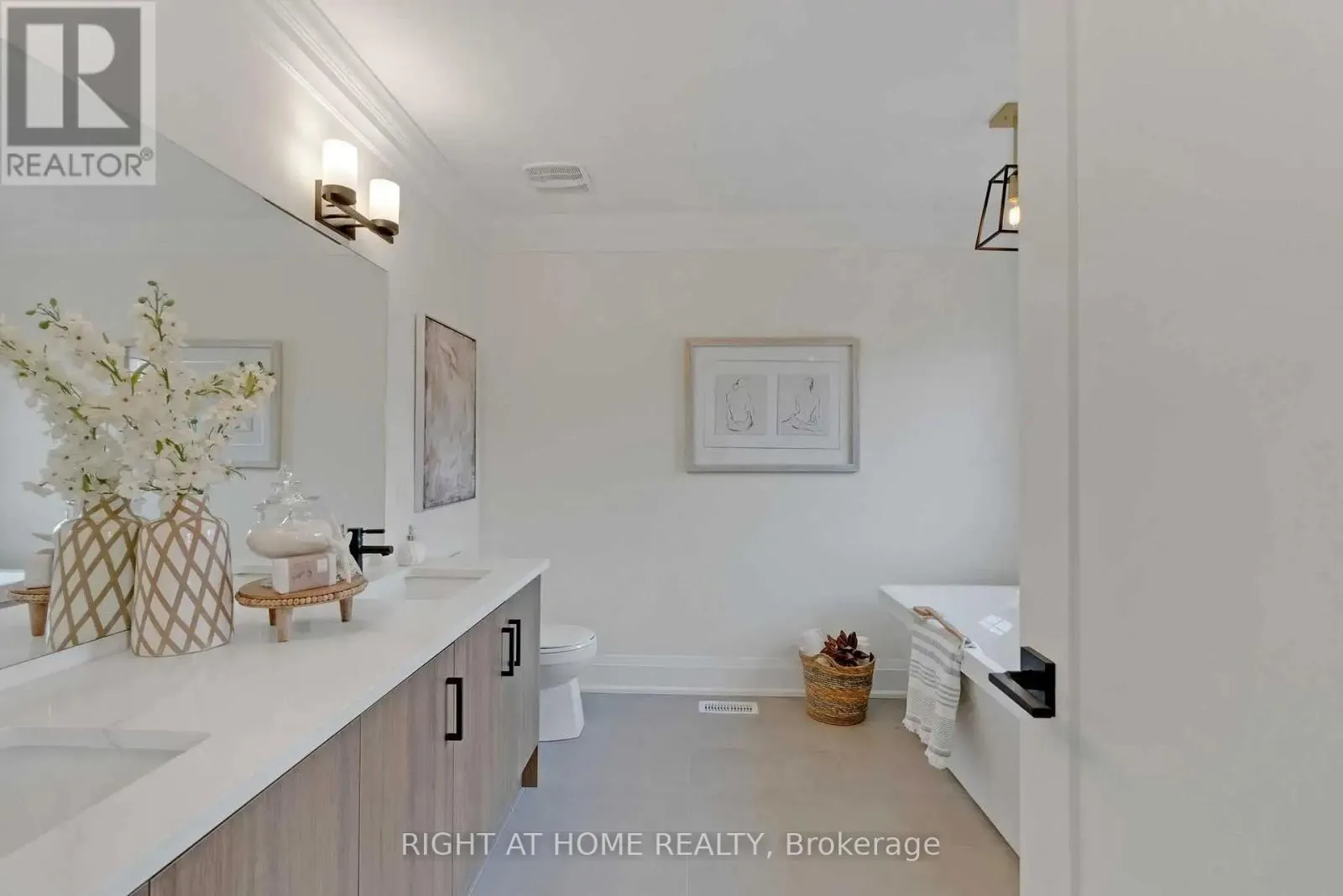 Longworth Ave & Liberty Street Welcome to this stunning, never-lived-in luxury home featuring over $300,000 in builder upgrades, situated on a massive pie-shaped lot - perfect for a swimming pool! Offering more than 3,800 sq. ft. of finished living space, this home is ready for its first occupant and comes with full Tarion Warranty coverage.Step inside and experience modern elegance with an open-concept layout, oak hardwood flooring, and soaring 9' smooth ceilings adorned with pot lights and crown moulding throughout the main level.The custom chef's kitchen showcases a quartz waterfall island with an extended breakfast bar, upgraded cabinetry, and KitchenAid stainless steel appliances - ideal for entertaining and family gatherings.Enjoy the exquisite family room featuring coffered ceilings and a gas fireplace, creating a perfect space to relax in comfort and style.Ascend the solid oak staircase to the second floor, where you'll find the primary bedroom retreat complete with a 5-piece ensuite boasting a double vanity, custom glass shower, and soaker tub. Each bedroom has access to its own ensuite bathroom, and the upper level also includes a convenient laundry room and an additional loft area ideal for a home office. Oak hardwood flooring continues throughout the second level.The basement has been professionally finished by the builder, featuring a 3-piece bathroom, offering additional living or recreational space.Enjoy direct access to the double car garage through a mudroom with ceramic flooring and custom built-ins for added convenience.Located on a quiet crescent in one of Bowmanville's most prestigious neighbourhoods, close to parks, schools, transit, and all major amenities, with easy access to Highways 401 & 407. (id:27476)