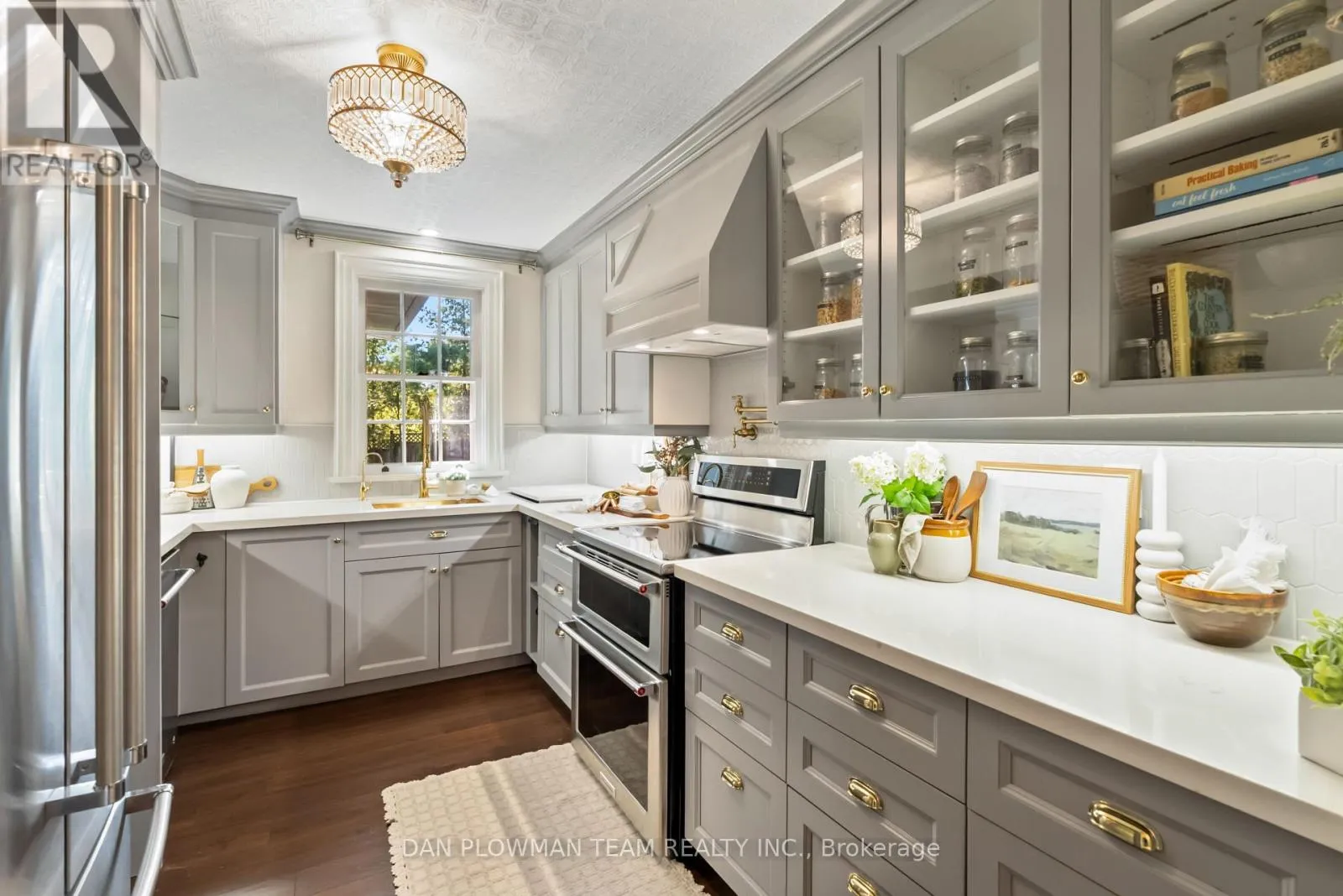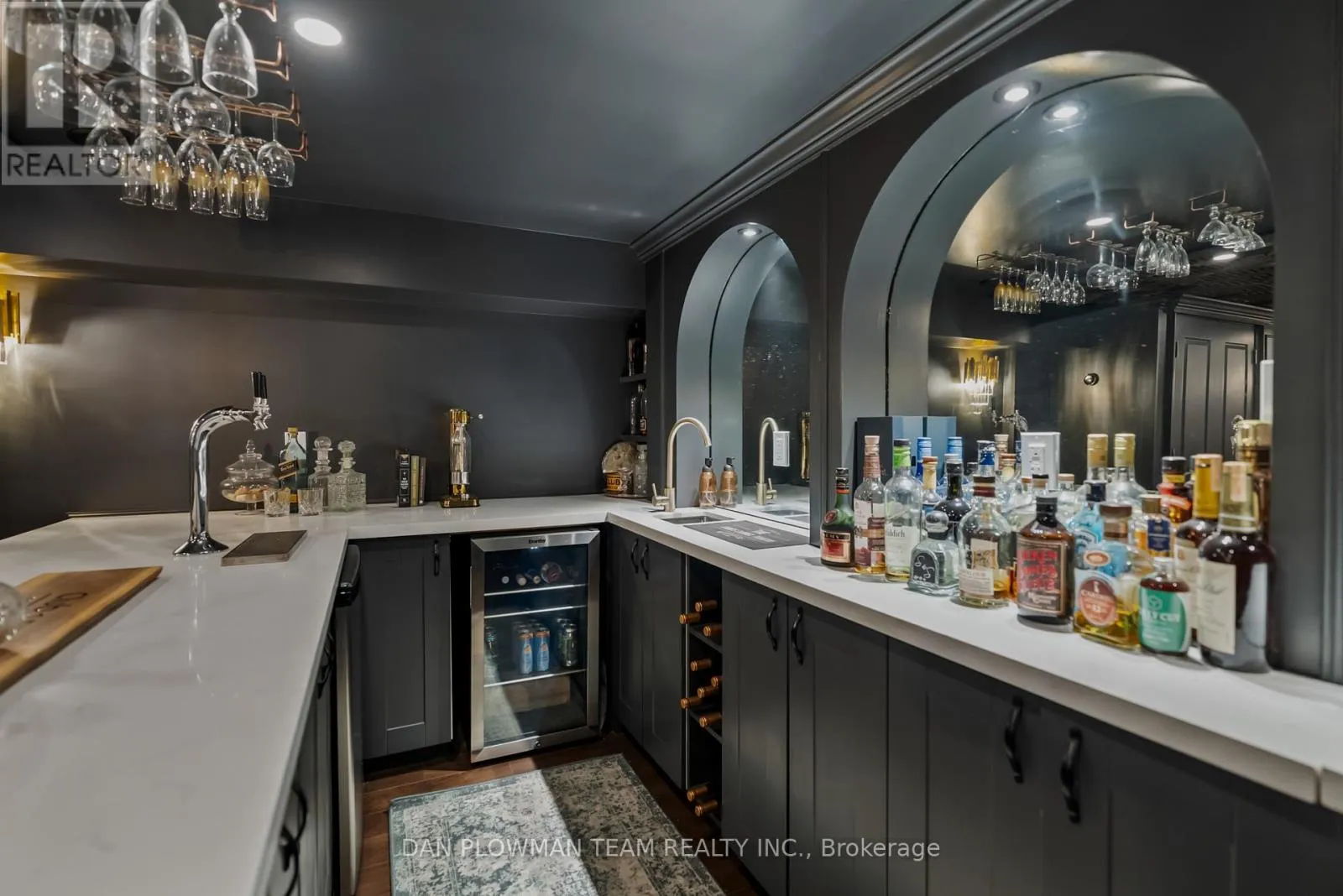 Cross Streets: Concession St E & Liberty St N. ** Directions: North on Liberty St N, East on Concession St E. Step Into A Home Unlike Any Other. Built With Character And Preserved With Care, This Extraordinary Home Has Been Thoughtfully Reimagined And Rebuilt, Blending Its Original 1950s Charm With Countless Bespoke Updates. Stunning Entrance W/Arabesque Marble Floors, Leading To A Formal Living Room Ft. W/B Fireplace With Custom Mantle And W/W Bookshelves. Impressive Dining Room With Coffered Ceiling, Stone Fireplace, With Tuck-Away Doors Revealing A Stunning Kitchen With Quartz Counters And Backsplash, Brass Fixtures, Pot Filler, And A Hidden Pop-Up Microwave. A Tea Room Addition Offers Its Own Prep Station With Hot Water Tap, Quartz Counters, Shell Backsplash, Crown Molding, And A W/O To A European-Style Terrace. The Main Floor Also Features A Large Primary Bedroom With 3-Piece Ensuite, Bay Window And W/O To Your Secluded Hot Tub Patio, 2 additional Bedrooms, And 4-Piece Bath. Downstairs You'll Find 2 More Bedrooms, A 3-Pc Bath, A Spruce-Lined Cold Cellar And A Service Entrance To The West Garage. There's More..Once You Find The Hidden Entrance(S), You Will Be Blown Away By What Comes Next - A Glamorous Speakeasy With Wet Bar, Beer Taps, Antique Refinished Pool Table, Perfect For Entertaining. Plus, A Ventilated Cigar Lounge W/Parkwood Estates-Inspired Oak Paneling. If You've Made It This Far, And Look Close Enough, You'll Find The Underground Tunnel With Groin Vault Ceilings, Arched Brick Storage W/Lighting, And Stamped Concrete Floors That Lead You To An Impeccable 3-Car Garage/Workshop With 18' Coffered Ceilings, Dust And Sound Separation And Wired For Sound Throughout. Upstairs Ft. Two Offices (One Is A Podcast Studio), Pegged Canadian Hickory Floors, Wood Stove, Kitchenette, 2 Pc. Bath And Catwalk. The Grounds Are Equally Enchanting With 150 Trees, 2 Pear Trees, Privacy Hedges, Garden Room With French Doors, And Mature Landscaping. With Endless Secret Details And Inspired Craftsmanship Throughout, This Estate Is More Than A Home - It's A Living Work Of Art. (id:27476)