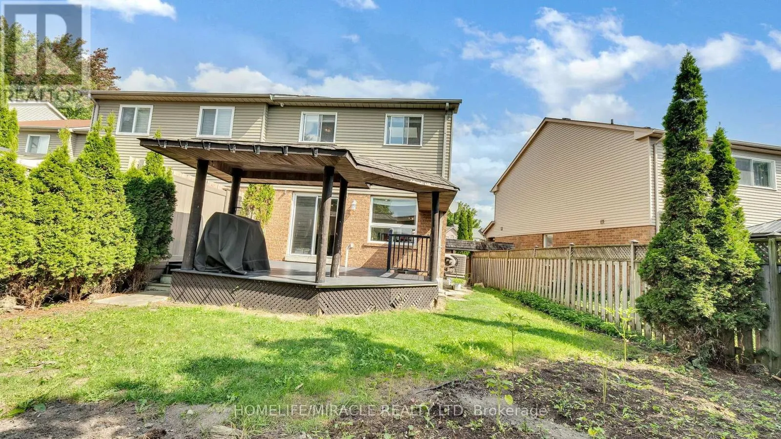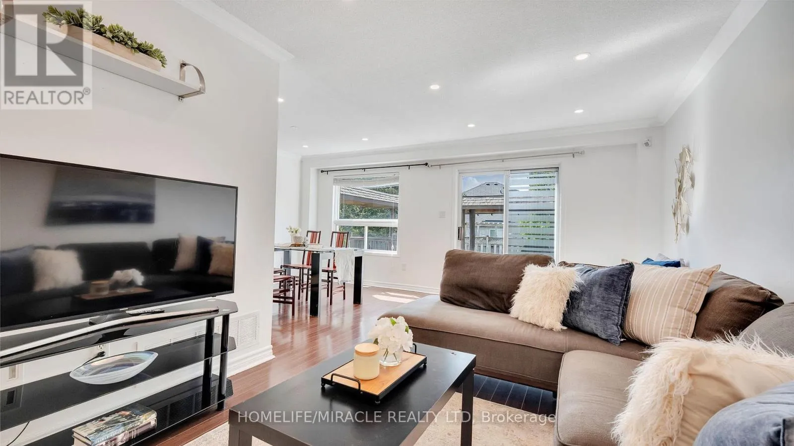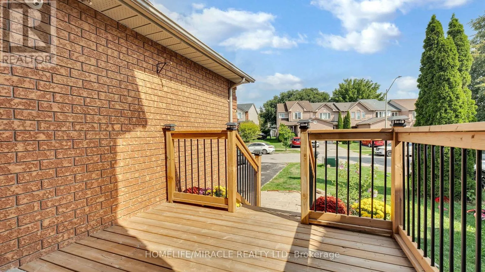 Aspen Springs & Bowmanville Av Welcome to this stunning freehold all-brick end-unit townhome, offering style, space, and convenience in one of Bowmanville's most sought-after family neighbourhoods. Thoughtfully maintained, this home is perfectly suited for first-time buyers or those looking to downsize. Featuring 3+1 bedrooms, 3 bathrooms, and a fully finished basement, it offers the perfect balance of comfort and functionality for modern family living. The main floor boasts a bright and spacious living & dining area with large windows, filling the home with natural light-perfect for family meals and gatherings and a walkout to a huge deck overlooking green space. The generous kitchen with breakfast area provides plenty of room for your family. Upstairs, the primary bedroom impresses with a skylight, walk-in closet, and a private 4-piece ensuite. Two additional bedrooms are well-sized with ample closet space and large windows, ideal for families. The finished basement is a true highlight, offering a cozy recreation room with pot lights and an additional spacious bedroom with a window for bright ness and safety. Outside, the fully fenced backyard delivers privacy and space-perfect for entertaining, relaxing, or barbecuing. The private driveway accommodates two cars plus one in the garage. This ideal location is within walking distance of French, Montessori, public, and Catholic schools, as well as beautiful parks and trails. Just minutes from downtown Bowmanville, the future South Bowmanville Rec Centre, Clarington Fields, shopping, restaurants, and all major amenities. Five minute drive to Highway 401 and walk to public transit makes commuting a breeze. Nearby, you'll also find healthcare, places of worship, grocery stores (Canadian & ethnic), banks, and more. This family-friendly townhome blends style, comfort, and convenience-make this your home today! (id:27476)
