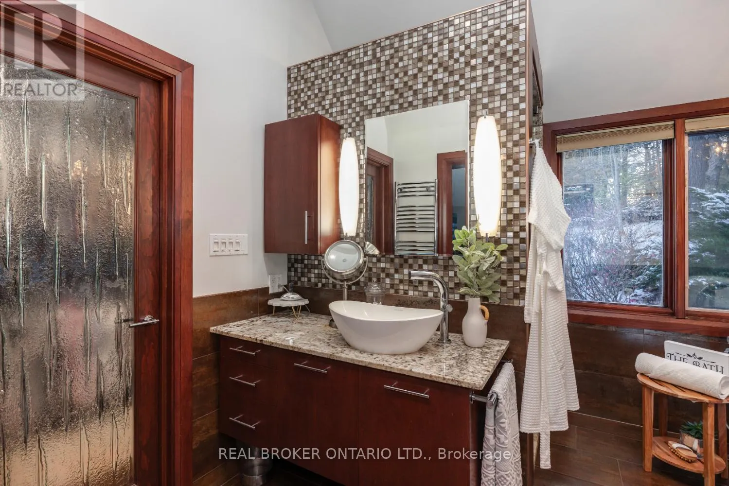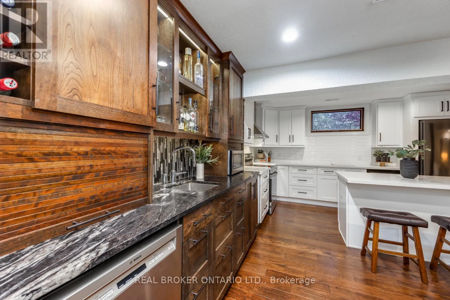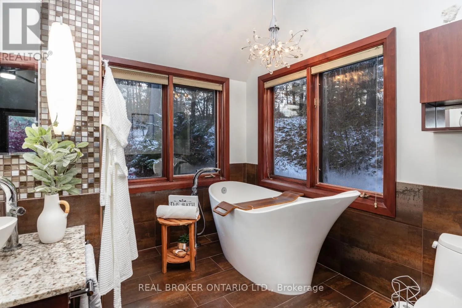 Cross Streets: Concession Rd 10/Bowmavnille Ave. ** Directions: Head north from 401 at Bowmanville Ave. Follow to Concession Rd 10 and turn west. Turn north onto Sumac Road and 5 is located on the east side of the road. Set amongst mature trees, on approximately 6.17 acres, in an executive Burketon neighbourhood, this stunning raised bungalow offers a rare blend of privacy, character, and craftsmanship. The property welcomes you with a large paved driveway leading to a 3-car attached garage with interior access, plus a detached approx 15ft x 30 ft workshop with hydro - perfect for hobbyists or extra storage. Beautiful landscaping surrounds the home, featuring walkways, fountains, armour stone accents, multiple patio areas ideal for relaxing or entertaining and groomed trails for leisurely strolls through the trees. Enjoy the peaceful sounds of nature from the expansive deck overlooking the private yard. Inside, this home is rich in charm and design detail. The kitchen boasts quartz counters, a moveable centre island, built-in appliances, and a convenient walk-in pantry. The dining room features a walk-out to the deck and shares a striking, two-way wood-burning fireplace with the sunken living room. Here, large windows, a vaulted ceiling, and a floor-to-ceiling stone fireplace creates a warm, inviting atmosphere filled with natural light.The main floor hosts two generous sized bedrooms. The luxurious primary retreat boasts a walk-in closet and a spa-inspired ensuite, features heated floors, a soaker tub, and a tiled walk-in shower. The fully finished, walk-out basement offers exceptional living space with large windows that make it bright and welcoming. It includes two additional bedrooms (one with two closets, and the other with a walk-out to the yard and a woodstove), a 4-piece bath, a dining area and an open concept living space that overlooks the kitchenette. This area has ample cabinetry, quartz counters as well as a custom cherry wood wet-bar. This one-of-a-kind property seamlessly combines elegance, comfort, and natural beauty, truly a place to call home. (id:27476)