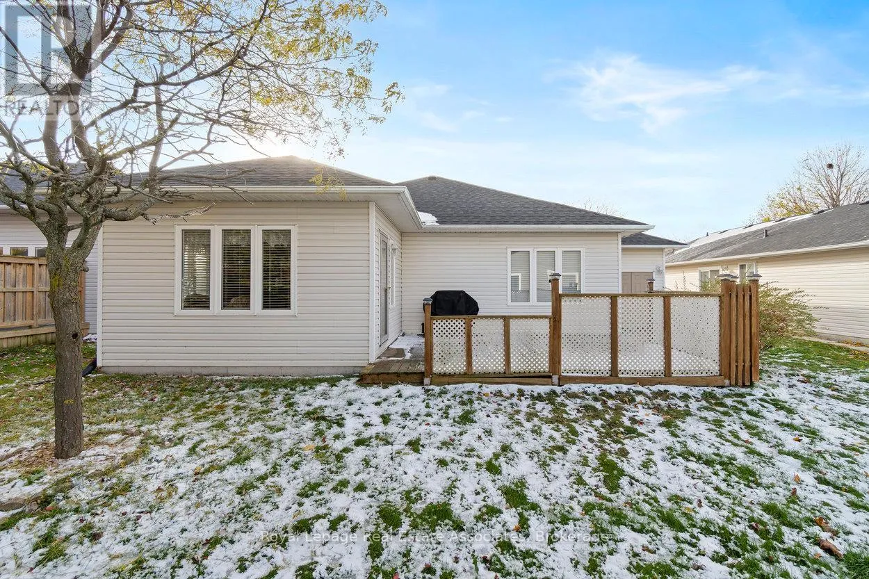 Cross Streets: Bennett Rd / Wilmot Creek Dr. ** Directions: South of Hwy 401 to Bennett Rd, then Wilmot Creek Dr, Hinkley Tr and Fir Dr. Welcome to 3 Fir Drive in the sought-after adult lifestyle community of Wilmot Creek! This charming bungalow features 2 spacious bedrooms, a combined living and dining room with hardwood floors, and a bright kitchen open to the family room with walk-out to a private rear deck - ideal for entertaining or relaxing outdoors. A screened porch at the front adds extra charm and a cozy spot to enjoy the neighbourhood. The oversized garage provides ample storage and can accommodate a golf cart. Monthly POTL fees of $1,200 include property taxes, water, driveway & road snow removal, land lease and access to all amenities. Residents of Wilmot Creek enjoy an unparalleled lifestyle with over 100 different social clubs, a vibrant hub at The Wheelhouse offering billiards, shuffleboard, fitness classes, crafts and dance programs. The community also boasts an 800-seat auditorium hosting theatre productions, dances and the Annual Grandkids Christmas Party. Amenities include a private 9-hole golf course, swimming pool, clubhouse, fitness centre, tennis courts, library, woodworking shop, and more - all just steps from Lake Ontario. Truly a welcoming, active community with something for everyone! (id:27476)