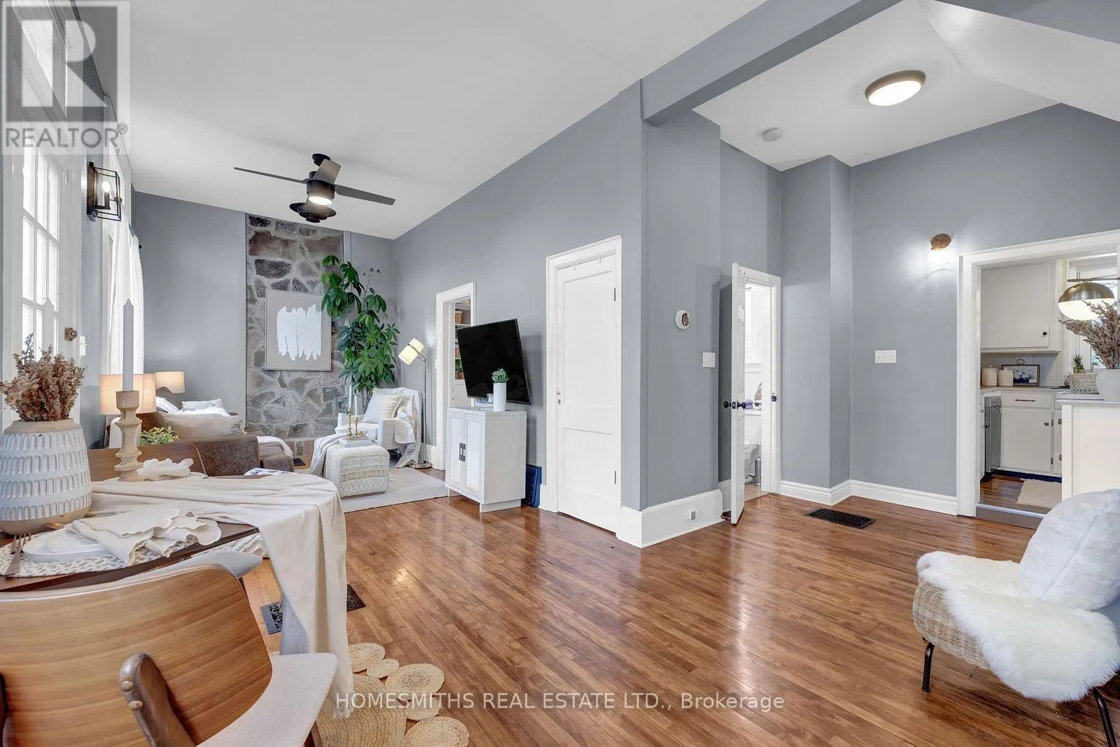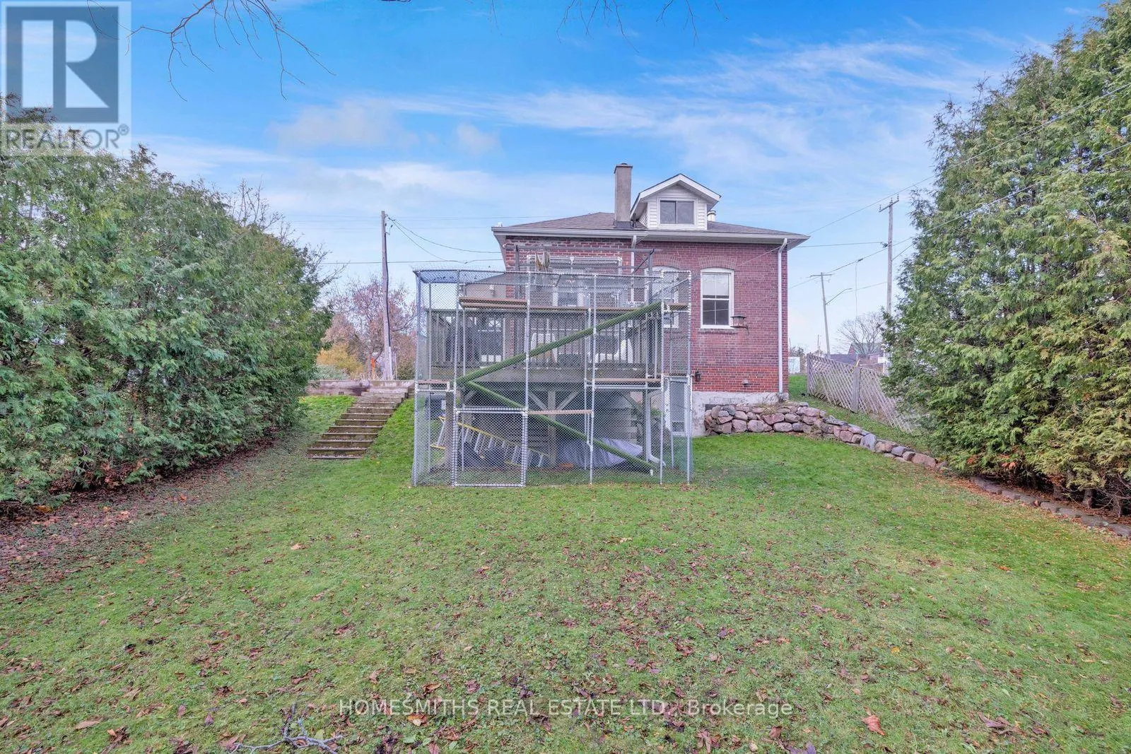 Cross Streets: Newtonville Rd & Hwy 2. ** Directions: Follow ON-401 Take exit 448 for Regional Rd 18/Newtonville Road toward Newtonville; Follow Newtonville Rd/Durham Regional Rd 18 to Durham Regional Hwy 2 & Turn left onto Hwy 2 and it is on the left. Have you ever heard the expression, "built like a bank"? 4497 Highway 2 Newtonville wasn't just built like a bank; it was literally built, AS a bank! This converted house, once the town's primary financial institution, maintains a commanding presence in Newtonville with its classical architecture, featuring an all-brick structure with four distinct brick masonry pillars. Originally built for the Standard Bank of Canada in 1927, the building later became a branch of the Canadian Imperial Bank of Commerce before eventually being converted into a private residence in 1939. Inside, the home artfully blends residential comfort with historic charm. The main living and dining area, previously the main banking hall, boasts 10-foot ceilings, huge windows that fill the space with natural light and original wood flooring. The main floor offers a convenient bedroom or home office with built in murphy bed and a full 4-piece bath with clawfoot tub. Stairs lead up to a huge primary loft bedroom with dormered office nook. The property features a high and dry walk-out basement with a laundry room and the original vault room ideal for future finished living space. Step outside to a beautiful, private hedged rear yard with mature trees and an elevated, south-facing deck, perfect for summer entertaining. This unique piece of history is located just 3 minutes from Highway 401 and under an hour from downtown Toronto. New roof 2025, Hi efficient gas furnace 2014, a/c 2018 and more. See Virtual tour Imagine owning a unique, fully detached piece of history for the price of a cookie-cutter condo? (id:27476)