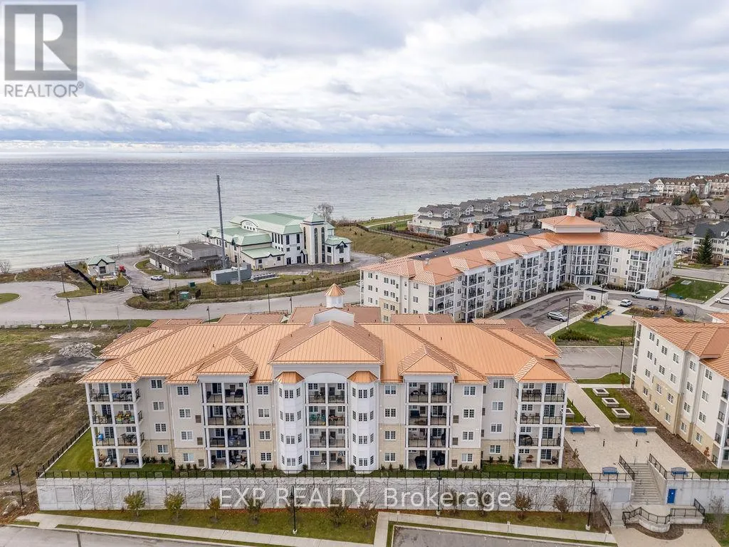 Cross Streets: Toronto St & Lakebreeze Dr. ** Directions: Go East on Lakebreeze Dr, then turn Left and head north on Shipway Ave. Step inside this thoughtfully designed condo and you're immediately welcomed by a bright, open living space that feels both comfortable and refined. The living room offers plenty of space to relax and flows seamlessly into the kitchen, where quartz countertops, rich cabinetry, and the crystal light fixture create a beautiful focal point. Just off the main hallway, the den/foyer offers a versatile bonus area, while the bedroom features its own 4-piece ensuite, a remote-controlled ceiling fan, and serene views. Every window in the unit looks out over the marina, giving you stunning sightlines of Lake Ontario and Bond Head right from your sofa. The balcony becomes a peaceful retreat-perfect for morning coffee, fresh air, and watching the boats come and go. With two full bathrooms, in-suite laundry, two parking spots, and a locker, the layout is designed for both comfort and convenience. Beyond the unit, the Port of Newcastle community shines with its friendly atmosphere, secured entrances, and exceptionally maintained buildings and grounds. Residents love the lakeshore walking trails, Wilmot Creek conservation paths, and the pet-friendly neighbourhood-ideal for anyone who enjoys nature, tranquillity, and a true sense of pride of ownership throughout the community. Maintenance Fees include a membership to the Admiral's Club whose amenities include: Oversized indoor pool, Lounge, Games room, Clubhouse facility, Preferred pricing on dining and marina services, Casual dining, Fishing, Marina, Boat slips, Hiking trails, Member beach area, and a Children's playground. Located just a few minutes from the 401 (id:27476)