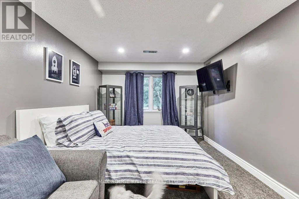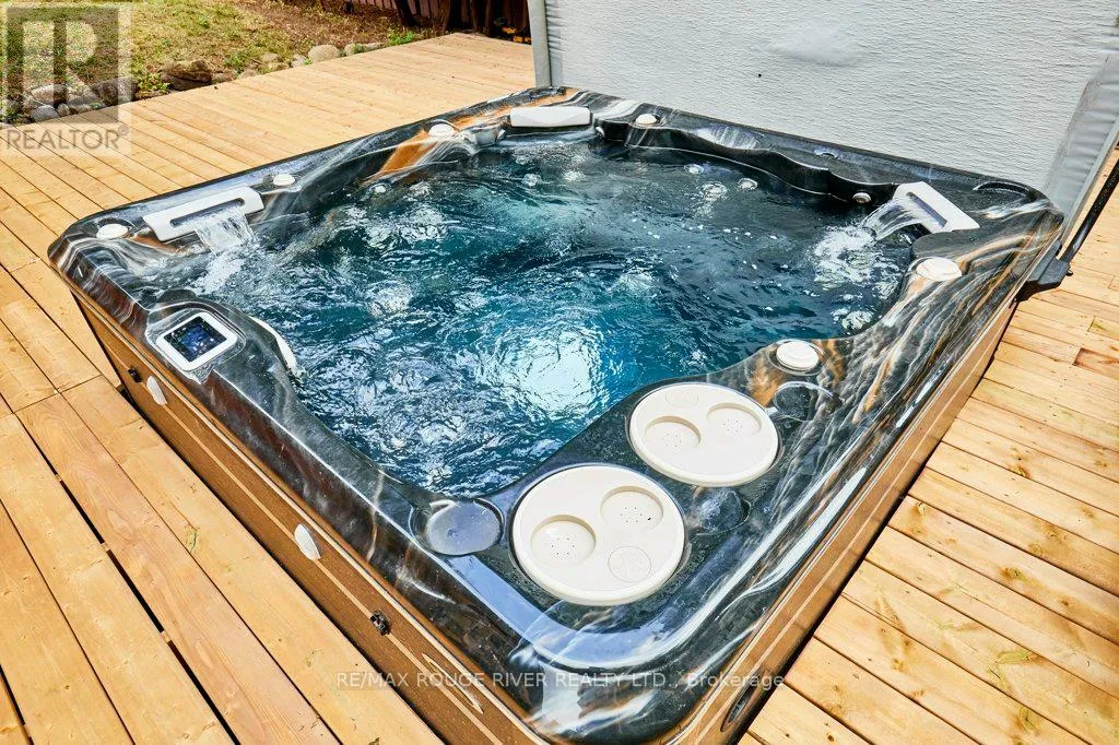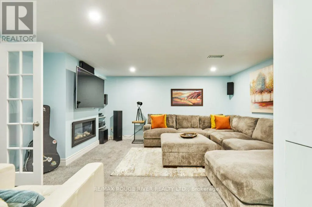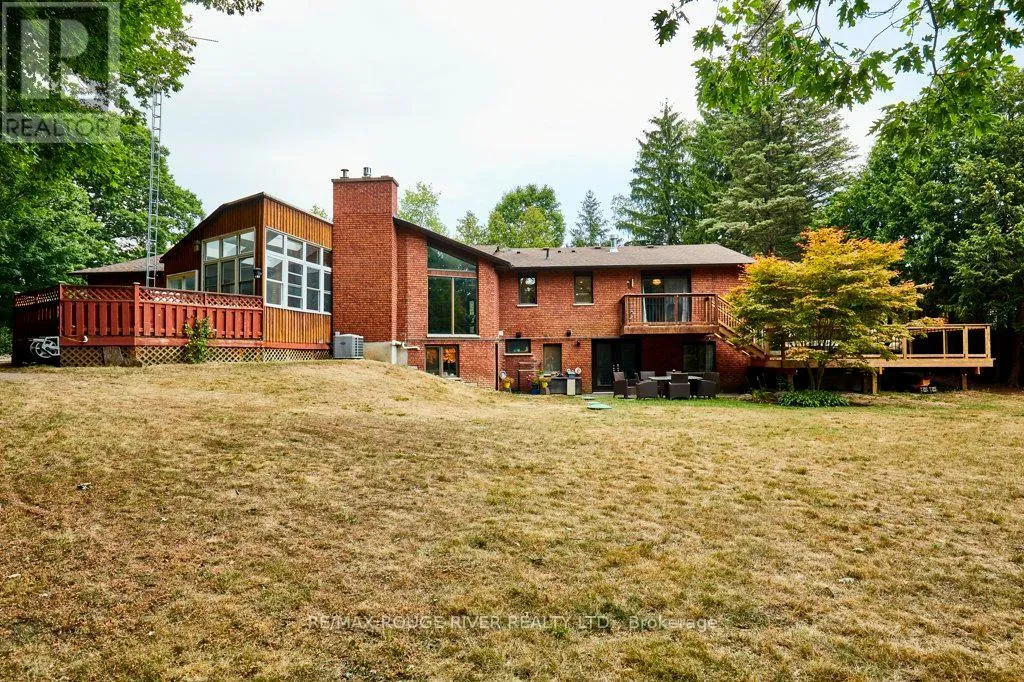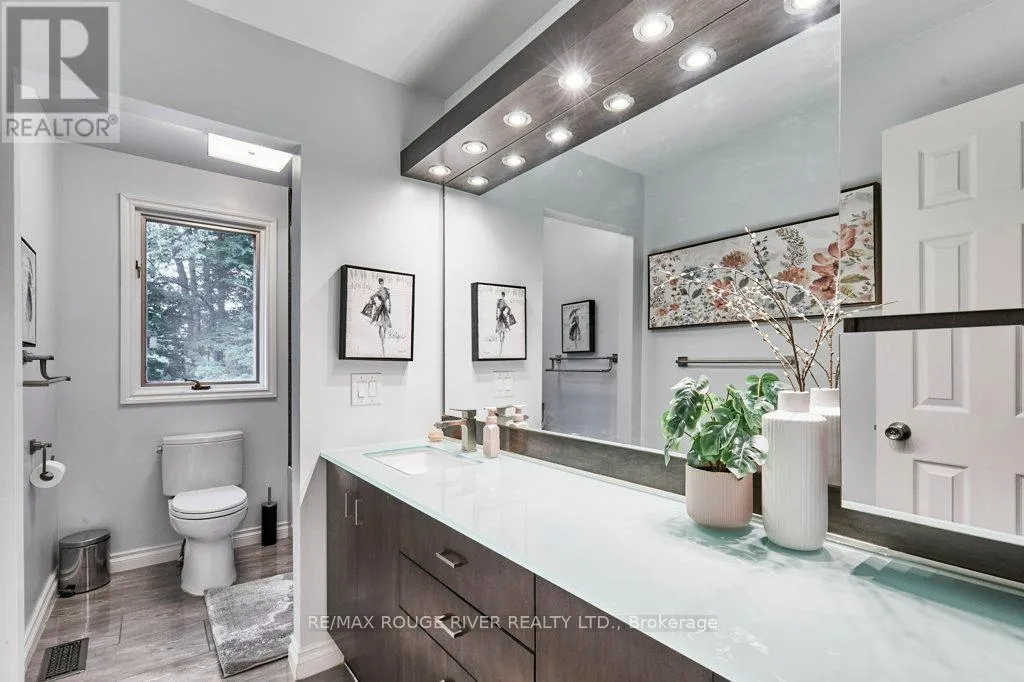 Cross Streets: King St (Hwy 2) and Townline. ** Directions: King St E to Varcoe; Varcoe north to Old Varcoe. A stunning oasis on 1.3 acres just steps from the Courtice retail & business corridor, backing on a beautiful, forested ravine. Spacious, custom built, brick bungalow with fully developed basement and almost 4500 sq ft of total living space. At the heart of the main floor is the open and expansive living room with vaulted ceilings and soaring gas fireplace, framed by oversize picture windows and the sunroom entry doors. The chef's kitchen overlooks the living room and features an impressive U-shaped island, European cabinets with granite counters, and premium appliances anchored by a JennAir 6-burner gas range. Meals are served either in the kitchen breakfast area (with its own built-in cabinets) or at the island counter; and, sometimes, in a private exquisite dining room, with room for everyone and bursting with character. A cosy family room overlooks the living room and there's also a huge pantry room adjacent to the kitchen with tons of built-in cabinets, shelves and drawers as well a contemporary upright freezer. The epic primary suite boasts a 5-piece ensuite bath, 2-sided gas fireplace and super-efficient PAX wardrobe systems. Walk out directly to the balcony, then down a few steps to the 8-seater Hydropool hot tub platform. Two more spacious bedrooms, full bath and a bright, airy sun room round out the main floor living space. The walkout basement has two sections: the south half is designed to complement the main floor space, with rec room/theatre, games room, exercise room with 3-piece bath, extra bedroom and office. The north half is a self-contained family suite with separate entrance, living room with fireplace, bedroom, kitchen, 3-piece bath and laundry. Oversize 2.5 garage with custom designer epoxy floor is nearly 600 sq ft with ample space for cars, toys and workshop or as a well-appointed man-cave. Exterior includes 10-car driveway; massive front verandah; storage building 10' by 20'; and a huge yard with gardens, walkways and tree buffers. (id:27476)