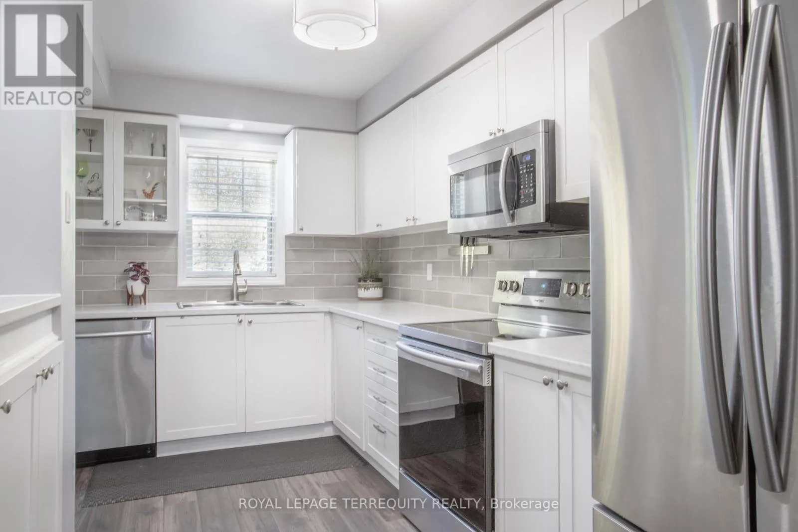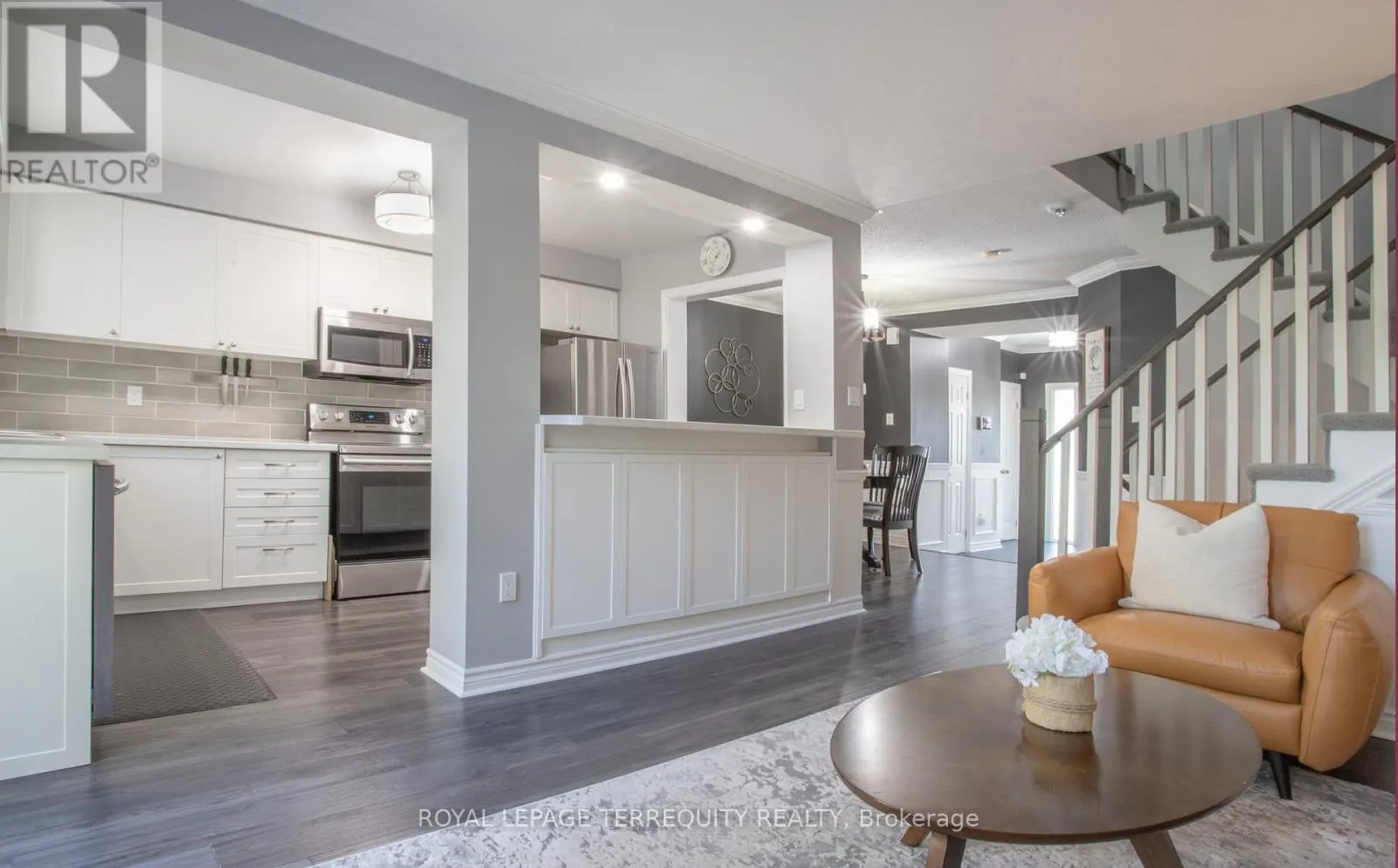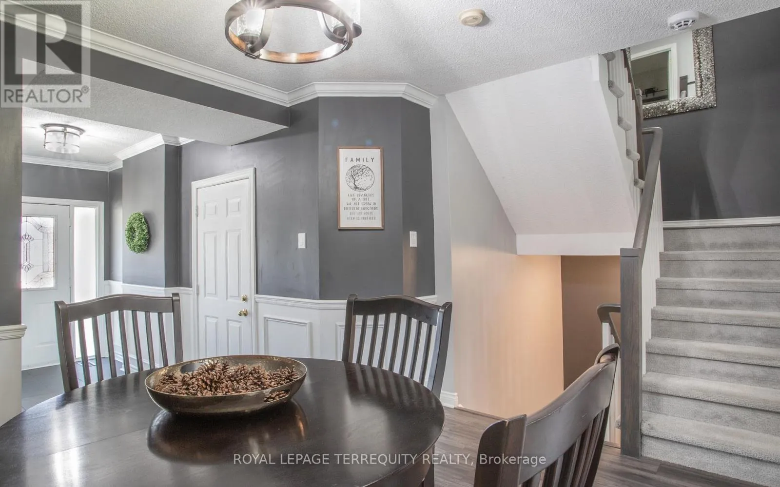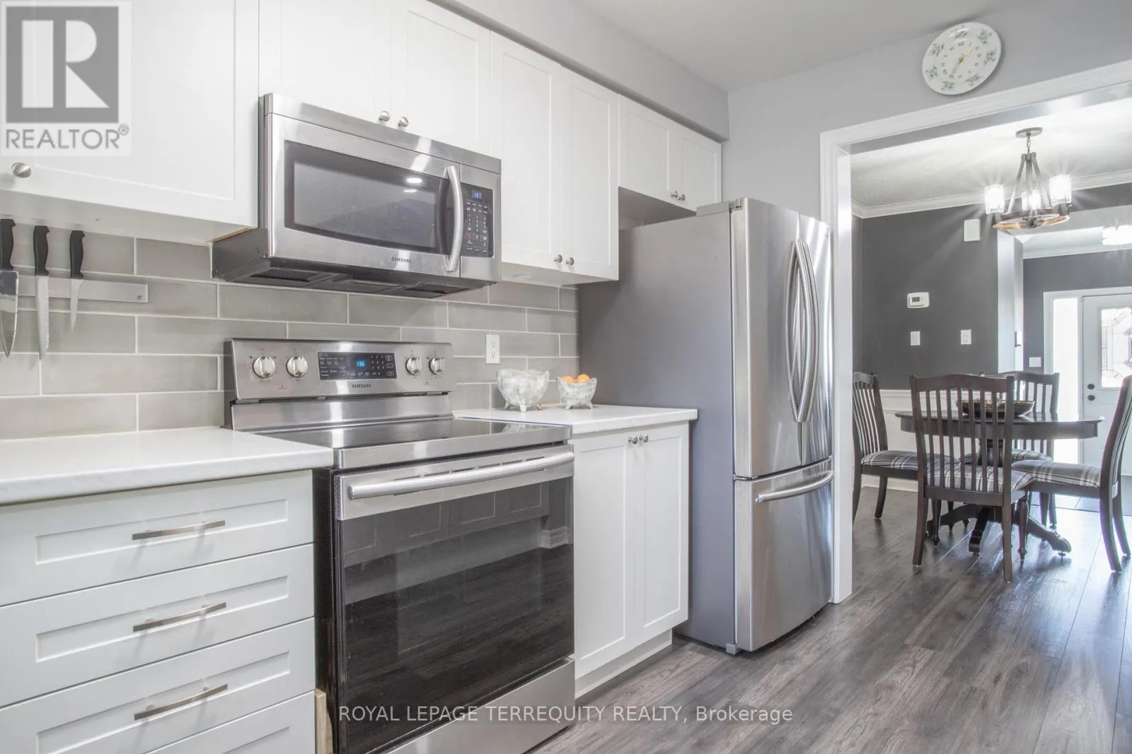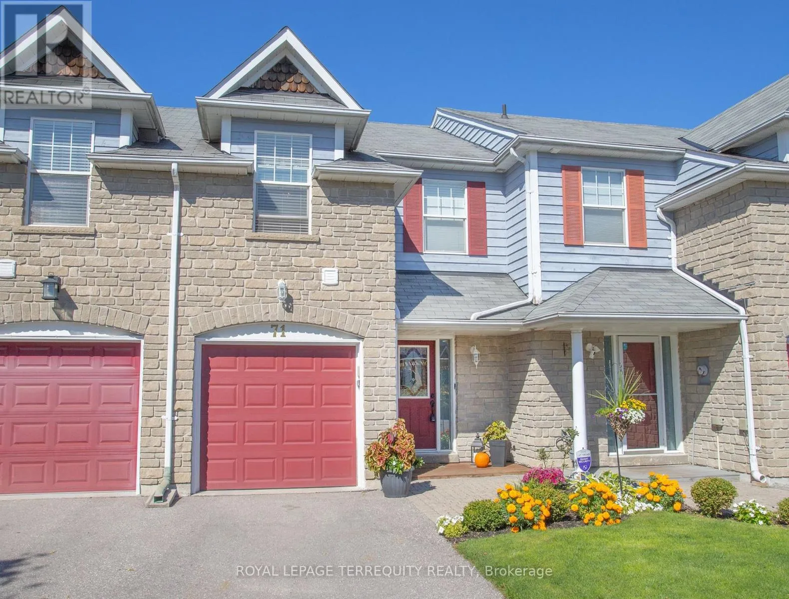 Hwy 2 & Courtice Rd Welcome to Unit 71 at 2800 Courtice Road, a beautifully maintained 2-storey condo townhouse in the highly desirable Nantucket Community. Perfectly situated at the end of the complex, this home enjoys extra privacy, a quiet setting, and less traffic, making it an ideal retreat. Inside, you're greeted by a spacious entry with inside access to the garage and a convenient two-piece bath. The main floor is filled with charm and character, showcasing elegant wainscotting, stylish crown moulding, and a modern kitchen with stainless steel appliances, a breakfast bar, and an open design perfect for both everyday living and entertaining. Upstairs, you'll find three generous bedrooms, including a primary retreat with a walk-in closet and a four-piece ensuite complete with a relaxing soaker tub. The finished basement adds valuable living space, ideal for a media room, home office, or playroom. Step outside to a new private deck and enjoy peaceful views of the ravine, with trails and conservation right at your doorstep. This phenomenal location is just steps from the Courtice Community Complex with its library, pool, and fitness facilities, and is close to schools, parks, shopping, and convenient access to the 401, 407, GO Transit, and public transportation. Bursting with style, upgrades, and comfort, this unit gem is move-in ready-don't miss this incredible opportunity! (id:27476)