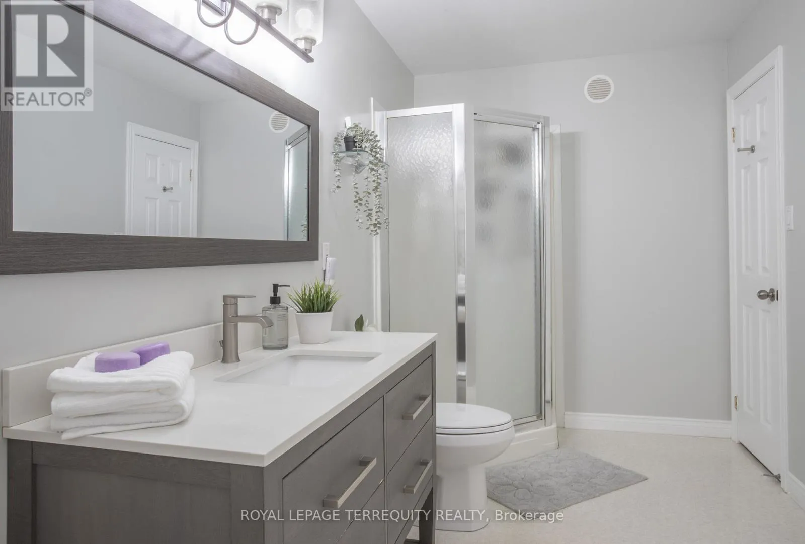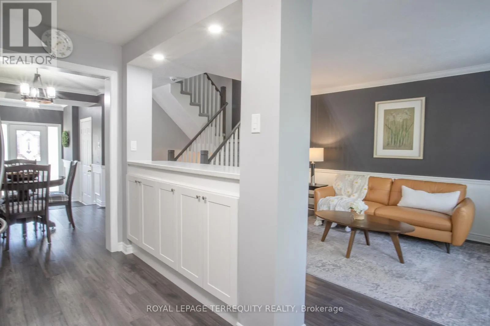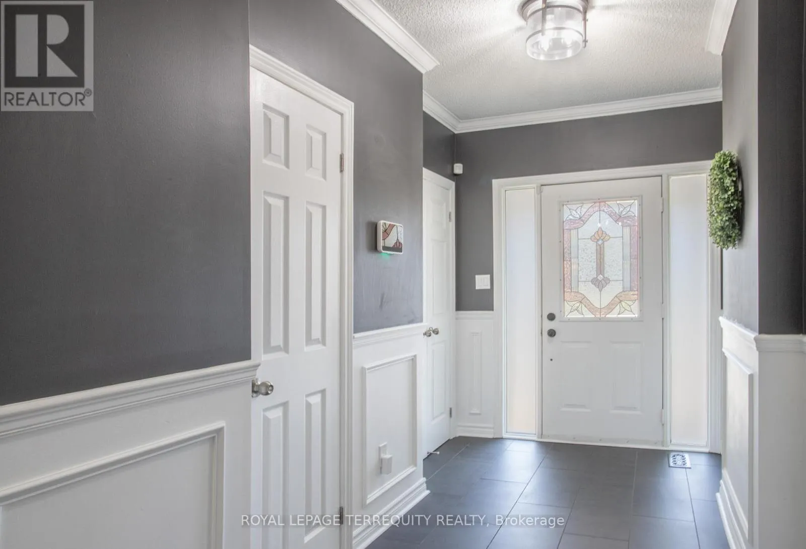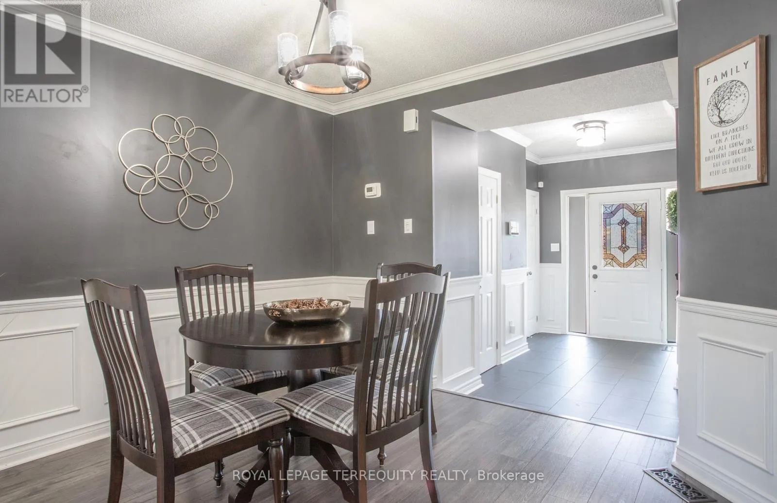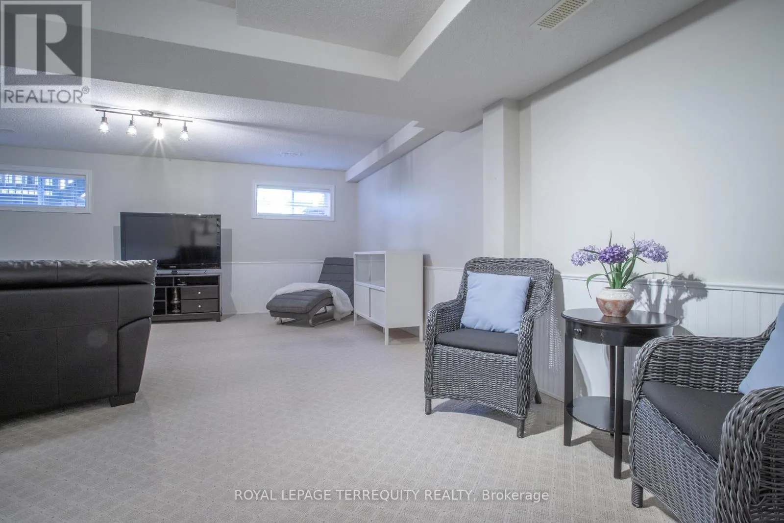 Hwy 2 & Courtice Rd Welcome to Unit 71 at 2800 Courtice Road, a beautifully maintained 2-storey condo townhouse in the highly desirable Nantucket Community. Perfectly situated at the end of the complex, this home enjoys extra privacy, a quiet setting, and less traffic, making it an ideal retreat. Inside, you're greeted by a spacious entry with inside access to the garage and a convenient two-piece bath. The main floor is filled with charm and character, showcasing elegant wainscotting, stylish crown moulding, and a modern kitchen with stainless steel appliances, a breakfast bar, and an open design perfect for both everyday living and entertaining. Upstairs, you'll find three generous bedrooms, including a primary retreat with a walk-in closet and a four-piece ensuite complete with a relaxing soaker tub. The finished basement adds valuable living space, ideal for a media room, home office, or playroom. Step outside to a new private deck and enjoy peaceful views of the ravine, with trails and conservation right at your doorstep. This phenomenal location is just steps from the Courtice Community Complex with its library, pool, and fitness facilities, and is close to schools, parks, shopping, and convenient access to the 401, 407, GO Transit, and public transportation. Bursting with style, upgrades, and comfort, this unit gem is move-in ready-don't miss this incredible opportunity! (id:27476)