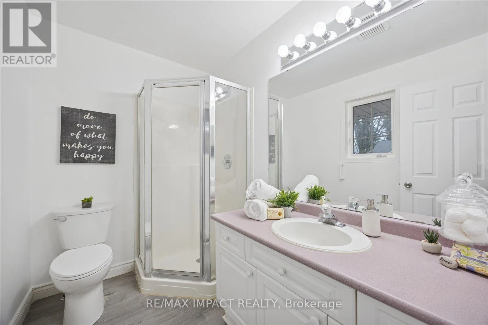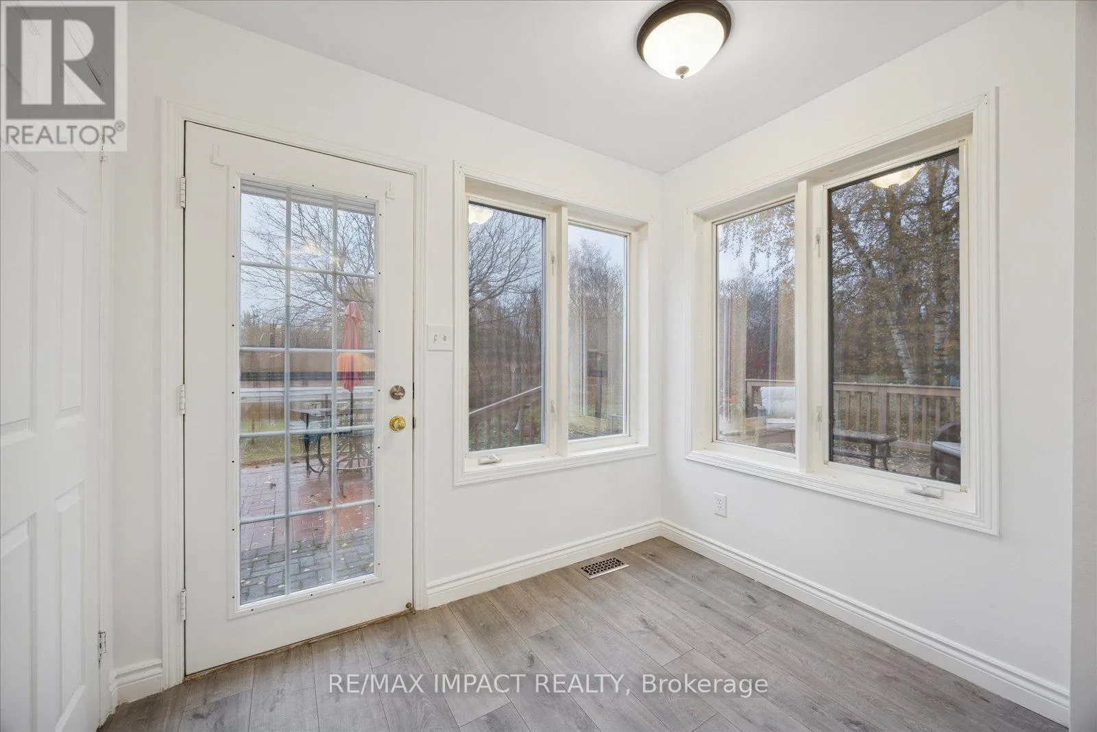 Wilmot Trail & Fairway Drive Experience the relaxed, adult lifestyle community of Wilmot Creek! This beautiful bungalow backs directly onto the peaceful Samuel Wilmot Nature Area, providing privacy and gorgeous natural views all year round! The combined living room/dining room features a cozy gas fireplace, a vaulted ceiling and large window that add to the bright living space, and a walkout to a good sized deck with a retractable awning. Large eat-in kitchen with loads of cupboards and counter space, a pantry, a convenient laundry, and a door leading out to your private yard and beautiful view. Two bedrooms and two washrooms on the main level; the finished lower level includes a rec room, office, huge storage area and a third bedroom and washroom that are perfect for your guests. Your single car garage offers direct access to the front foyer. The land lease fee includes full use of the community amenities including a golf course, two heated pools, sauna, gym, billiards, library, shuffle board, hair salon, pharmacy, woodworking shop, hot tub, lakefront trails and much more. Clubhouse with loads of organized events! A fantastic opportunity in this welcoming community! (id:27476)