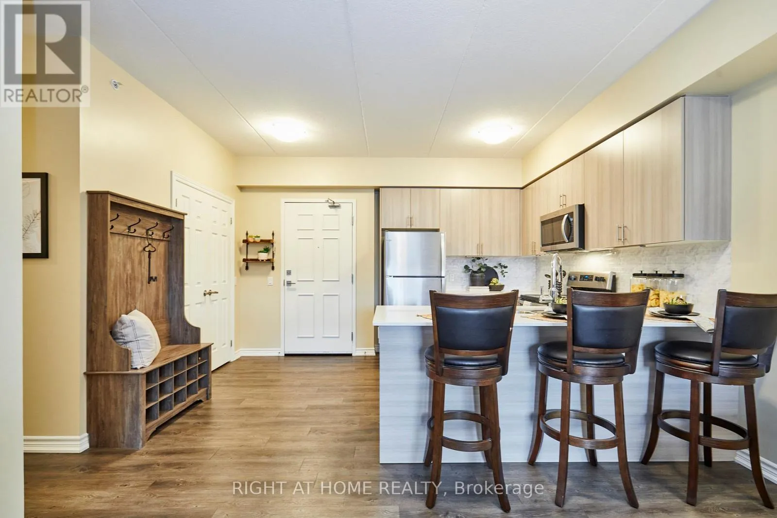 Cross Streets: Liberty St. N. / Longworth Ave. ** Directions: North of Longworth Ave. on West Side of Liberty St. N. Experience Modern Condo Living in the Heart of Bowmanville at Madison Lane. Welcome to this beautifully appointed 2 Bedroom, 2 Bath "Liberty" Model offering over 1,000 sq. ft. of thoughtfully designed indoor/outdoor living space. From the moment you enter, the suite feels bright, open, & inviting - thanks to its 9 foot ceilings. The upgraded gourmet kitchen sets the tone with quartz countertops, stainless steel appliances and a functional breakfast bar. The open-concept living and dining area is ideal for both everyday comfort & entertaining, featuring wide-plank laminate floors and a walk-out to your private balcony - perfect for morning coffee or relaxed evenings outdoors. Large windows throughout the suite fill the space with natural light. The primary bedroom provides a peaceful retreat with a generous closet & a stylish 4-pc ensuite bath complete with quartz counters & a deep soaker tub. The second bedroom offers flexibility for guests or a home office. A modern 3-pc bath with stand-up shower adds convenience for daily living. Additional features include full-size in-suite laundry and a coveted oversized utility/storage closet within the unit - excellent for keeping things organized. Parking is effortless with two included parking spots. Madison Lane is known for its quiet, well-maintained environment, secure key-fob entry, & welcoming community feel. Residents enjoy access to a fully equipped fitness centre, a spacious party room, & two elevators for easy mobility. All of life's essentials are just steps away - schools, parks, transit, shops, & restaurants. Minutes from downtown Bowmanville and offering quick access to Highways 401, 407, and 115, this location is ideal for commuters & local lifestyle seekers alike. This move-in-ready suite delivers comfort, style, & low-maintenance living in a highly desirable neighbourhood - an excellent opportunity for first-time buyers, professionals, and downsizers looking for a turnkey condo to call home. (id:27476)