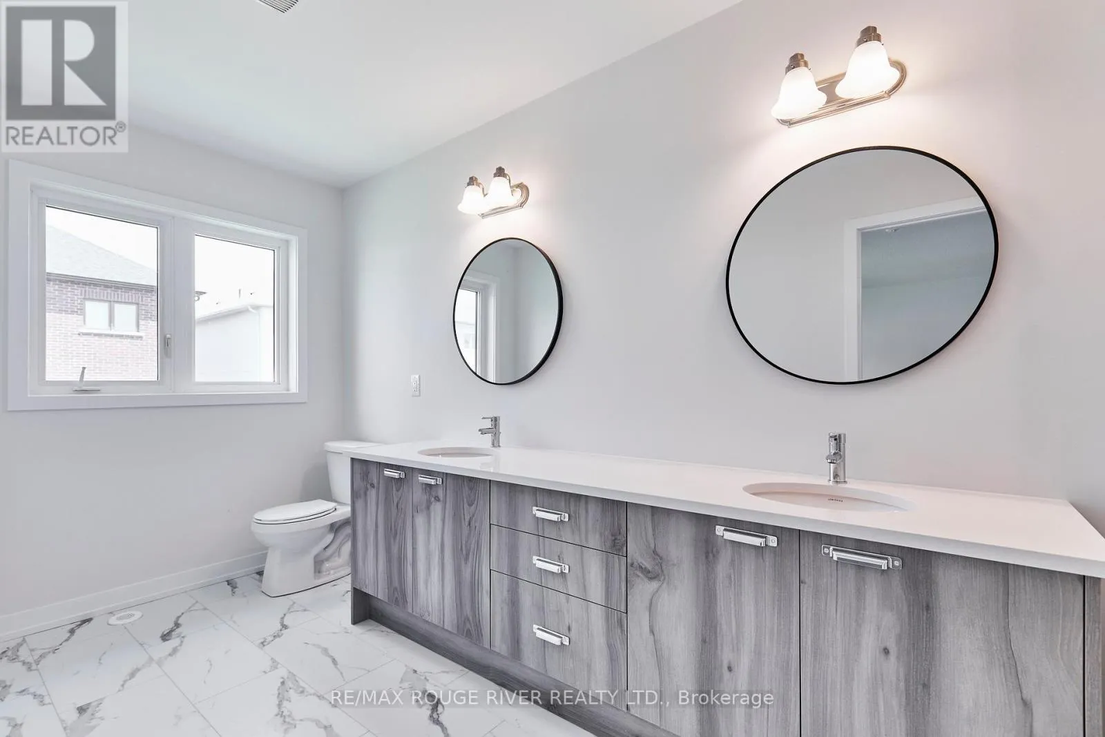 Rudell Rd & King St E/Hwy 2 Fabulous layout with separate entrance to basement apartment from front foyer! Whether you're a 1st time buyer looking to off-set your mortgage payments with rental income, or have a family member who prefers their private space, or you're a savvy investor, this is the property for you! Move in ready & comes complete with 2 kitchens, 2 stainless steel appliance packages, 2 laundry rooms. Separate gas meters, hydro meters, electrical panels, programable thermostats & doorbells. Enjoy smooth 9 foot ceilings, over sized windows, high end vinyl flooring, quartz counter tops & frameless shower doors throughout. Walk in closets in every bedroom. Walk in shower & double vanity in ensuite. Gas line BBQ hook up on back deck. Great location near 401, 35/115 & GO Station car pool lot for easy commuting. Minutes to rec centre, skatepark, marina & lake. 7 year Tarion Warranty. Freehold townhome - no condo fees! 1st time buyers may be eligible for HST rebate of 13%!! *Furnished photos are of model unit* (id:27476)