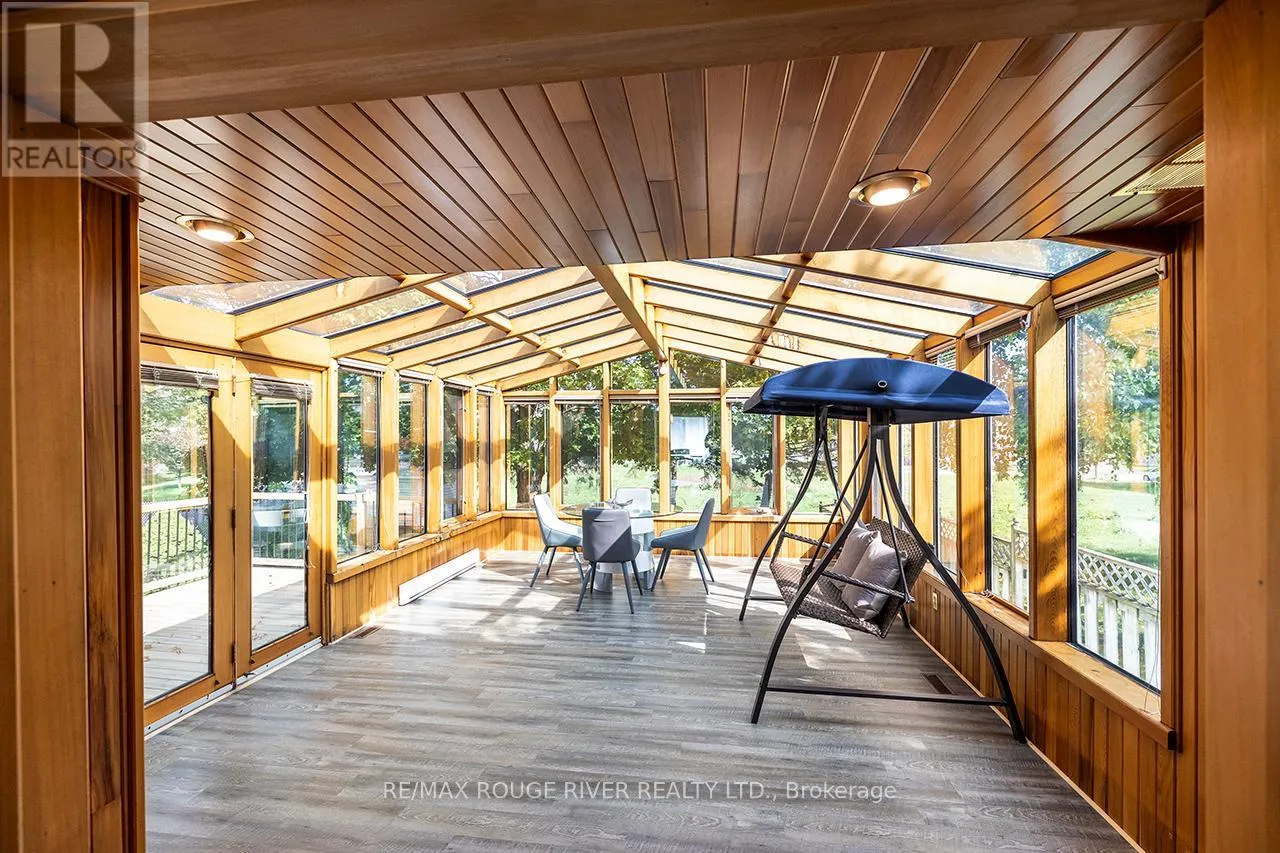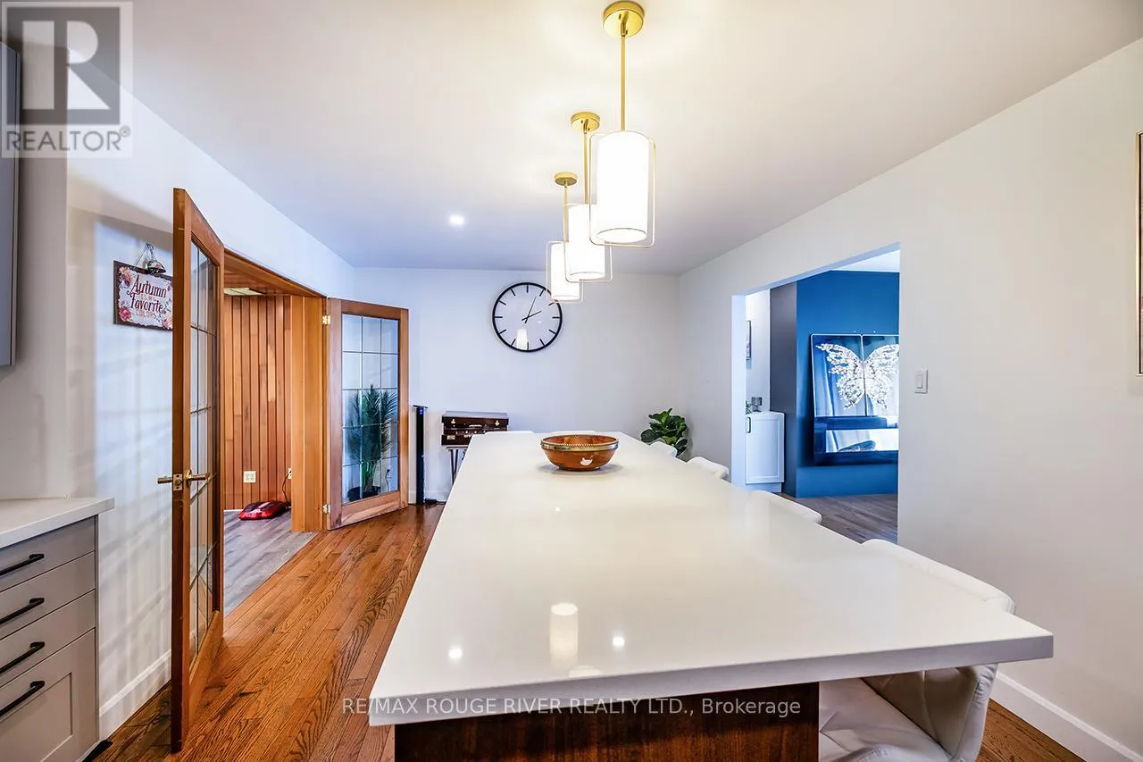 Liberty & Longworth Welcome to this beautifully maintained 3-bedroom, 2-bath, 4-level side split home in the heart of Bowmanville! Move-in ready gem features rich hardwood floors, an updated modern kitchen complete with a huge center island perfect for cooking, entertaining, and gathering with loved ones. Features a sun-drenched, show-stopping sunroom that invites you to unwind with your morning coffee, enjoy stargazing nights, or relax on a lazy Sunday afternoon. Whether you're hosting guests or seeking peaceful solitude, this space offers the perfect backdrop. A separate entrance leads directly to the lowest level, & layout offers amazing potential for a private suite, private workspace/office area. The home boasts ample parking, including a single-car garage and extra-wide driveway. Clean, bright, and cared for with pride of ownership throughout, this home is ready for you to move in and enjoy. Situated in a quiet, family-friendly neighborhood, you'll love the proximity to top-rated schools, parks, shops, and quick commuter access. Don't miss your chance to own this versatile and stylish home in one of Clarington's most sought-after communities! (id:27476)