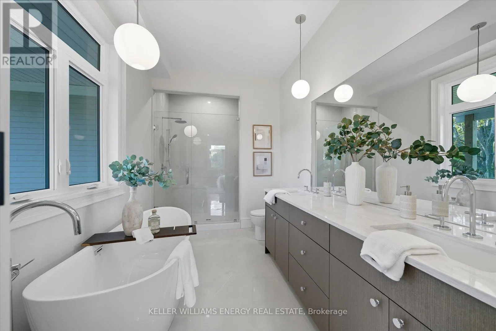 Cross Streets: Mill St S/Boulton St. ** Directions: South on Mill St, home islocated on the left hand side just before Boulton St. Wake up to Lake Ontario views and step across the street to Bond Head Beach, Marina, Pier, and private boat launch. This one-of-a-kind custom-built residence offers a rare blend of refined luxury and relaxed lakeside living in the historic Bond Head community. Soaring 10' main-floor ceilings and a dramatic 20' great room create an immediate sense of scale and light. The open-concept kitchen features a servery and walk-out to a wraparound deck-perfect for entertaining or quiet mornings by the water. The main-floor primary suite is a private retreat, complete with walk-in closet, spa-inspired ensuite, walk-out access, and serene lake views. Upstairs, a stylish sitting lounge with built-in minibar opens to a rooftop terrace offering unparalleled panoramic views of Lake Ontario. An oversized, private backyard provides approximately 2,000 sq ft of outdoor living space, including a covered entertainer's deck. Additional highlights include main-floor laundry, abundant storage, and two attached garages (one with carport). A rare opportunity to own a truly exceptional home in one of Newcastle's most coveted waterfront locations. (id:27476)