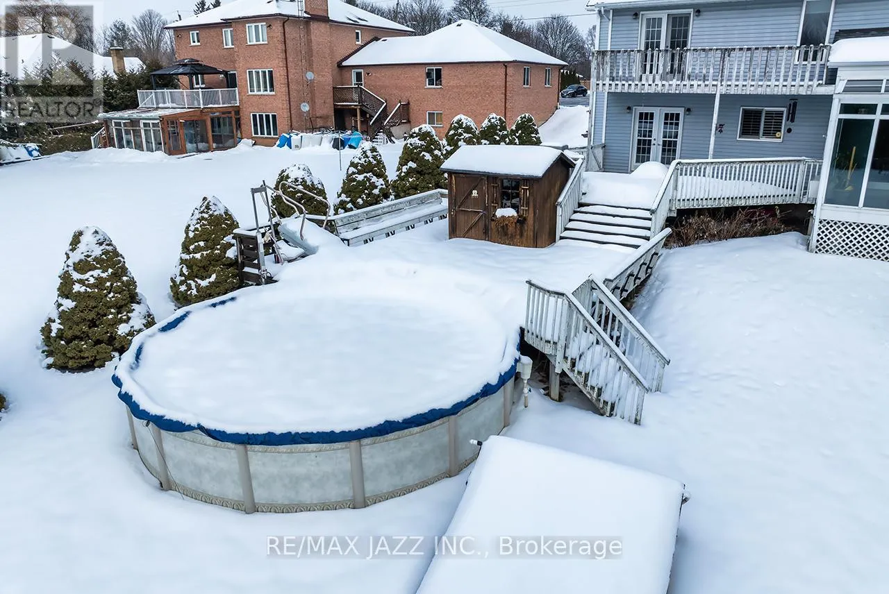 Cross Streets: Taunton Rd & Trulls Rd. ** Directions: Trulls Rd north of Pebblestone Rd, south of Taunton. Thoughtfully designed for fully accessible living, this fabulous Mitchell Corners custom built home includes a full elevator, ramps, electronic entry door & a beautifully designed barrier-free ensuite. Nestled on a park like lot of 3/4 acres with sweeping lawns, full grown trees & idyllic privacy, this gorgeous open concept home offers a spacious floor plan of 2,882 sqft above grade, plus a sensational 4-season sunroom addition that overlooks the expansive rear yard. It's just magical! Numerous updates abound, including shingles ('15), furnace & A/C ('20), HRV/HEPA system ('21), sunroom ('09), fantastic ensuite ('20) featuring a jet tub, curbless shower, & double vanity, & a spectacular custom W/I closet fit for any fashion queen! The voluminous sunken living room features California shutters, hardwood floors, vaulted ceilings, & a gas fireplace, all overlooked by a spacious formal dining room with W/O to the sunroom. A convenient main floor office offers added functionality. The large kitchen & family room combination boasts a wood-burning fireplace, large island, eating area, & W/O to extensive decking & a 21ft aboveground pool. A handy powder room & main floor laundry with direct garage access complete the main level. Upstairs, the primary suite boasts engineered hardwood, W/O to balcony, elevator access, diva-worthy W/I with a plethora of custom shelves & cabinets, & 5-pc accessible ensuite with skylight. Two additional bedrooms are serviced by an updated 4-pc bath. The full, unspoiled basement with 2-pc rough-in offers wonderful potential to tailor the space to your needs. Serene & private, the entire lot boasts bountiful mature trees & gardens, a solar-heated aboveground pool (10 years old), & two garden sheds. Additional features include a generous double garage & driveway parking for 12 cars! Country but close, Mitchell Corners is a highly sought after community at Taunton & Trulls roads, offering close proximity to every conceivable amenity plus the 407! (id:27476)