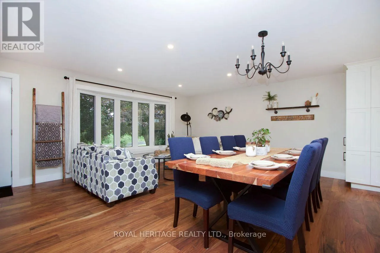 Cross Streets: Concession Rd 3 & Darlington Clarke Townline Rd. ** Directions: North of Algoma Orchards. Step into this fully updated bungalow where modern comfort meets peaceful country living. The bright, open-concept main floor welcomes you with sun-filled living and dining spaces, all tied together by new hardwood flooring. The chef's kitchen is the heart of the home, featuring an oversized island, abundant quartz counter space, and generous storage - perfect for everyday living and entertaining.The spacious primary suite offers a relaxing retreat with a stylish feature wall and custom closets in two of the three bedrooms. A beautifully renovated 4-piece bathroom completes the main floor.The lower level expands your living space with a warm and inviting great room, complete with a propane fireplace and built-in surround sound. You'll also find a dedicated laundry room and plenty of storage. A major bonus is the separate in-law suite, complete with its own entrance, laundry hook-up, brand-new 3-piece bathroom, and flexible bachelor layout. Create a private suite, ideal for extended family, guests, or rental potential. Outside, enjoy the best of country living on a private lot featuring a custom play area, in-ground trampoline, and a powered 12x24 shed. The attached two-car garage is fully insulated and ready for year-round use. A rare opportunity to enjoy country living just minutes from every amenity, including easy access to the 115, 401 and 407, giving you the perfect blend of convenience and tranquility. With countless updates - roof (2019), 200-amp service (2019), furnace (2021), hot water tank (2018), kitchen (2021), upstairs bath (2021), lower-level fireplace (2023), and lower-level bath (2025) - this home offers turnkey peace of mind for years to come. (id:27476)