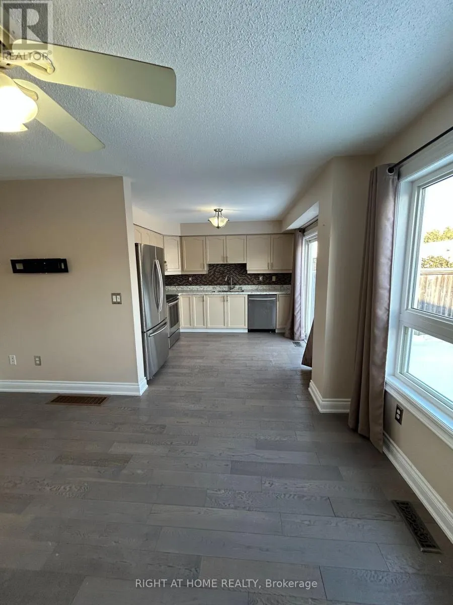 Cross Streets: Liberty and Bons. ** Directions: Bons/Liberty. This bright and spacious 3-bedroom home is perfectly situated in a highly desirable family-friendly neighborhood, just minutes from schools, parks, and shopping. Step inside to an airy main floor featuring 9-foot ceilings and abundant natural light throughout. The modern kitchen is equipped with stainless steel appliances including a fridge, stove, and dishwasher. Upstairs, the primary bedroom offers a walk-in closet and access to a semi-ensuite bathroom, while two additional bedrooms feature large windows and generous closet space, making them ideal for family, guests, or a home office. The finished basement adds valuable extra living space for recreation, work, or relaxation. Enjoy outdoor living in the fenced backyard, complete with a garden shed, perfect for storage or gardening enthusiasts. Blinds and window coverings are included, offering comfort and privacy. This home combines style, space, and functionality in a fantastic location - move-in ready and waiting for you! ** This is a linked property.** (id:27476)