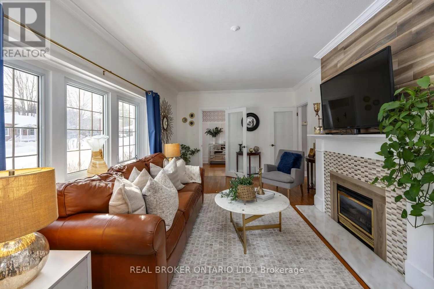 Cross Streets: Concession St/Liberty St N. ** Directions: Exit Hwy 401 at Liberty St N and head north. Follow to Concession St W and turn west. House is on the north side of street. Set on almost, half an acre, in the heart of historic Bowmanville, this character-filled home offers space, charm, and exceptional versatility. A large driveway provides ample parking. The walkable location puts Bowmanville's downtown shops, dining, and amenities nearby. Easy access to Hwy 401/407 for commuters. The home showcases beautiful period details including vintage door knobs, wide trim, crown moulding, and timeless craftsmanship throughout. The updated kitchen blends classic appeal with modern convenience, featuring tile flooring, pot lighting, quartz counters, built-in appliances, and abundant cabinetry. The spacious living room is warm and inviting with hardwood flooring, wide trim, crown moulding, a gas fireplace with an accent wall, French doors, and multiple windows that flood the space with natural light. A separate formal dining room with hardwood floors and built-in shelving is ideal for gatherings, anchored by a large picture window overlooking the expansive backyard. The main home offers five bedrooms, including two on the main floor, perfect for a home office or guest space, and three upstairs. The primary bedroom features his and hers closets and a walk-out to a balcony. Additional living space includes a basement rec room with tile flooring and pot lighting, an exercise room, 2-piece bath, and generous storage. Plus there is a loft area, ideal as a teen retreat or a bonus hangout. A large mudroom, attached two-car garage, and a thoughtfully designed layout adds everyday functionality. Completing this rare offering is a separate, SECOND living quarters with its own kitchen, living rm, two bedrooms, and two 4-piece baths, ideal for in-laws or income potential. A truly unique opportunity to live in one of Bowmanville's most desirable historic settings. (id:27476)