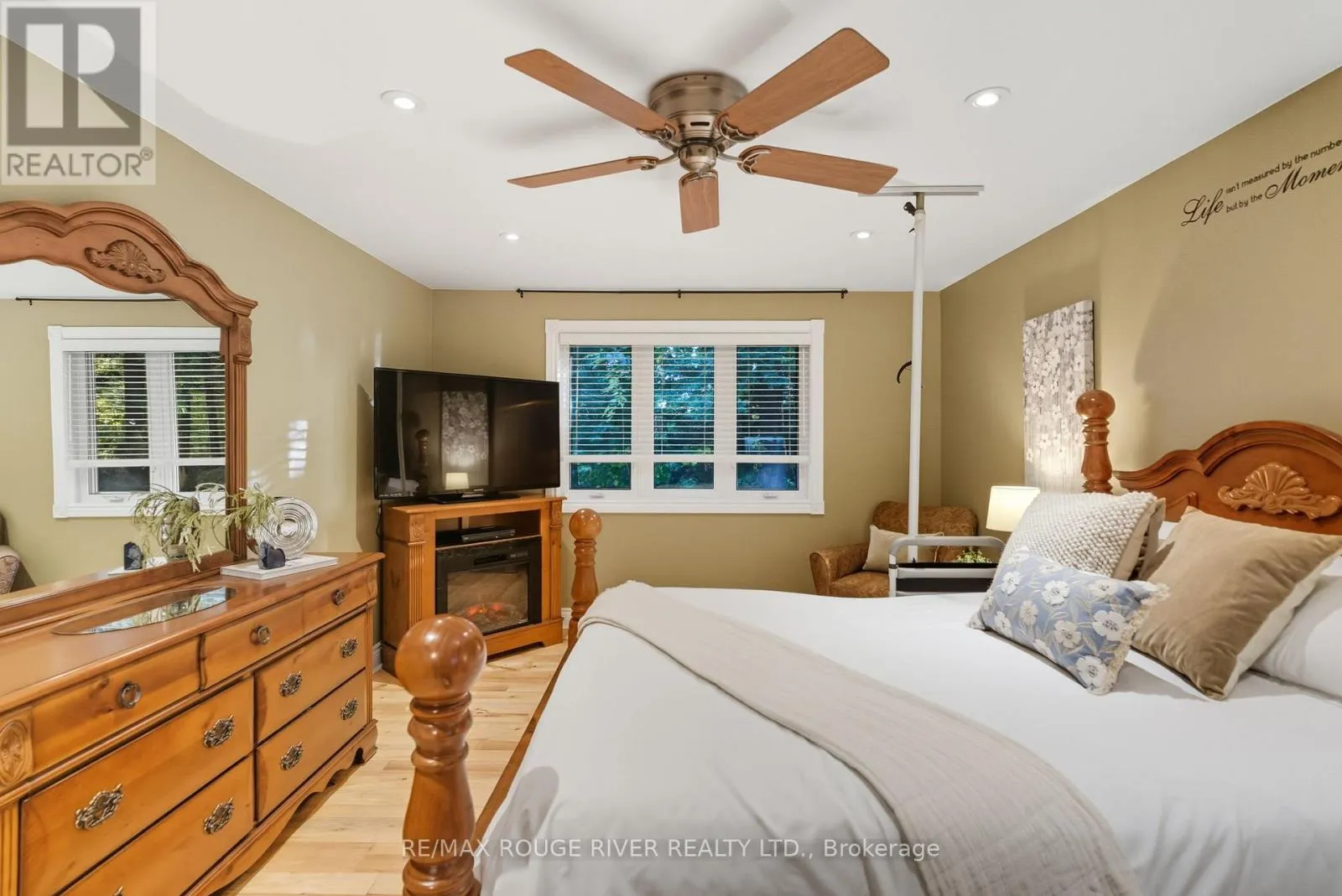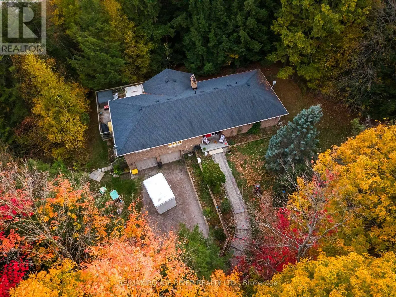 Cross Streets: Ganaraska/Reg. Rd. 9. ** Directions: Between Langstaff/Shiloh Rd and Soper Rd. Welcome to your own private 4.69-acre hobby farm retreat! This custom-built bungalow offers an exceptional lifestyle surrounded by mature trees and breathtaking ravine views, an enchanting woodland setting that feels like a true getaway while still close to modern amenities. Step inside through the grand double door entryway to discover an open-concept layout showcasing rich hardwood floors, vaulted pine ceilings, and wall-to-wall windows that flood the home with natural light. The stunning great room features a floor-to-ceiling brick fireplace and a walkout to a large wraparound deck with a hot tub, overlooking total privacy and serene natural beauty. The formal dining room also opens to the deck, creating the perfect flow for indoor-outdoor entertaining. The massive eat-in kitchen is a chef's dream, boasting custom cabinetry, a wall pantry, stainless steel appliances, and pot lights, with a bright breakfast area framed by large windows and scenic views. The primary bedroom offers a semi-ensuite bath, walk-in closet, and warm hardwood flooring, while the second bedroom provides ample space and sunlight. The lower level extends the living space with a bright family room, additional bedrooms, a full bathroom and a walkout to a wraparound patio, ideal for guests or multi-generational living. Equipped with a UV water treatment system, ensuring clean, safe water. Outside, discover a nature lover's paradise, walking trails, a maple syrup sugar shack with 40 maple trees, a fenced dog run, and a massive garden ready for your green thumb. You'll find apple, pear, and cherry trees, strawberries, raspberries, and wine grapes, and perennials that return year after year, attracting local wildlife and offering an ever-changing landscape through the seasons. Whether you're relaxing in the hot tub, making your own maple syrup, or simply soaking in the peaceful sounds of nature, this idyllic hobby farm delivers the perfect blend of comfort, character, and countryside charm! (id:27476)