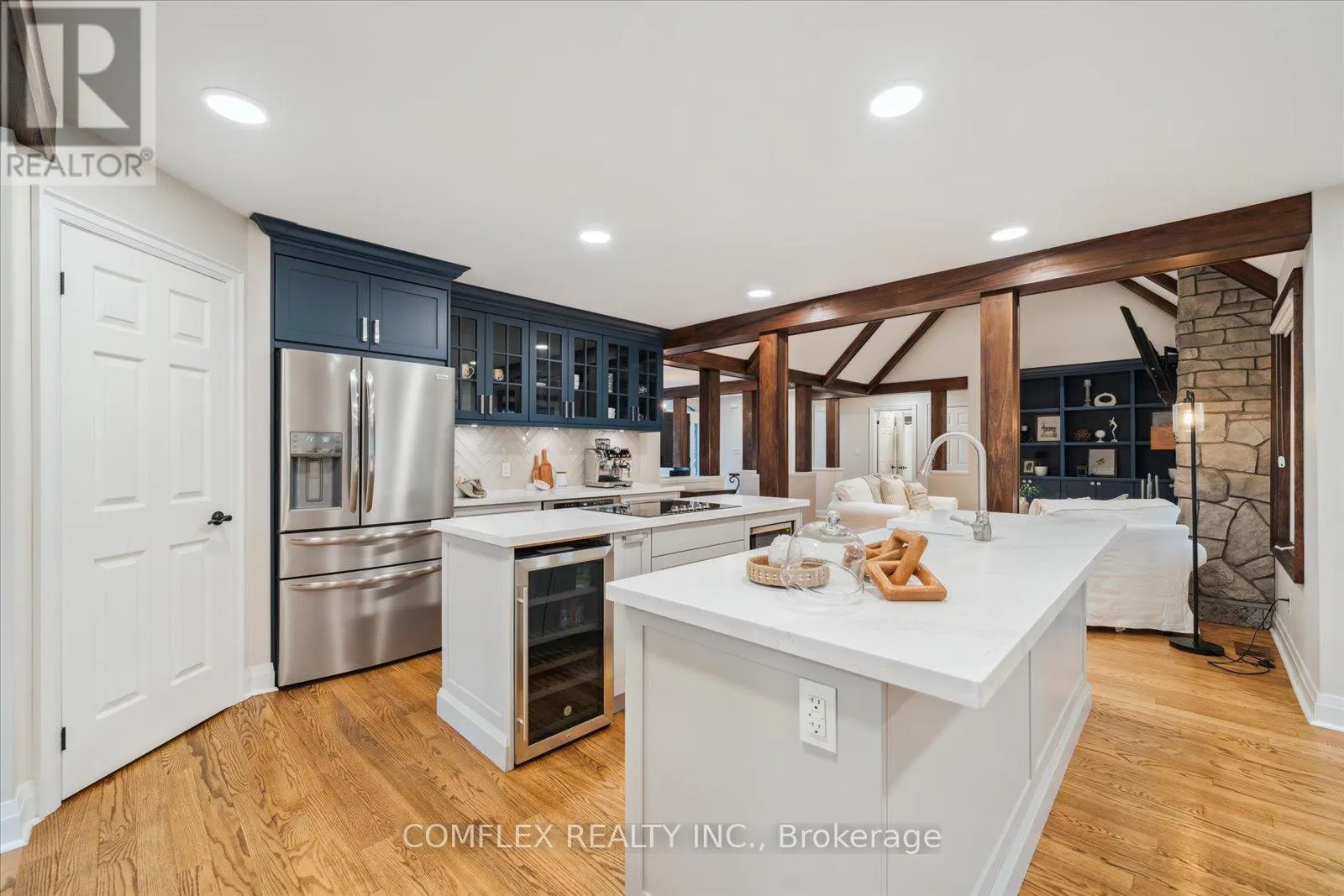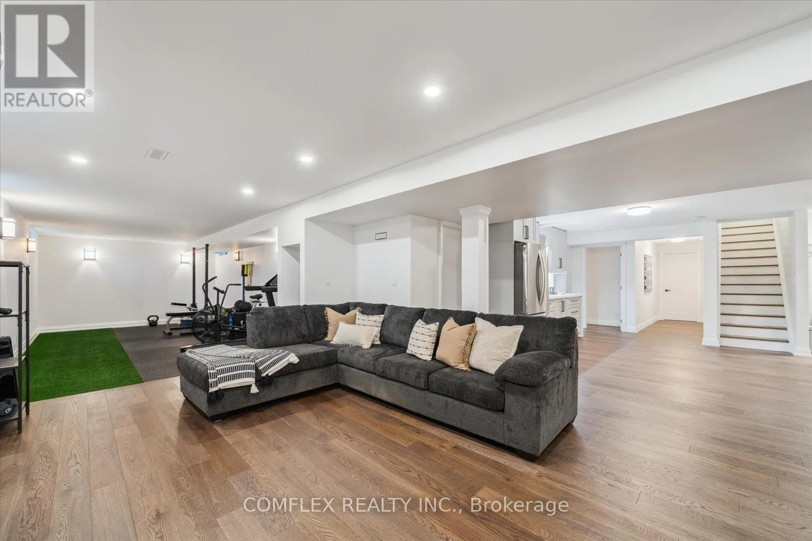 Cross Streets: On corner of Old Scugog Road and Taunus Court. First driveway on the left. ** Directions: Bowmanville Ave North, Left Onto Old Scugog Rd. Gorgeous Custom Bungaloft on 1.16 Acres in Prestigious Bowmanville Neighbourhood. Welcome to this exceptional, custom-built bungaloft, located on a court and serviced by natural gas. From the moment you arrive, the attention to detail is unmistakable. The exterior showcases timeless craftsmanship with custom stonework, copper accents, marble sills, and soaring rooflines that combine to create stunning curb appeal. Step inside to discover a bright and airy open-concept layout that perfectly balances elegance with comfort. The main living space features solid hardwood floors, recessed lighting, and a great room with cathedral ceiling and nat gas fireplace. The freshly renovated gourmet kitchen is a true centerpiece, complete with full-height glass cabinetry, Corian countertops, walk-in pantry, and stainless steel appliances. A sunny breakfast area opens to a charming sunroom, ideal for your morning coffee or a quiet retreat. Main floor also includes a beautifully updated laundry/mudroom and well-appointed bedrooms, each offering private or shared access to ensuite bathrooms for optimal convenience. Upstairs, the spacious loft is a standout feature, offering endless flexibility. With vaulted 10-foot ceilings, a skylight, gleaming hardwood floors, natural gas fireplace, and its own 3-piece ensuite. This large space is perfect as a family room, home office, or private in-law suite! Property offers ample space for children to play, room to build a shop or pool, gardening, or simply enjoying the outdoors. The covered patio provides a perfect spot for year-round entertaining. Freshly finished basement adds custom glass office, Wet bar, Engineered hardwood flooring, huge bedroom, and fitness space. Located just minutes from Bowmanville's vibrant urban center, two golf courses, and the Bowmanville Valley Conservation Area, this home offers the ideal balance of serenity and accessibility. Quick access to Highways 401 and 407/418. Roof 2018, Furnaces 2016, A/C 2019. (id:27476)