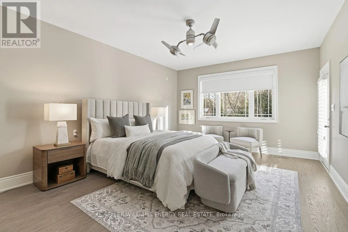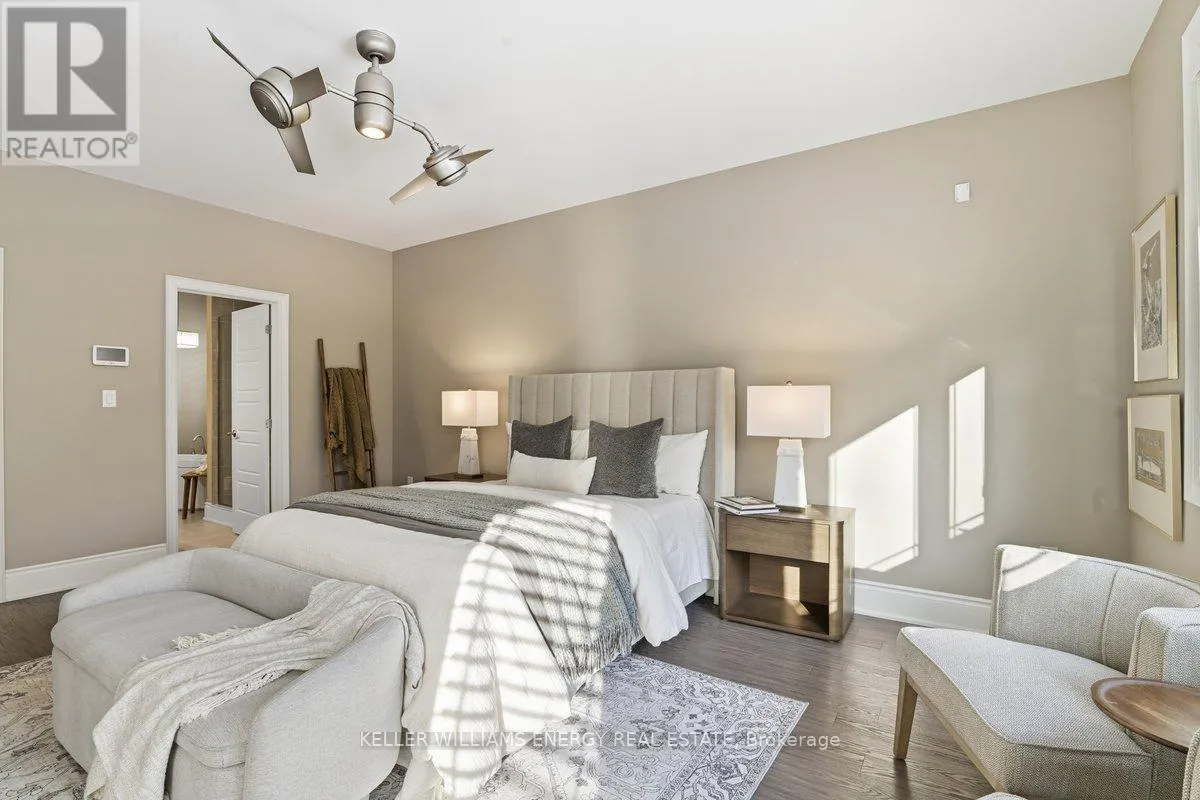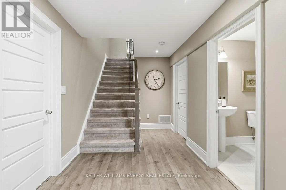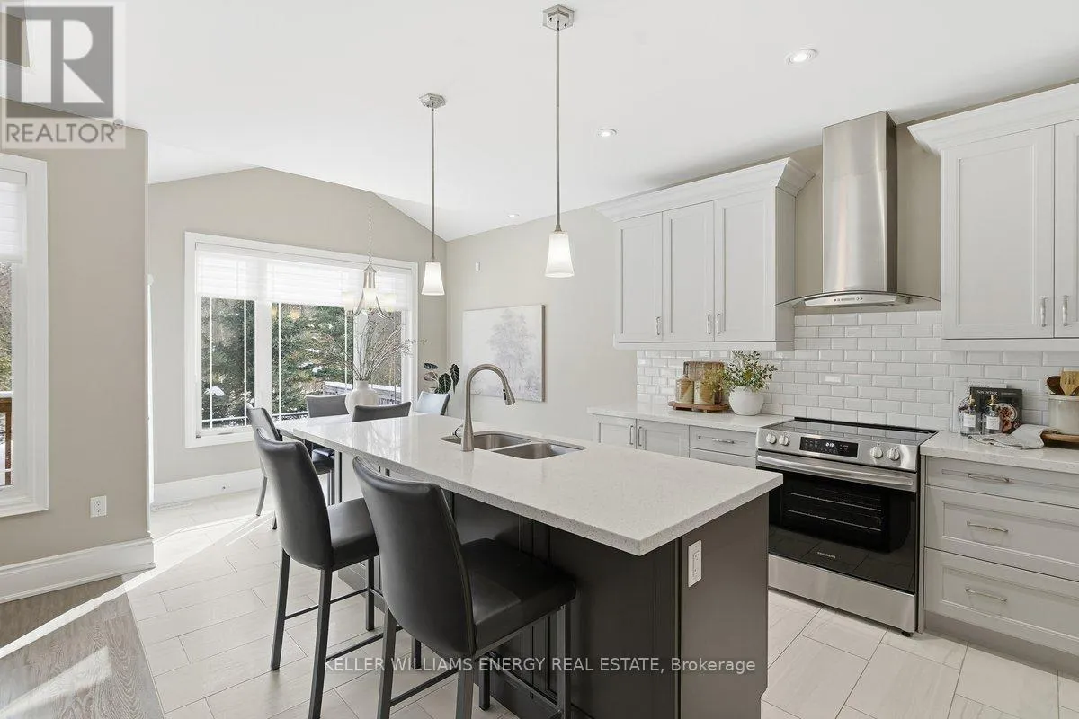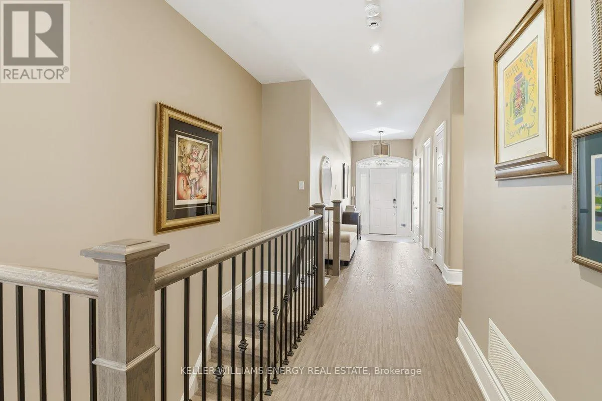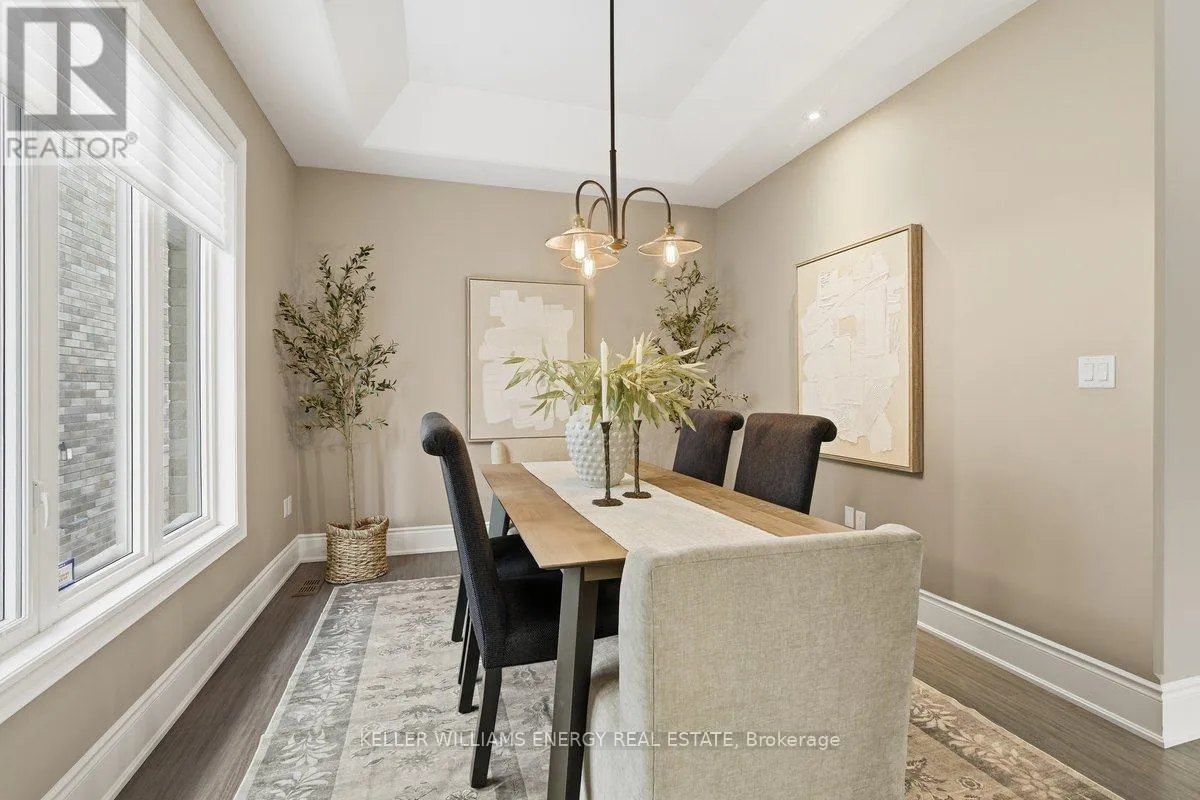George Reynolds & Hancock Rd Holland Homes Custom luxury bungalow backing onto environmentally protected land. Wrapped in tumbled stone and brick with a dramatic high-pitched roofline, this rare offering delivers privacy, permanence, and peace. Over 90 builder upgrades in this Charnwood 50 model elevate every detail. You must see the pictures! Open-concept main level is finished in engineered hardwood, oversized baseboards, anchored by a great room with 9 foot coffered "waffle" ceilings, and a chef's kitchen with a statement island overlooking the fireplace. A sun-filled breakfast area walks out to a covered deck and fenced yard... no rear neighbours, no future development, just birds, trees, and sky. The primary retreat features a spa-inspired ensuite with heated floors, freestanding soaking tub and separate glass shower. A second bedroom enjoys its own private ensuite, ideal for guests or home office flexibility. Main-floor laundry allows true one-level living The finished lower level adds a half-bathroom and an oversized media lounge perfect for movie nights, games, or visiting family. The unfinished area offers storage and opportunity to add your own custom rooms Quietly positioned on the east end of George Reynolds Drive, this low-traffic setting offers a country feel while being surrounded by green space. This is downsizing and upgrading at the same time! (id:27476)